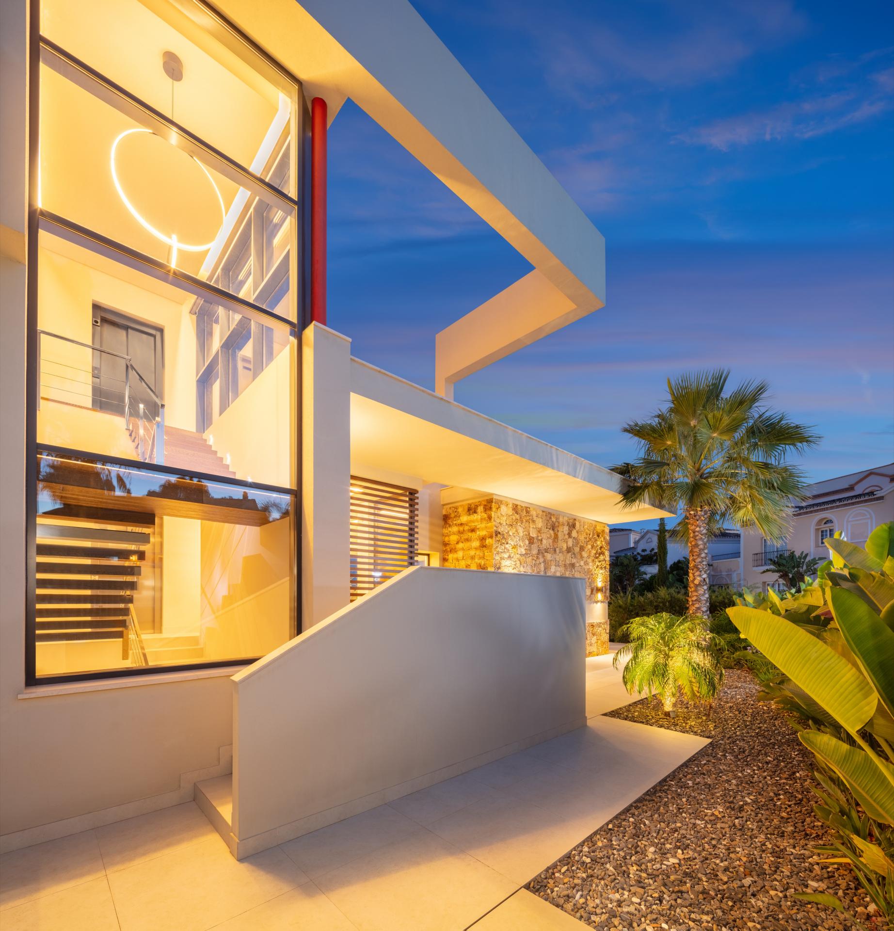 Outside, the villa’s landscaped gardens, terraces, and infinity-style pool are strategically designed to frame the breath-taking Mediterranean backdrop. The automatic irrigation system and sleek contemporary landscaping highlight the villa’s natural beauty, ensuring low maintenance and year-round greenery.
