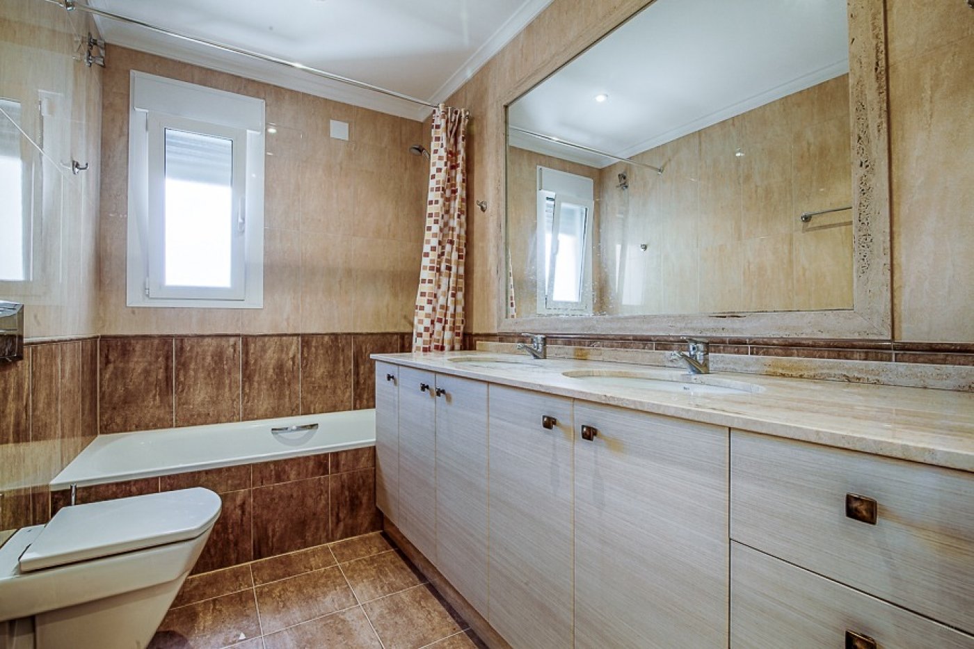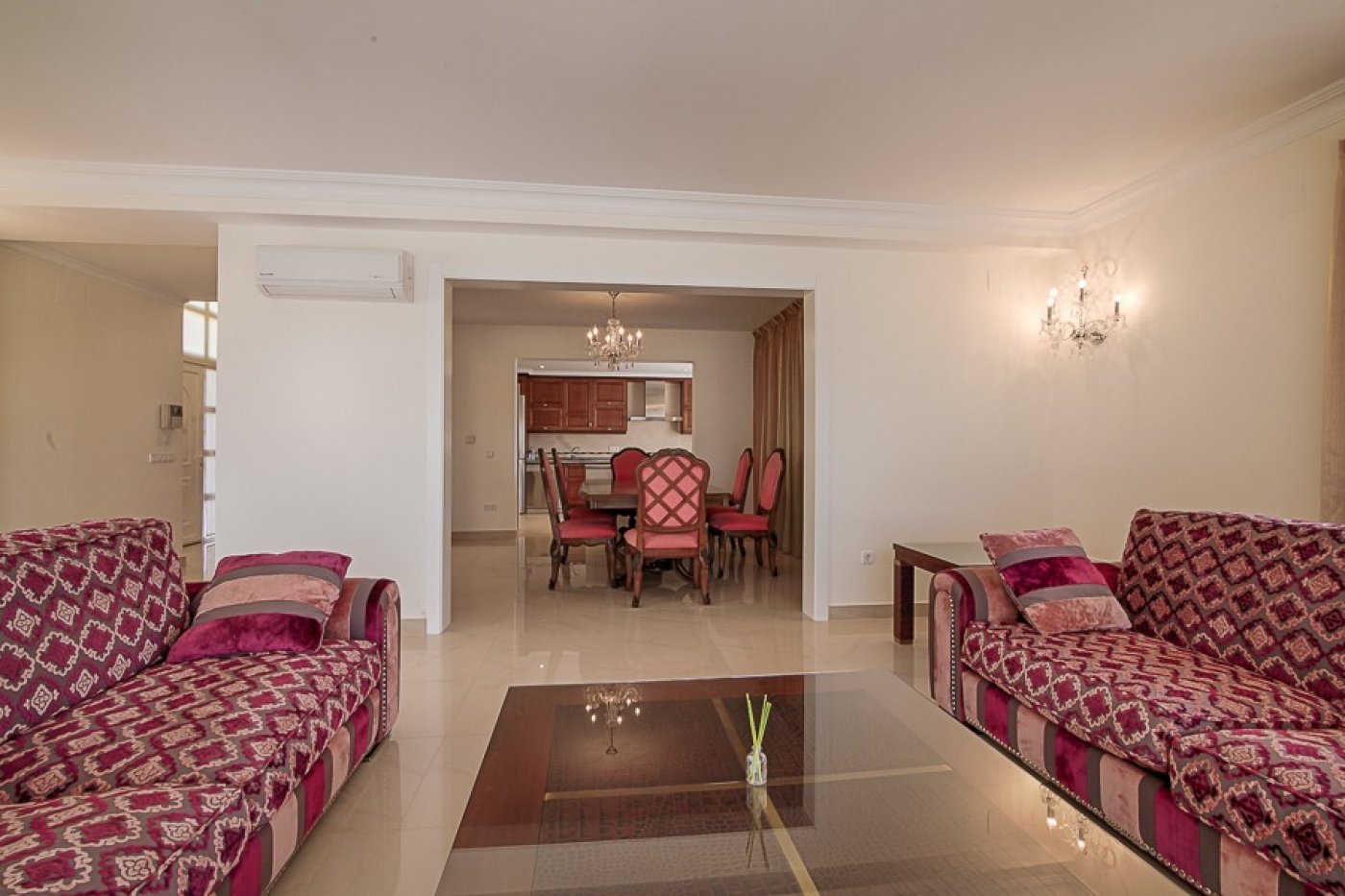 The lower level has a very spacious entrance area with high ceilings, an open plan kitchen with dining area and a bright living room, storage room, two bedrooms, Two bathrooms one en-suite and a large, covered terrace. In the low maintenance Mediterranean garden there is a summer kitchen with barbecue area with an chill-out dining area. Many benefits include additional storage areas and air conditioning.