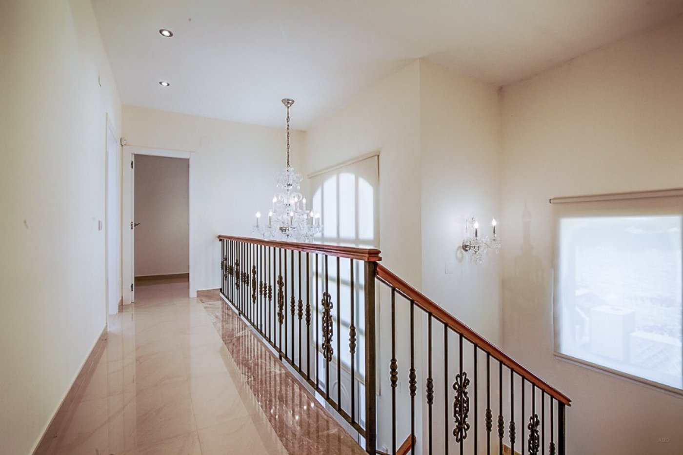 On the upper level of the house there are two bedrooms both with a bathroom en-suite, an office and with a private roof terrace. In the large underbuild there are several rooms including a large bedroom with bathroom en-suite, storage, an office and a lot of spaces to design according to your own taste and to realize your personal idea. There are also parking spaces with an electrical garage door.