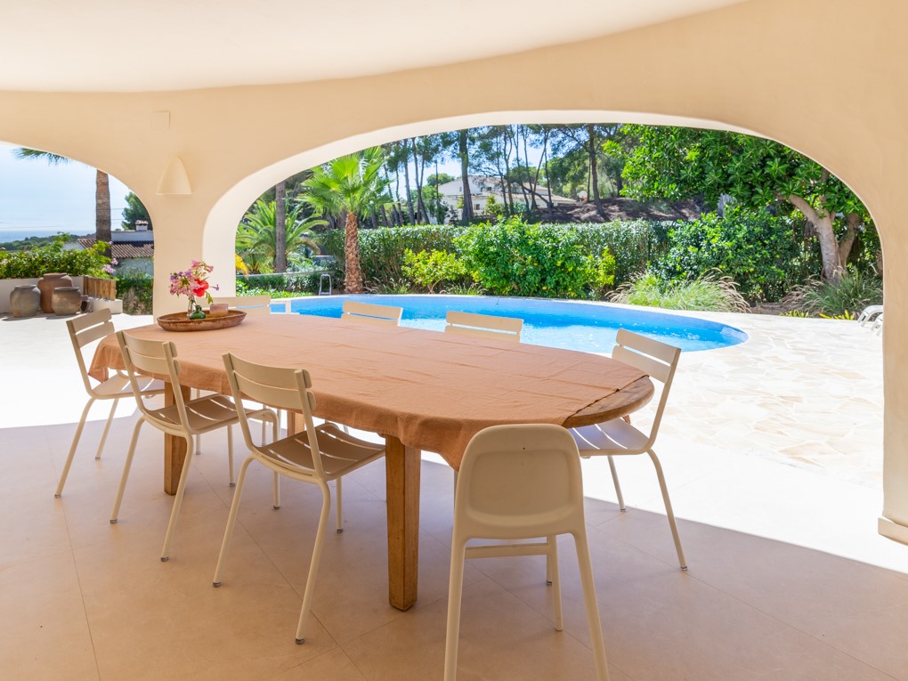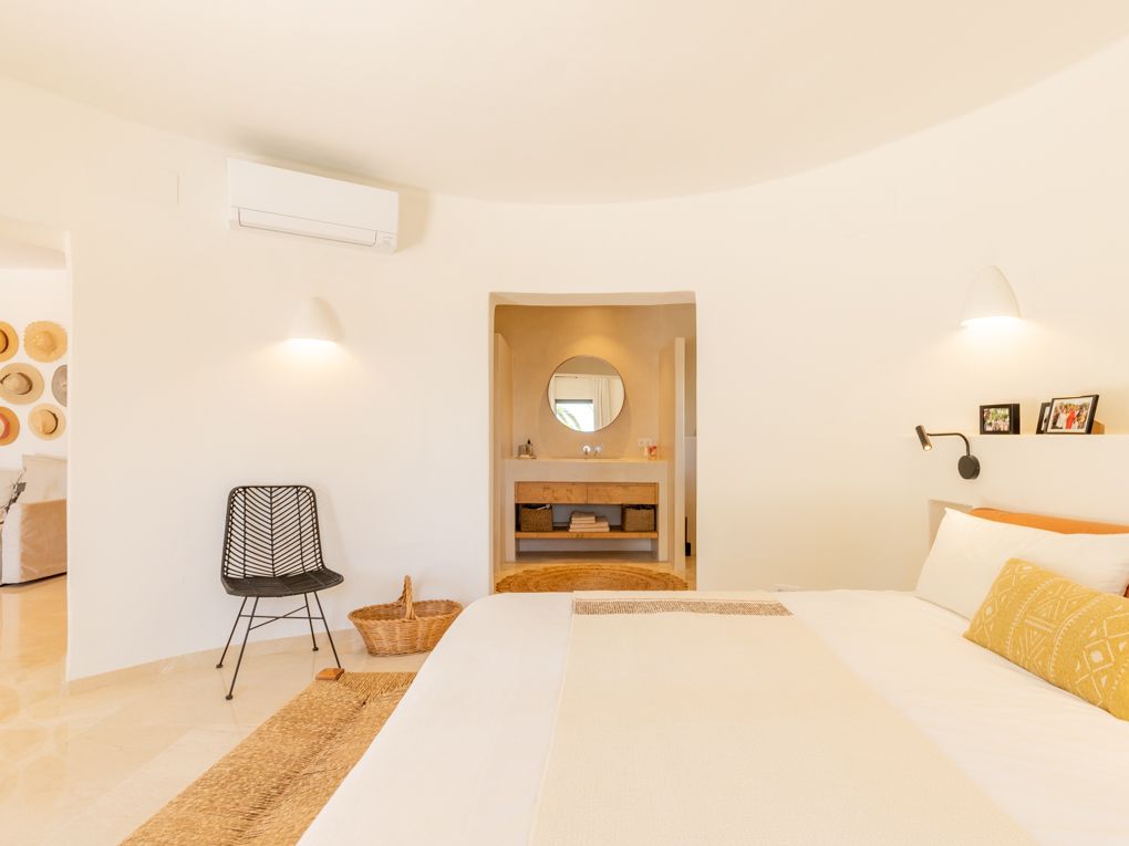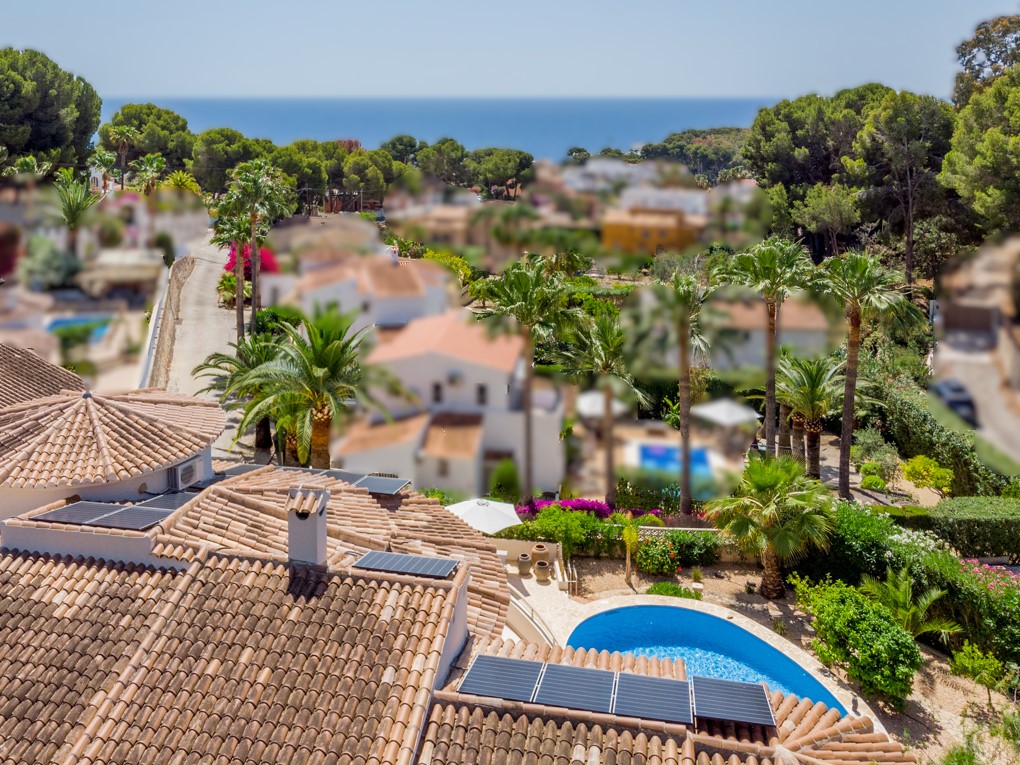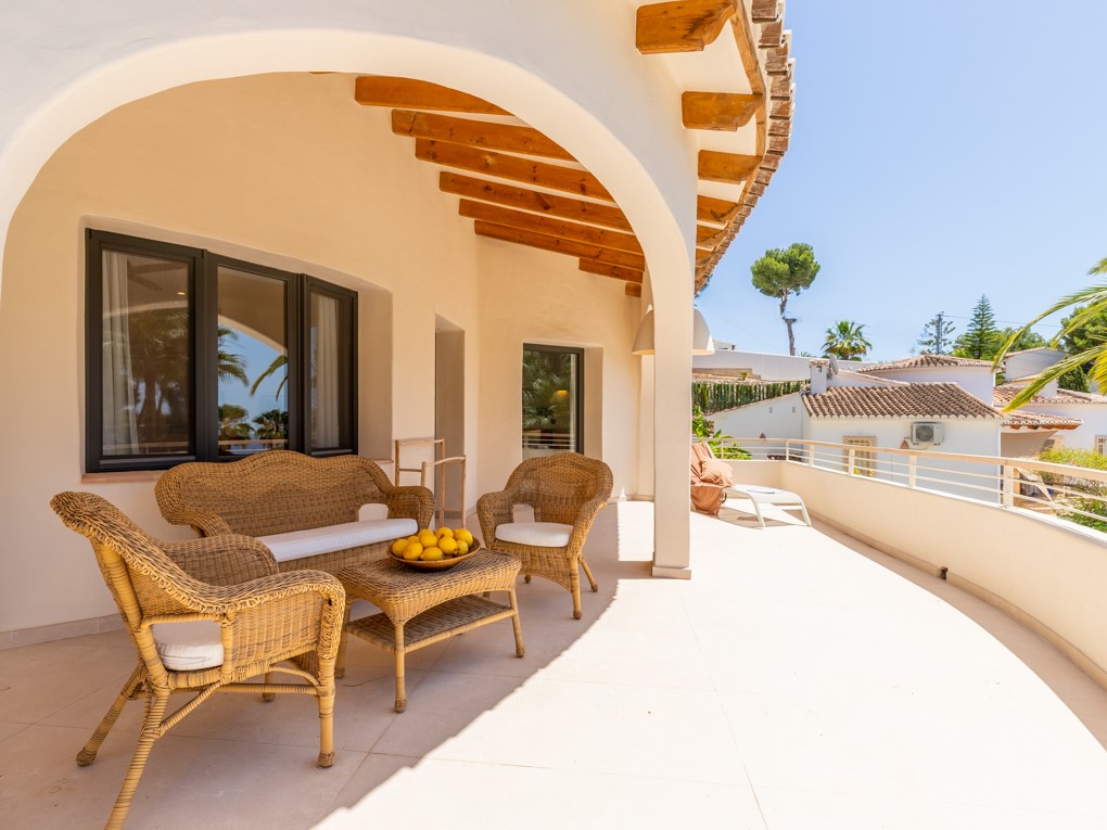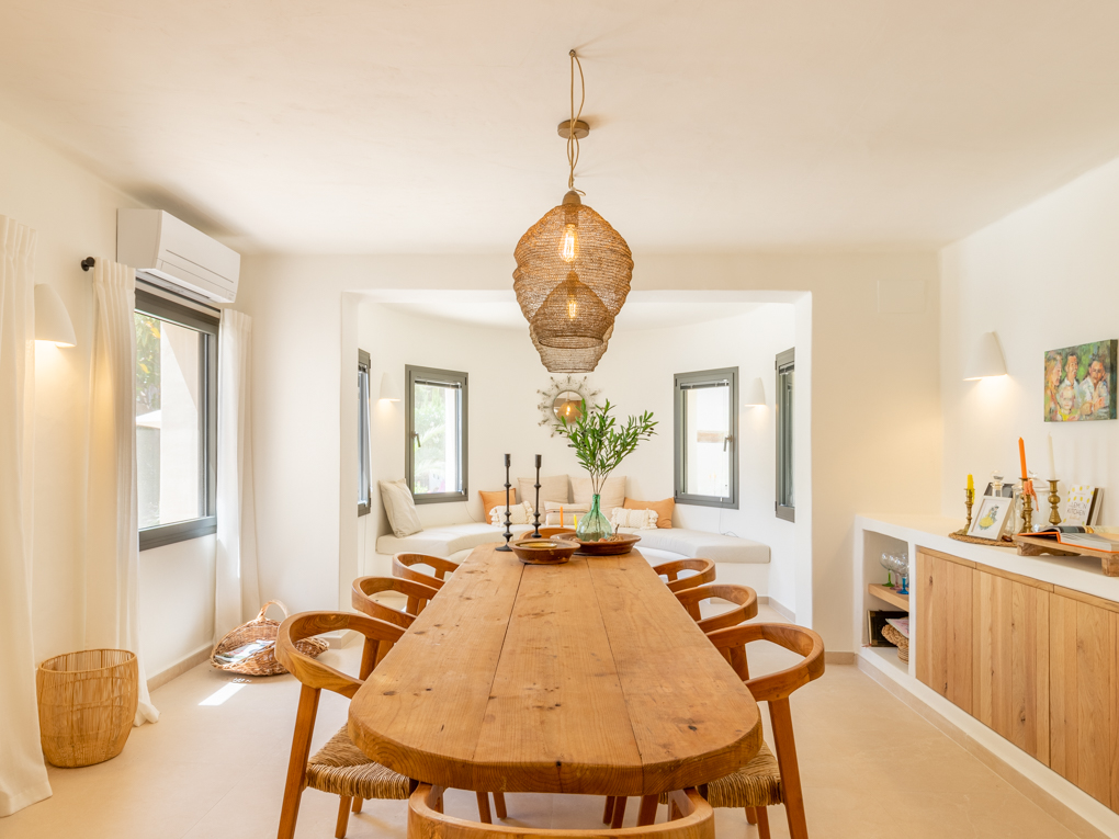PROPERTY AT A GLANCE This stunning Mediterranean villa exudes timeless elegance with a modern Ibizan influence, perfectly blending traditional charm and contemporary comforts. Set on a flat, expansive plot of 1180m² with a build size of 463m², this beautifully renovated property offers a lifestyle of luxury and convenience in the picturesque town of Moraira, just 600 meters from a beautiful bay.