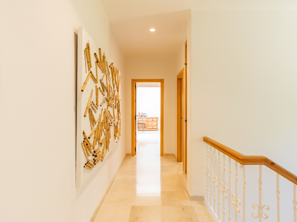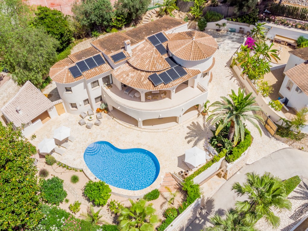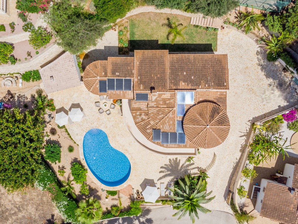 The property has remote-gated access, a separate garage, and ample open parking for several vehicles. Energy-efficient features like solar panels, air conditioning, and central heating enhance the property’s appeal. This villa is move-in ready, priced at €1,990,000, and promises luxurious living in an idyllic location.