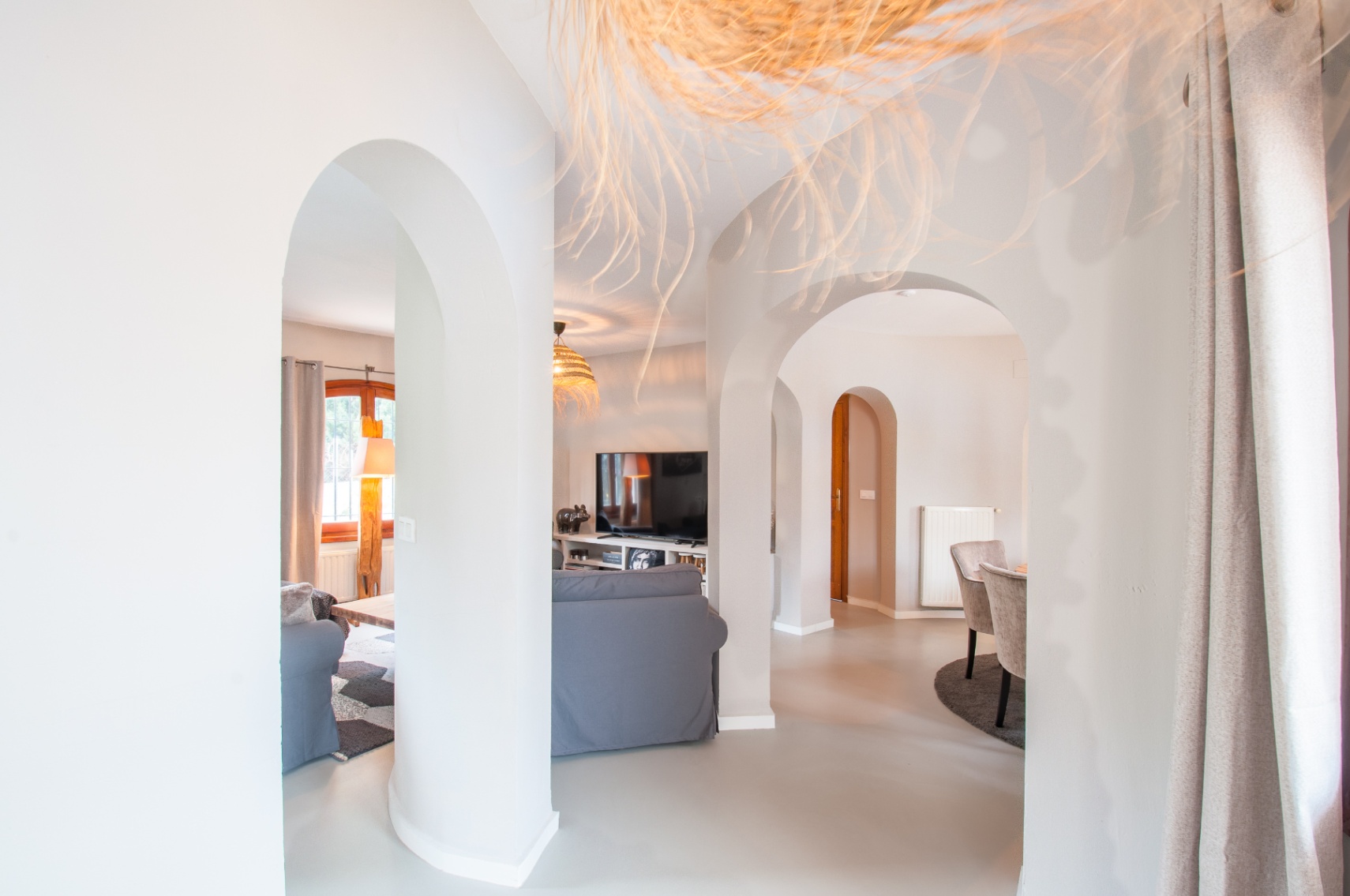Open-Plan Layout: The villa features spacious, flowing interiors connected by elegantly arched doorways, enhancing the feeling of openness and fluidity throughout the home.