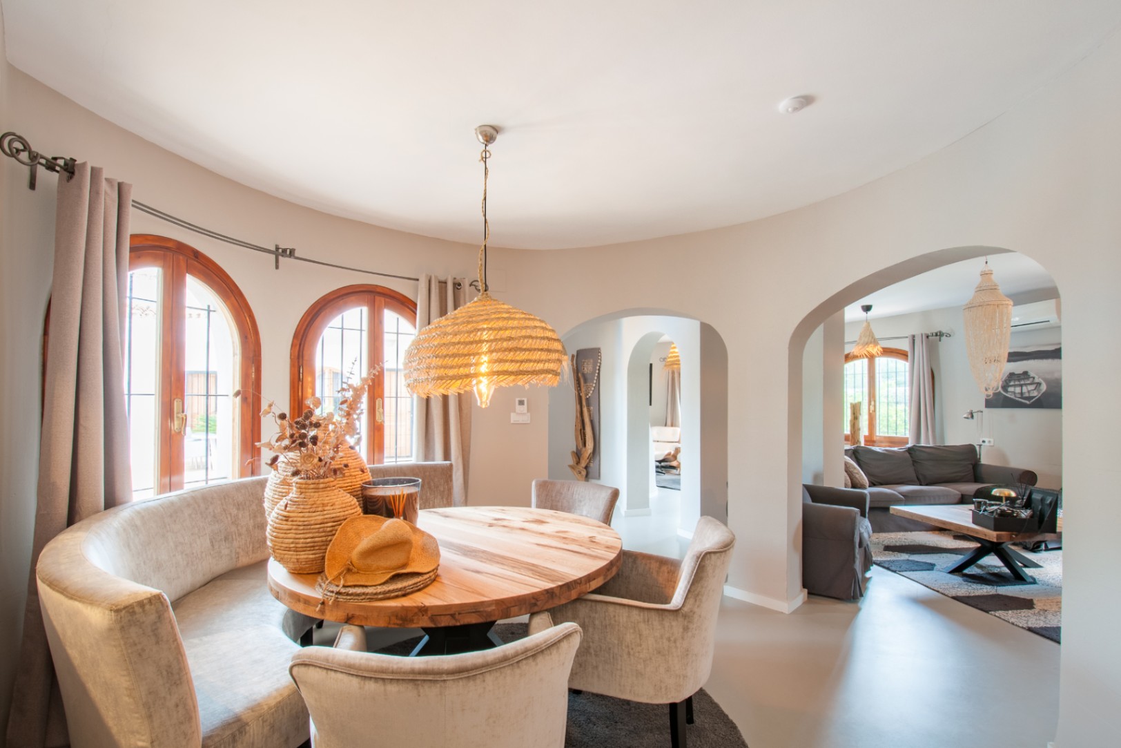 Located in a prestigious and tranquil residential neighbourhood known for its luxurious villas with sea views and proximity to key amenities. It features the Ifach Golf Club within the community, is just 2 km from Moraira's beautiful beaches, and 3 km from the town centre with its shops, restaurants, and services. The area attracts a cosmopolitan mix of residents, including many Europeans, making it a sought-after location for both holiday homes and permanent living.