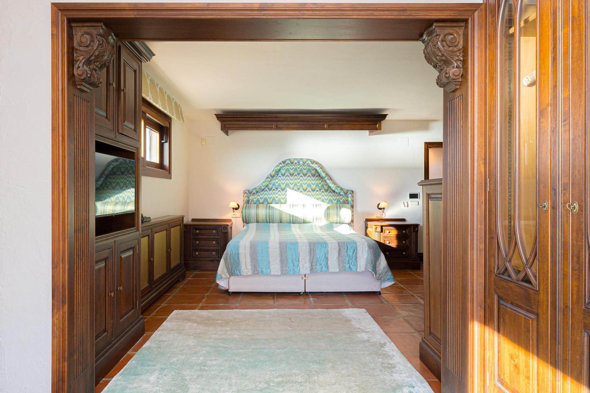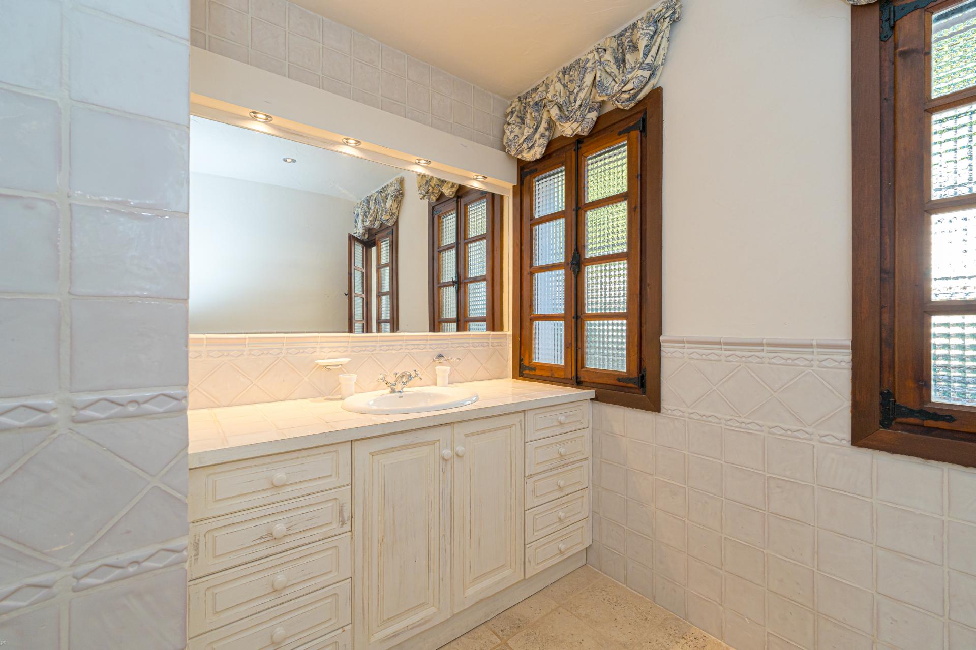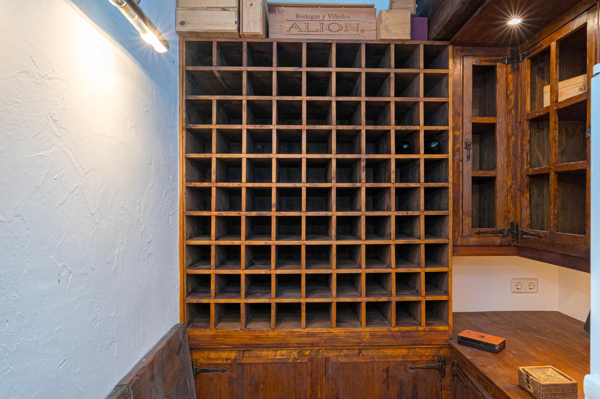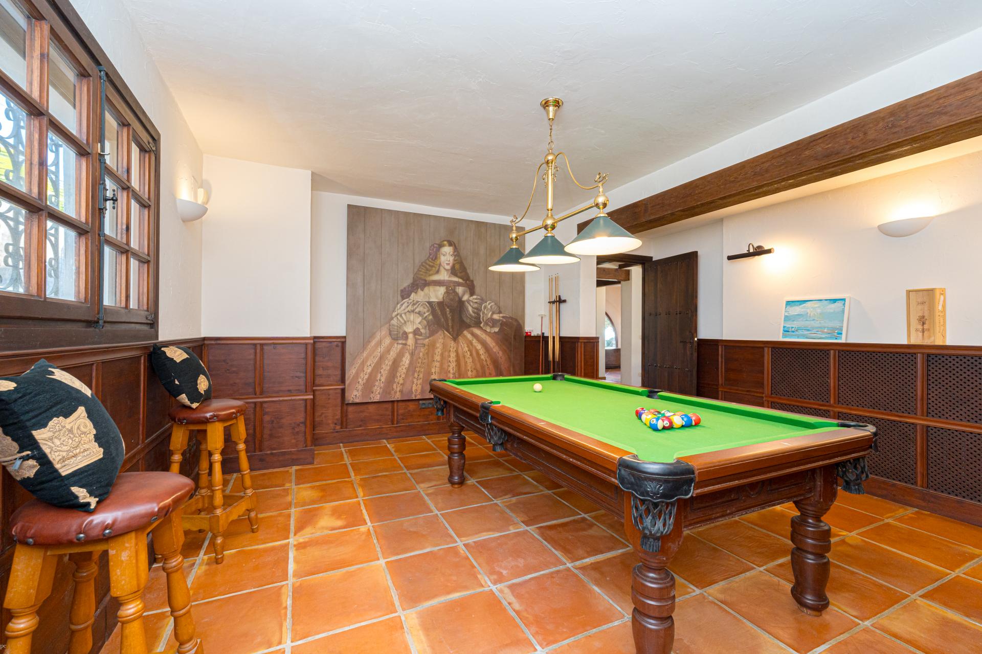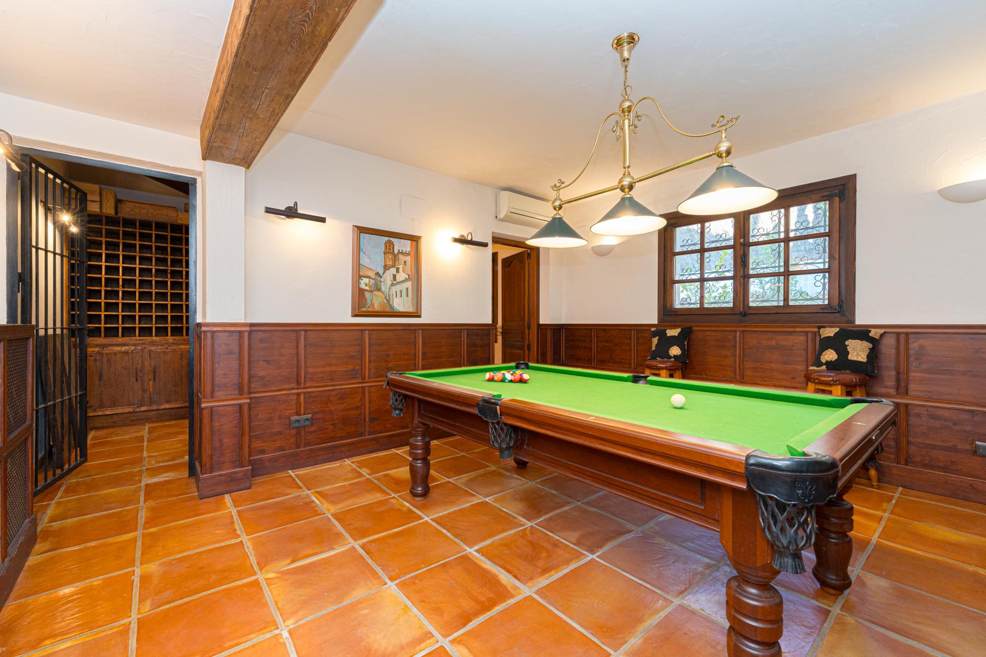 For leisure, the villa offers a dedicated billiard room where friendly competition and laughter abound, complemented by a walk-in wine cellar where you can select the perfect bottle to enjoy as the evening unfolds. A home office provides a quiet retreat, adaptable as an additional fifth bedroom if required. The main level features three well-appointed bedrooms—two doubles and one twin—accompanied by three generous bathrooms, two with walk-in showers and one with a bathtub. A multi-purpose room, currently utilised for storage, offers potential as a home gym, cinema room, or wellness space, catering to the needs of its future owners.