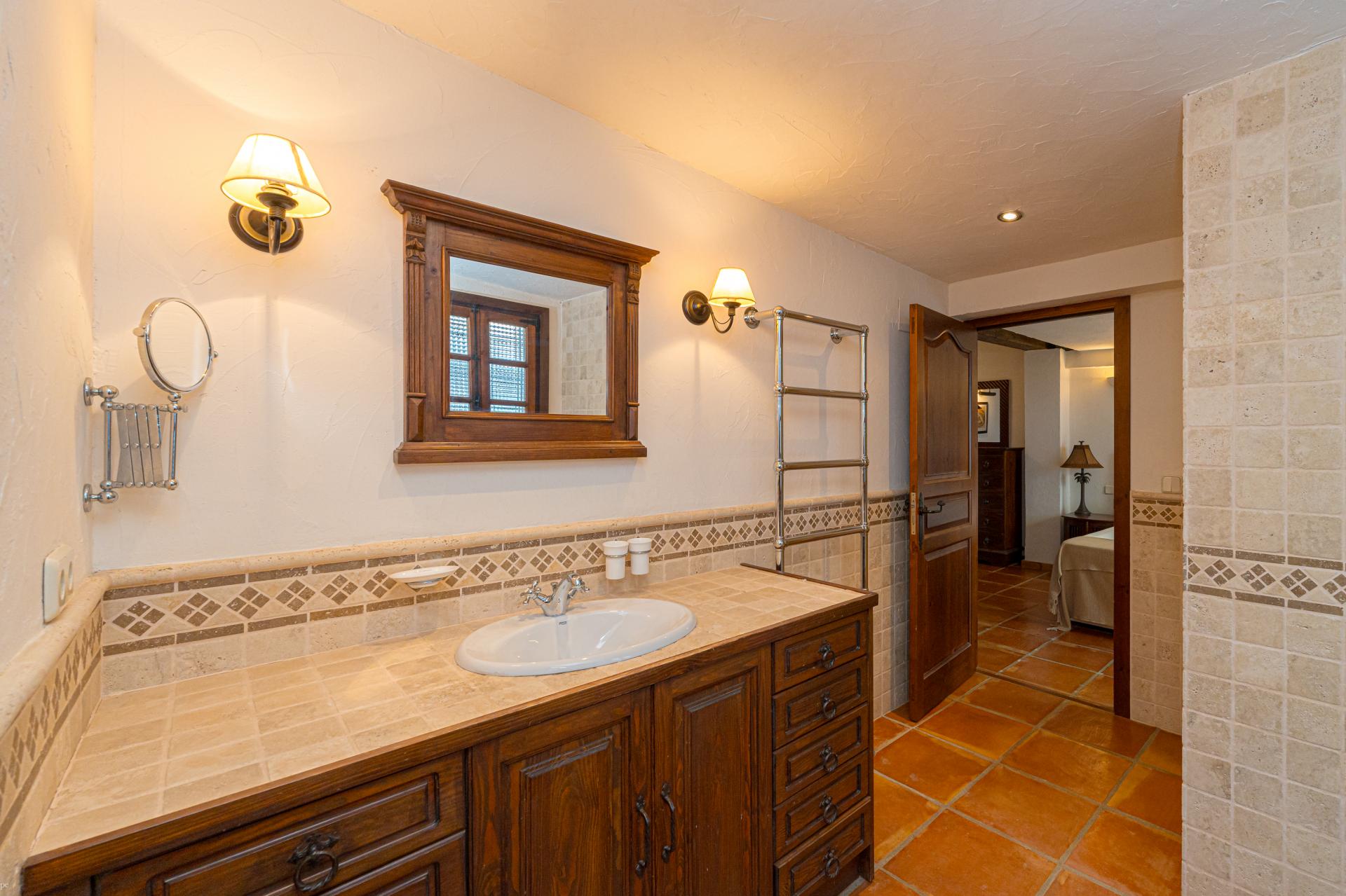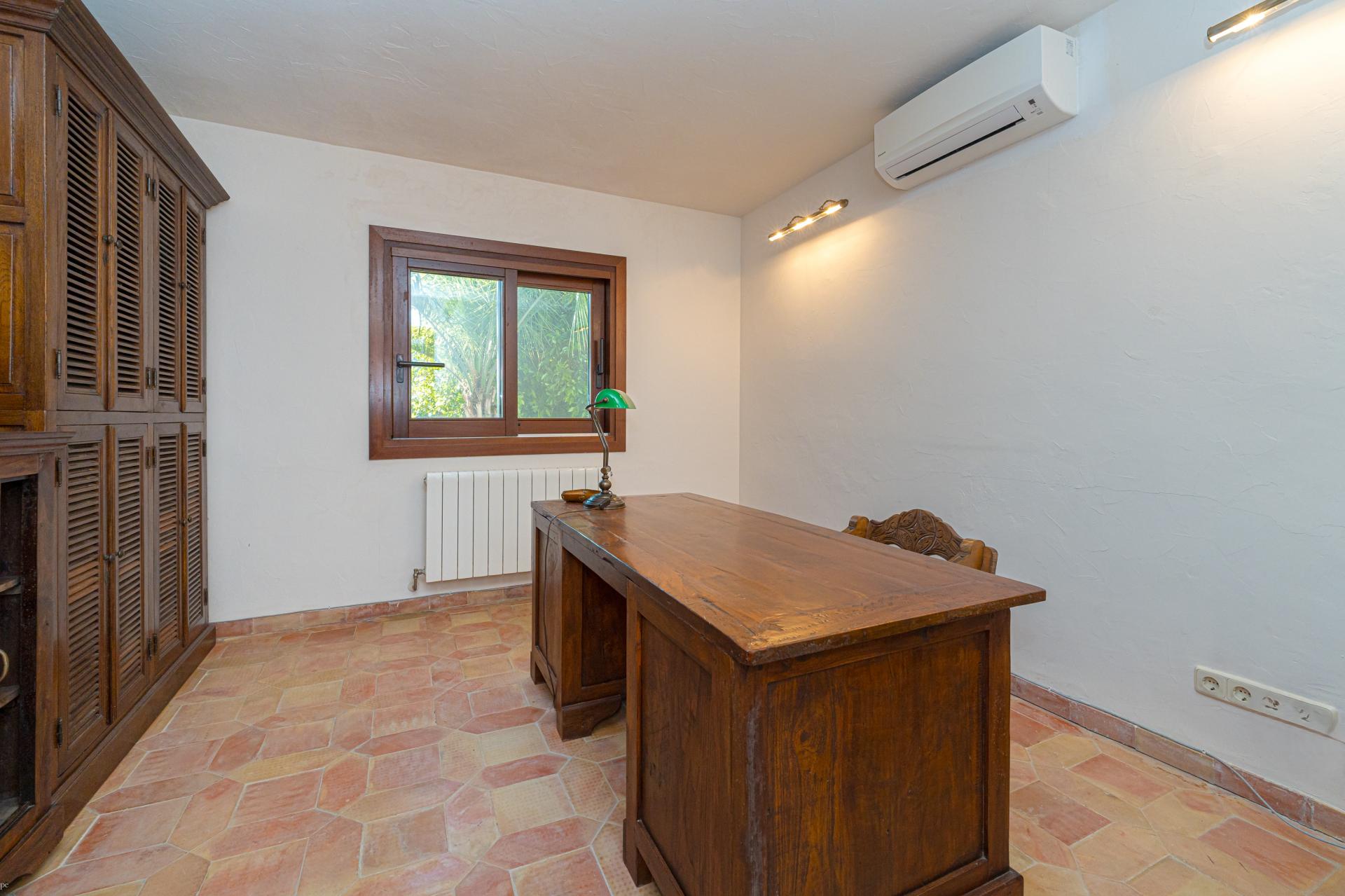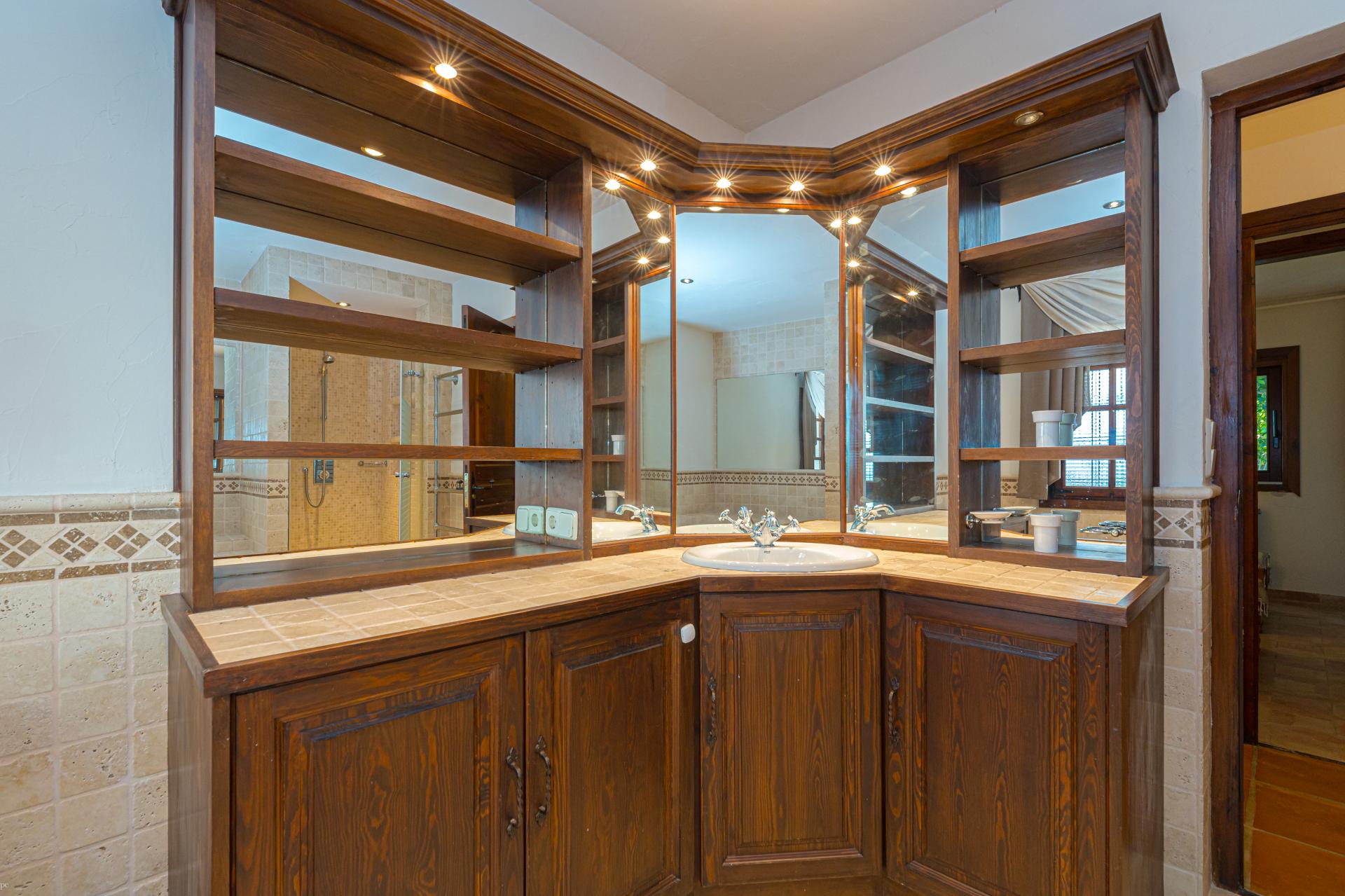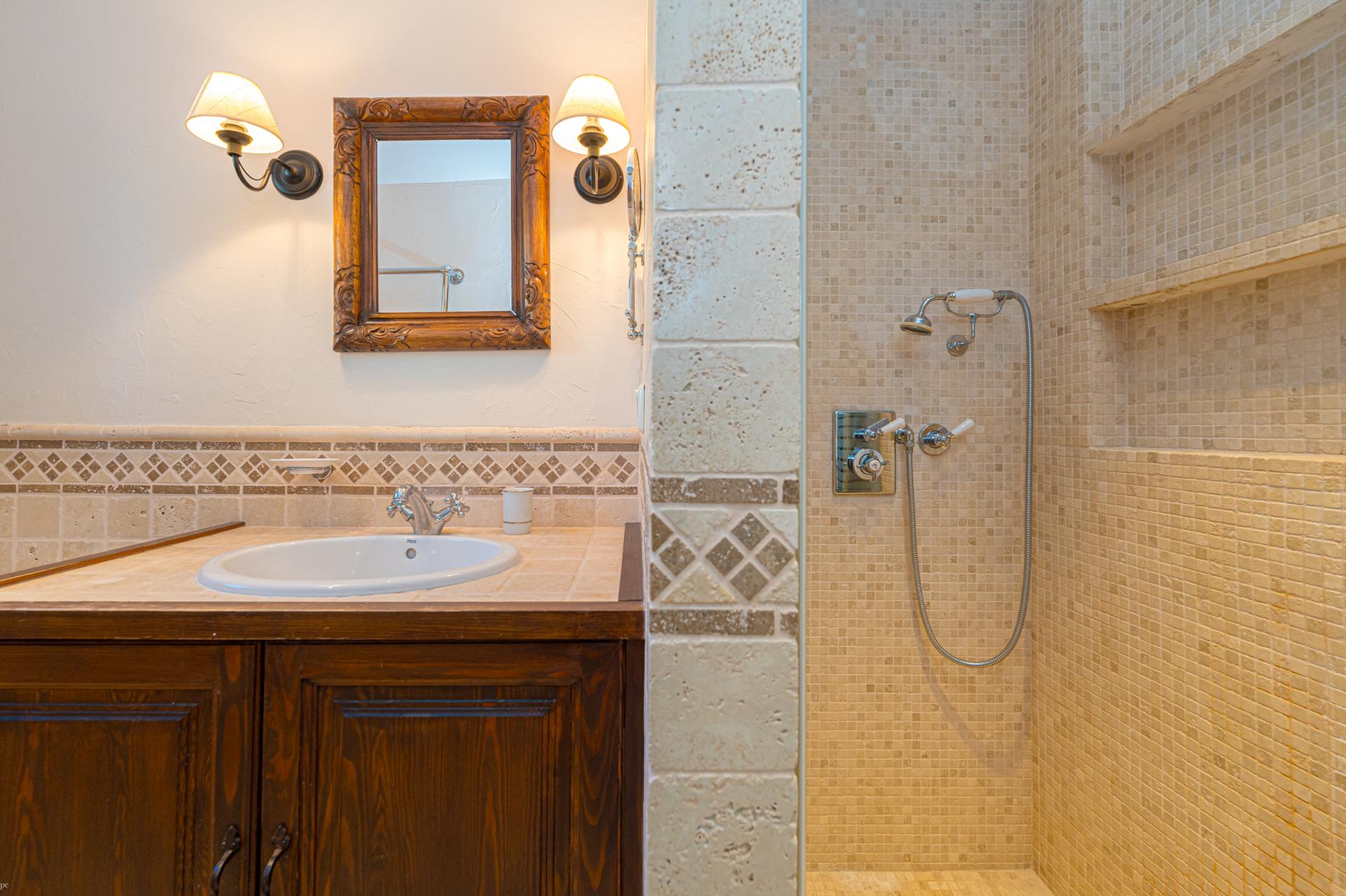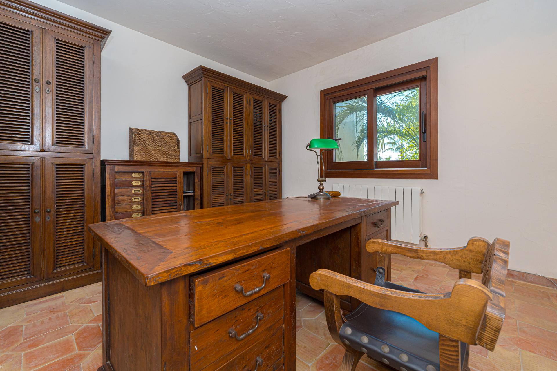 For leisure, the villa offers a dedicated billiard room where friendly competition and laughter abound, complemented by a walk-in wine cellar where you can select the perfect bottle to enjoy as the evening unfolds. A home office provides a quiet retreat, adaptable as an additional fifth bedroom if required. The main level features three well-appointed bedrooms—two doubles and one twin—accompanied by three generous bathrooms, two with walk-in showers and one with a bathtub. A multi-purpose room, currently utilised for storage, offers potential as a home gym, cinema room, or wellness space, catering to the needs of its future owners.