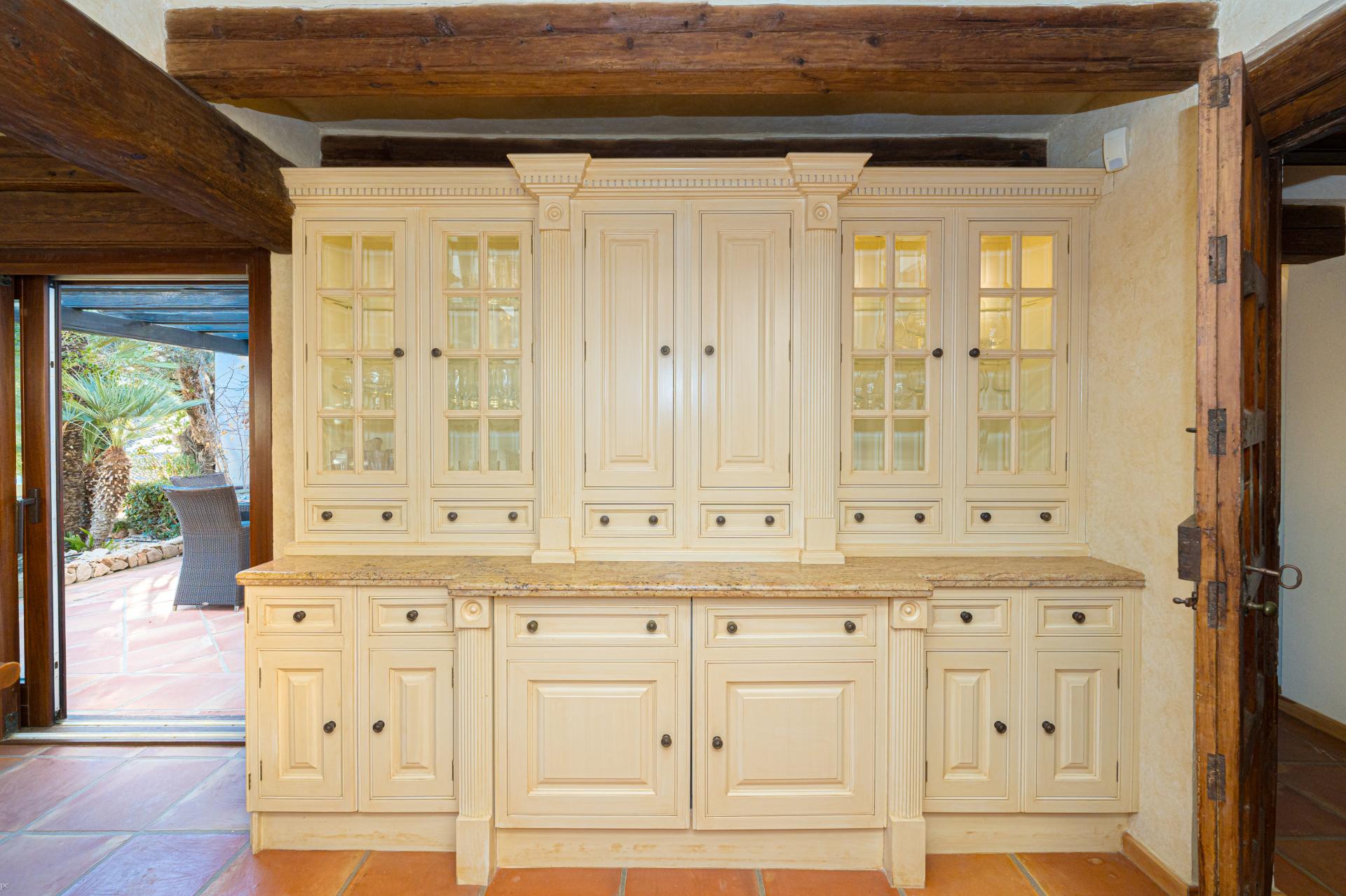 PROPERTY DETAILS Architectural Elegance & Design The villa exudes traditional Mediterranean charm with its pristine white façade complemented by terracotta roof tiles, flagged terracotta tiled flooring, wooden doors, handcrafted wrought iron accents, and exquisite natural Tosca stone features. Spanning an impressive 470m² of living space on a generous 1,620m² plot, this residence is distributed across two levels, seamlessly connected by an elegant internal staircase adorned with hand-forged wrought iron railings. Large windows and glass expanses flood the interiors with natural light, enhancing the home’s warm ambiance and refined aesthetics.