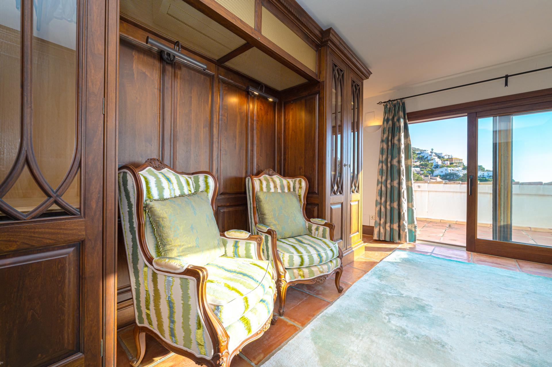 Ascending the internal staircase, the upper level is dedicated to the master suite—a luxurious sanctuary designed for ultimate relaxation. This expansive retreat enjoys access to a private terrace, where you can wake to breath-taking sea views, sip an evening cocktail in complete privacy, and embrace the tranquillity of this idyllic setting. With two ensuite bathrooms, including one with a bathtub this suite epitomises refined indulgence.