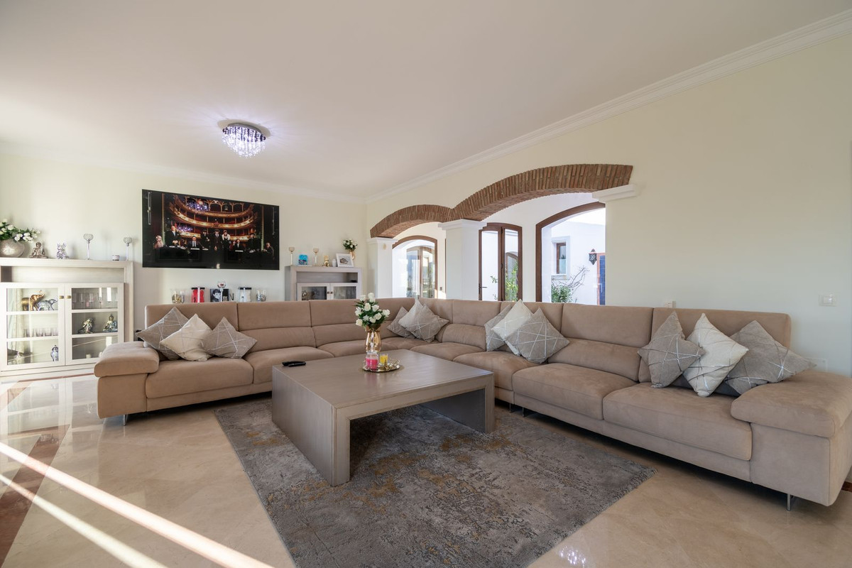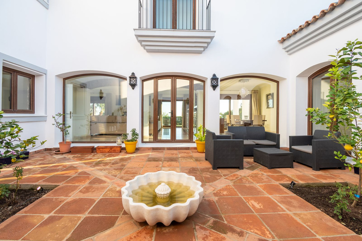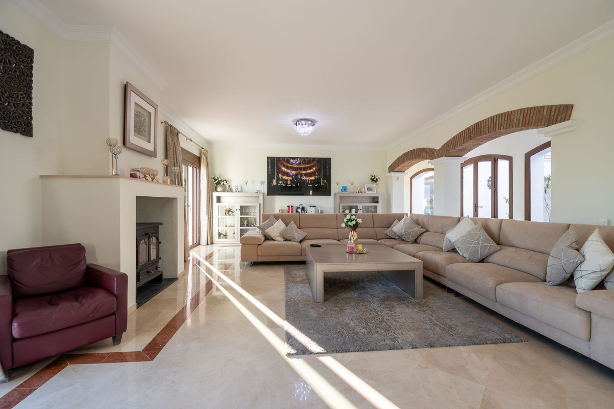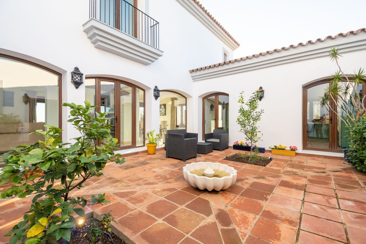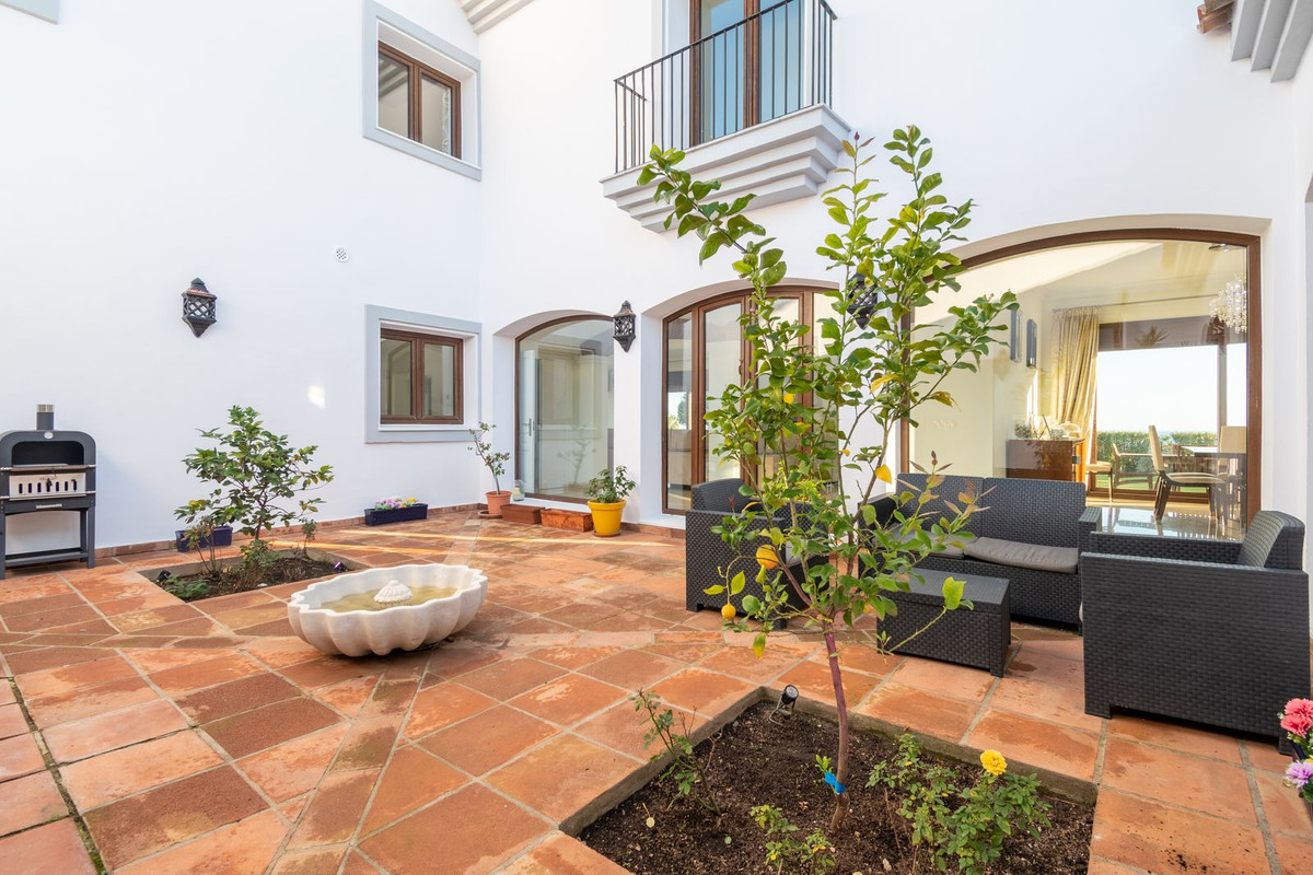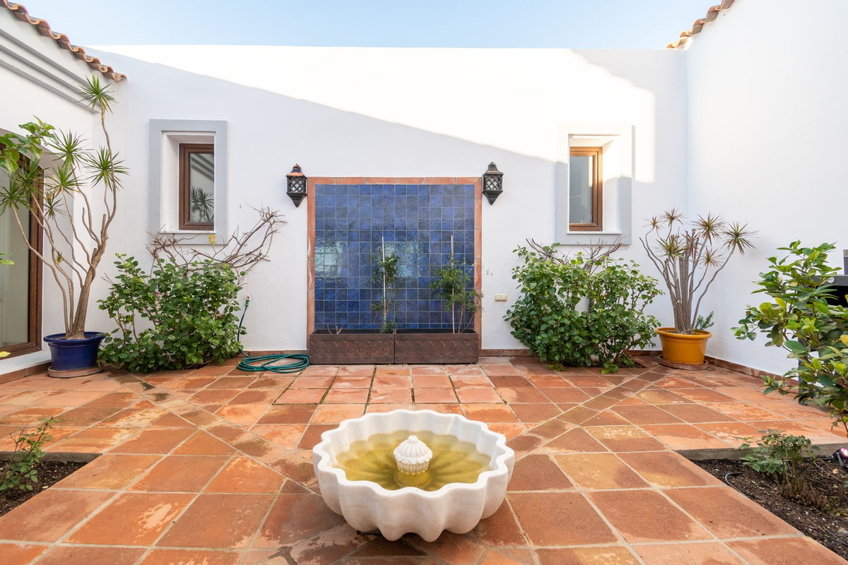 Nestled between the prestigious Sotogrande and the picturesque La Duquesa Marinas, this truly stunning five-bedroom detached villa offers a luxurious retreat within a mere 10 minutes' drive in between the two Marinas. The villa has a south orientation, providing all day sunshine and truly captivating views. The villa's exterior features a private swimming pool, beautiful tropical gardens, and an inviting interior courtyard, creating a serene and visually pleasing ambiance. Upon entering, the high-ceilinged entrance hall welcomes you into a meticulously designed interior. The expansive lounge and dining areas are thoughtfully separated, providing both spaciousness and comfort. The property has a brand-new kitchen, and immaculate bathrooms on both the ground floor and in the upstairs master bedroom. For added comfort, underfloor heating is installed on both levels, accompanied by a wood burner fire in the lounge - perfect for winter evenings! A spacious garage with room for two vehicles, coupled with a driveway accommodating an additional two vehicles, ensures ample parking space for guests. With world-class 5-star golf courses just a few-minutes drive away, this residence becomes a golfer's paradise, combining luxury living with proximity to leisure activities. A private terrace offers an ideal space for unwinding or entertaining guests, providing the perfect vantage point to appreciate the beauty of the property's private fruit garden. This home is meticulously designed for comfort and elegance, situated just a few steps of the most sought-after locations, Sotogrande. An absolute must view completely unique property - contact us now!