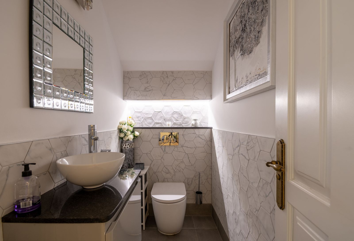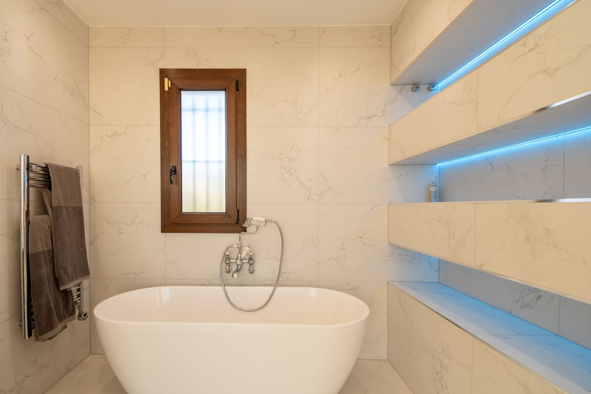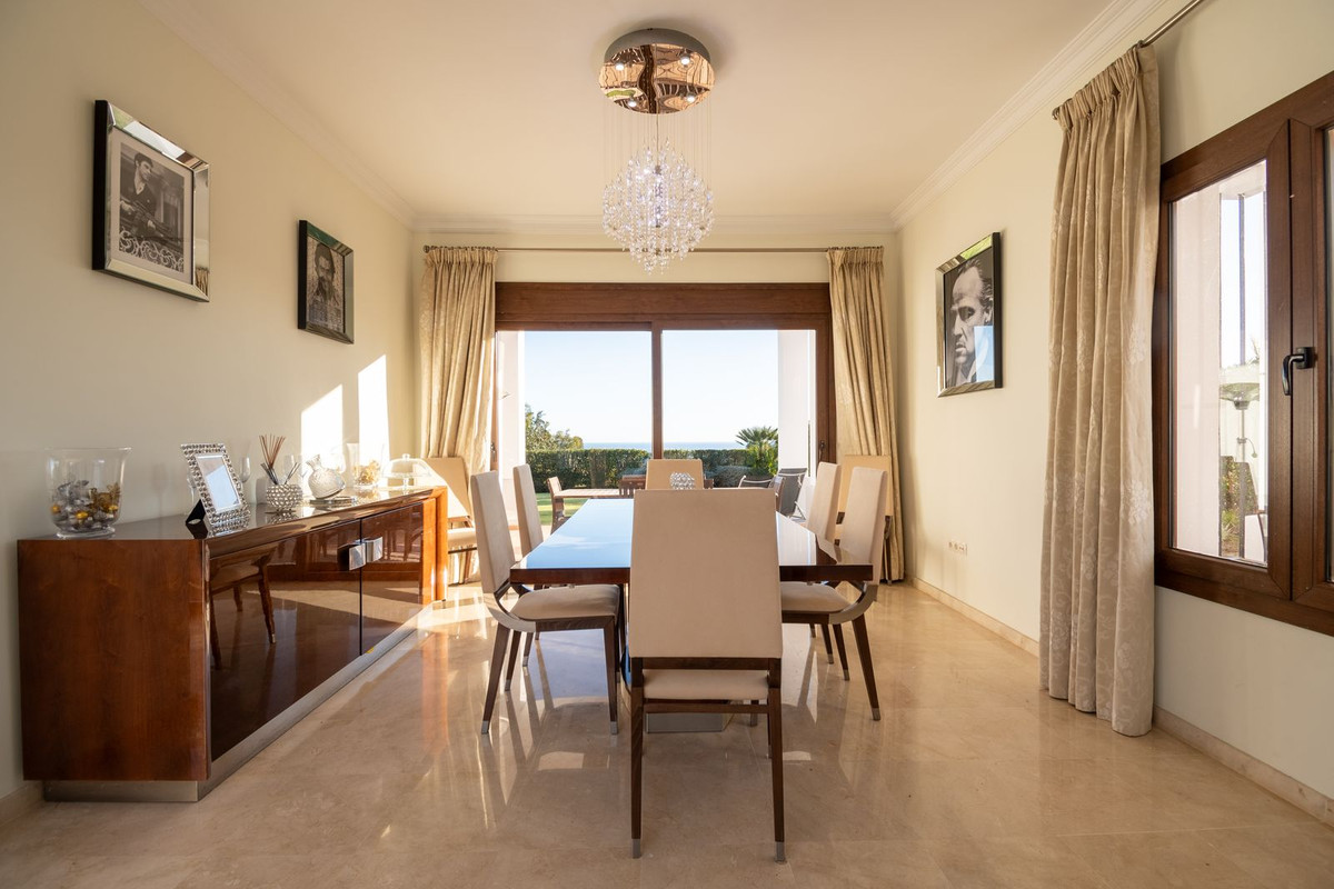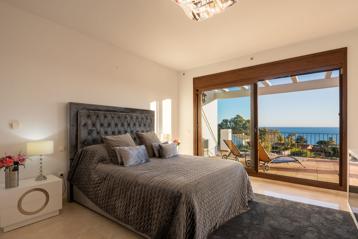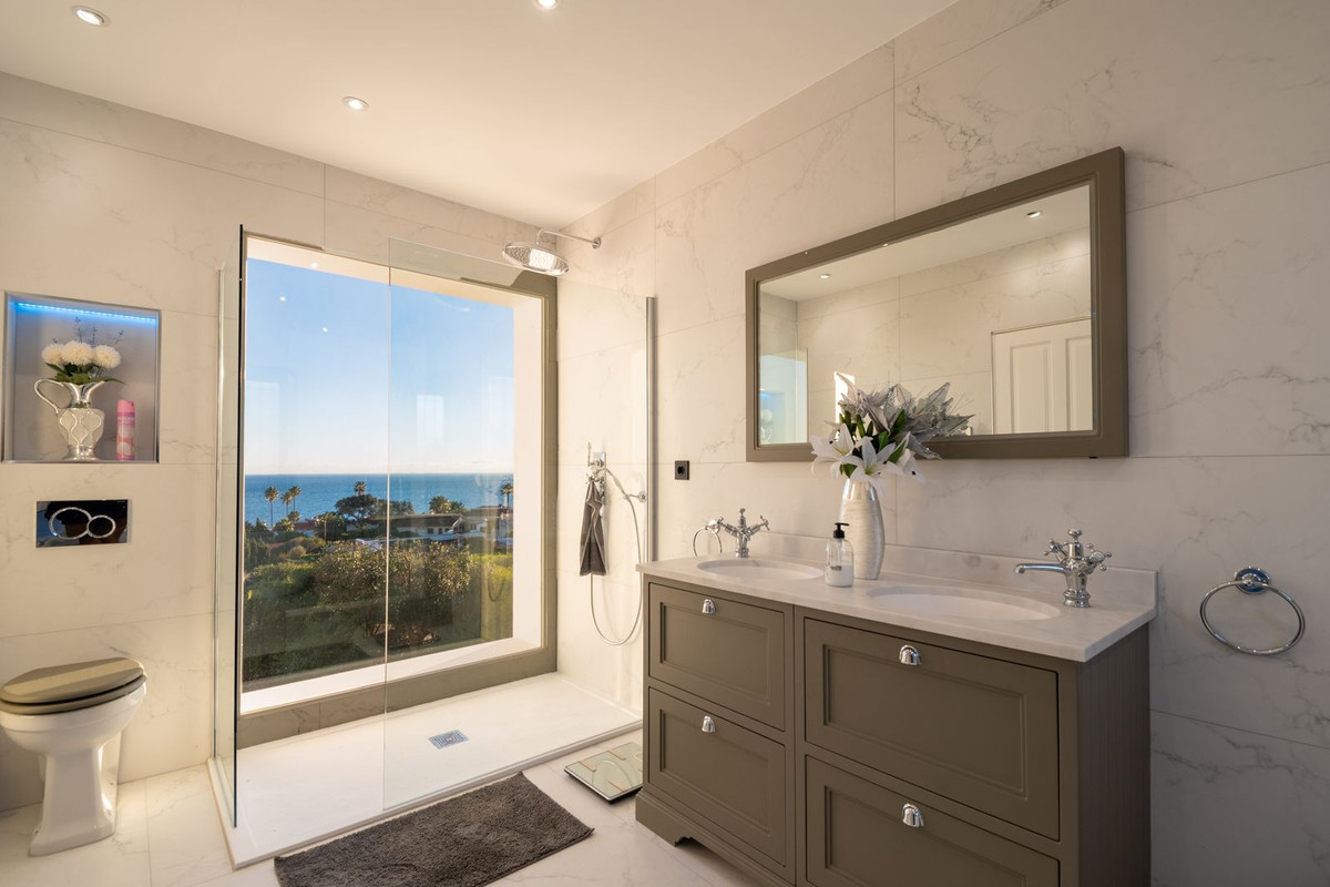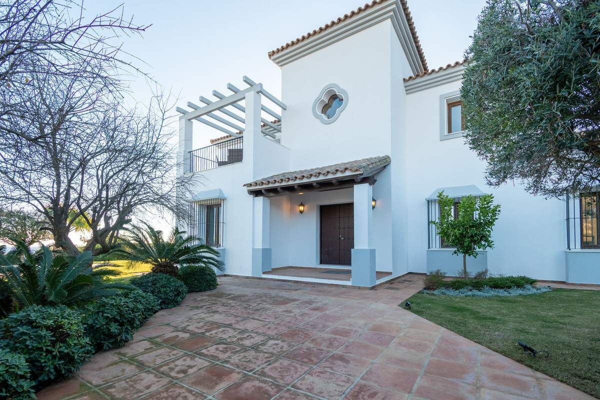 Nestled between the prestigious Sotogrande and the picturesque La Duquesa Marinas, this truly stunning five-bedroom detached villa offers a luxurious retreat within a mere 10 minutes' drive in between the two Marinas. The villa has a south orientation, providing all day sunshine and truly captivating views. The villa's exterior features a private swimming pool, beautiful tropical gardens, and an inviting interior courtyard, creating a serene and visually pleasing ambiance. Upon entering, the high-ceilinged entrance hall welcomes you into a meticulously designed interior. The expansive lounge and dining areas are thoughtfully separated, providing both spaciousness and comfort. The property has a brand-new kitchen, and immaculate bathrooms on both the ground floor and in the upstairs master bedroom. For added comfort, underfloor heating is installed on both levels, accompanied by a wood burner fire in the lounge - perfect for winter evenings! A spacious garage with room for two vehicles, coupled with a driveway accommodating an additional two vehicles, ensures ample parking space for guests. With world-class 5-star golf courses just a few-minutes drive away, this residence becomes a golfer's paradise, combining luxury living with proximity to leisure activities. A private terrace offers an ideal space for unwinding or entertaining guests, providing the perfect vantage point to appreciate the beauty of the property's private fruit garden. This home is meticulously designed for comfort and elegance, situated just a few steps of the most sought-after locations, Sotogrande. An absolute must view completely unique property - contact us now!