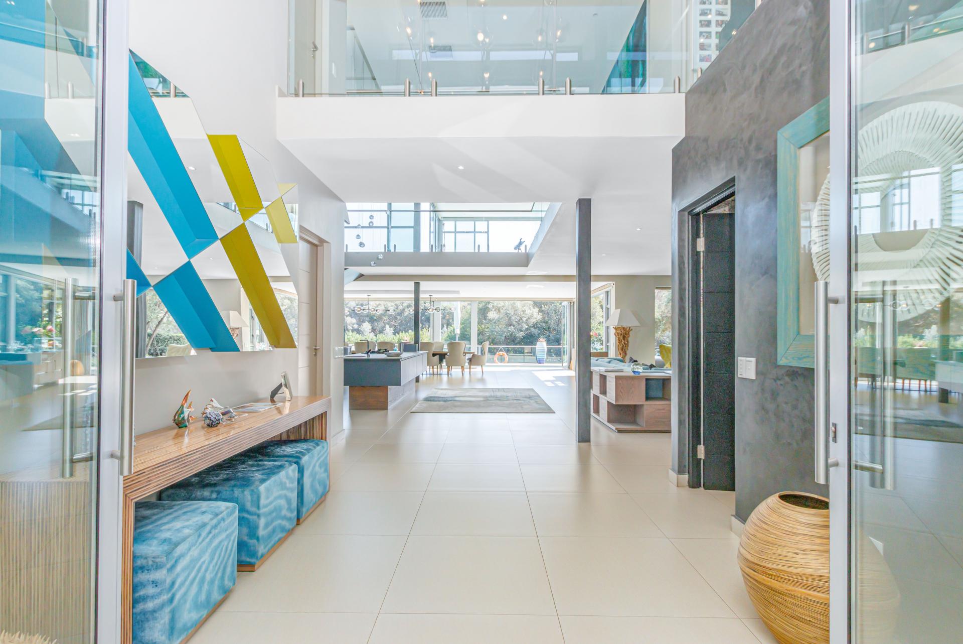 The bedrooms are all en-suite and spacious with air-conditioning throughout, central vacuum system, automated blinds, 30 000kVA generator, double garage and a huge boat garage. There is an upstairs lounge which is also perfectly positioned with gorgeous light and views. The home is completed with double staff quarters.