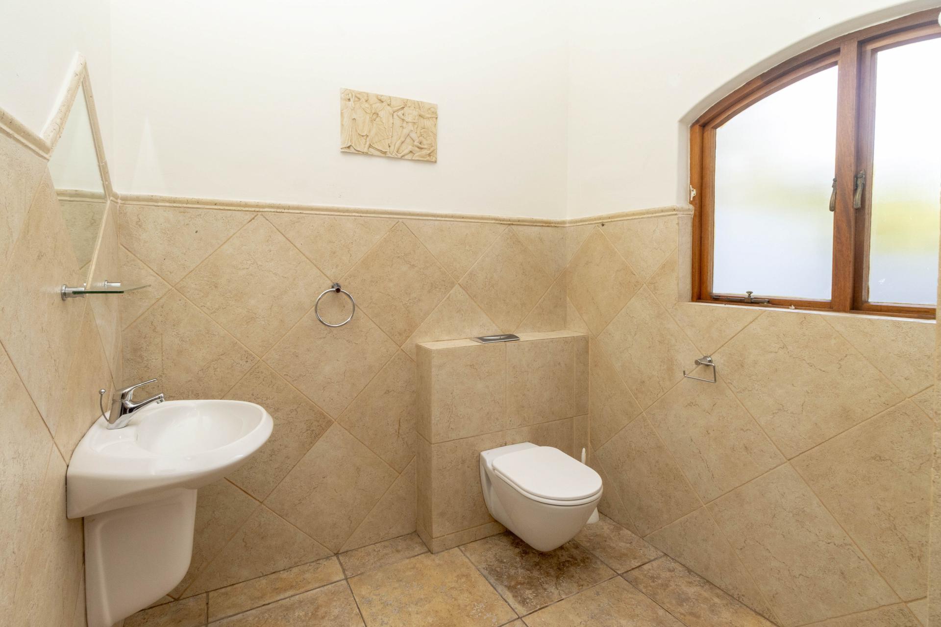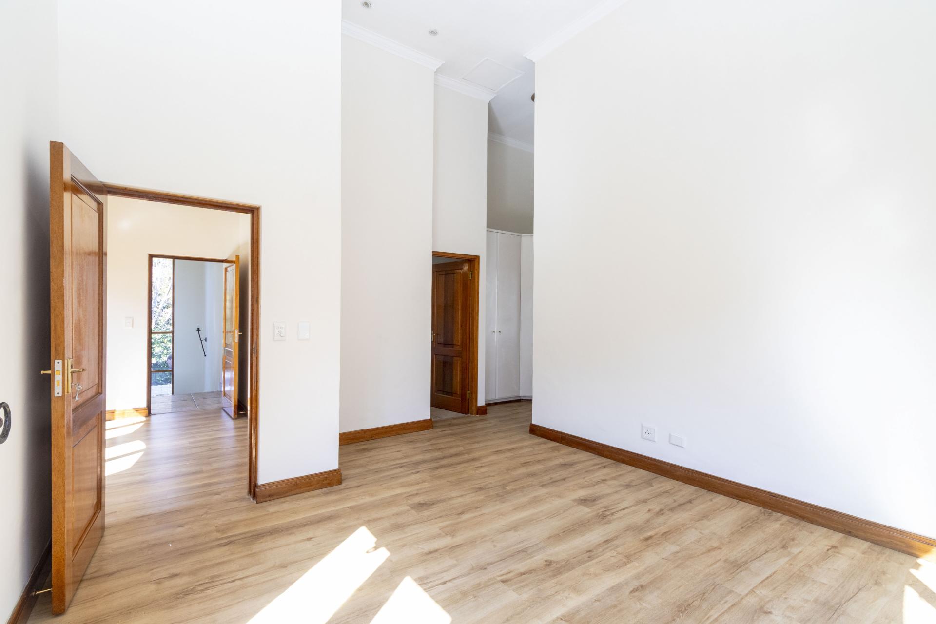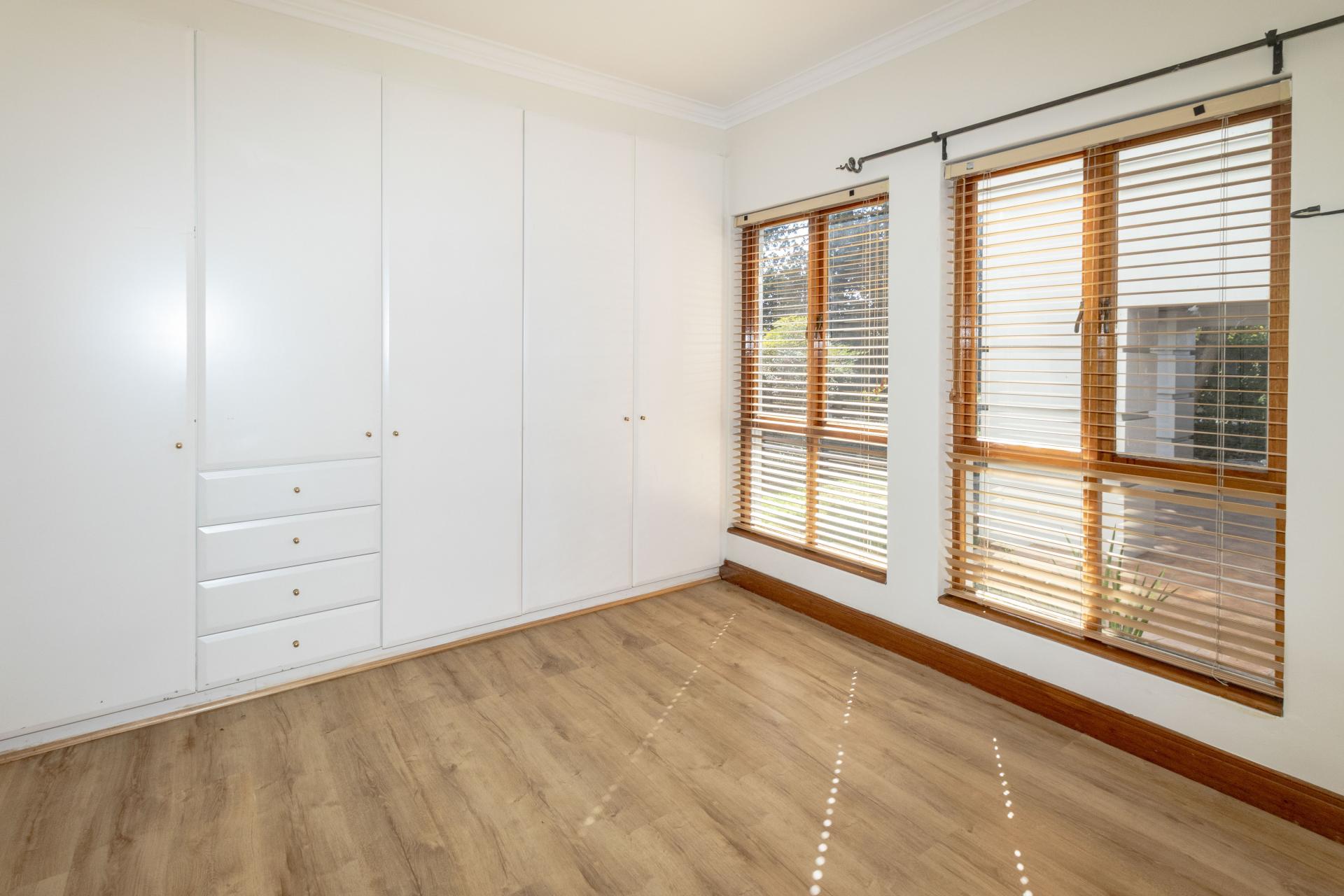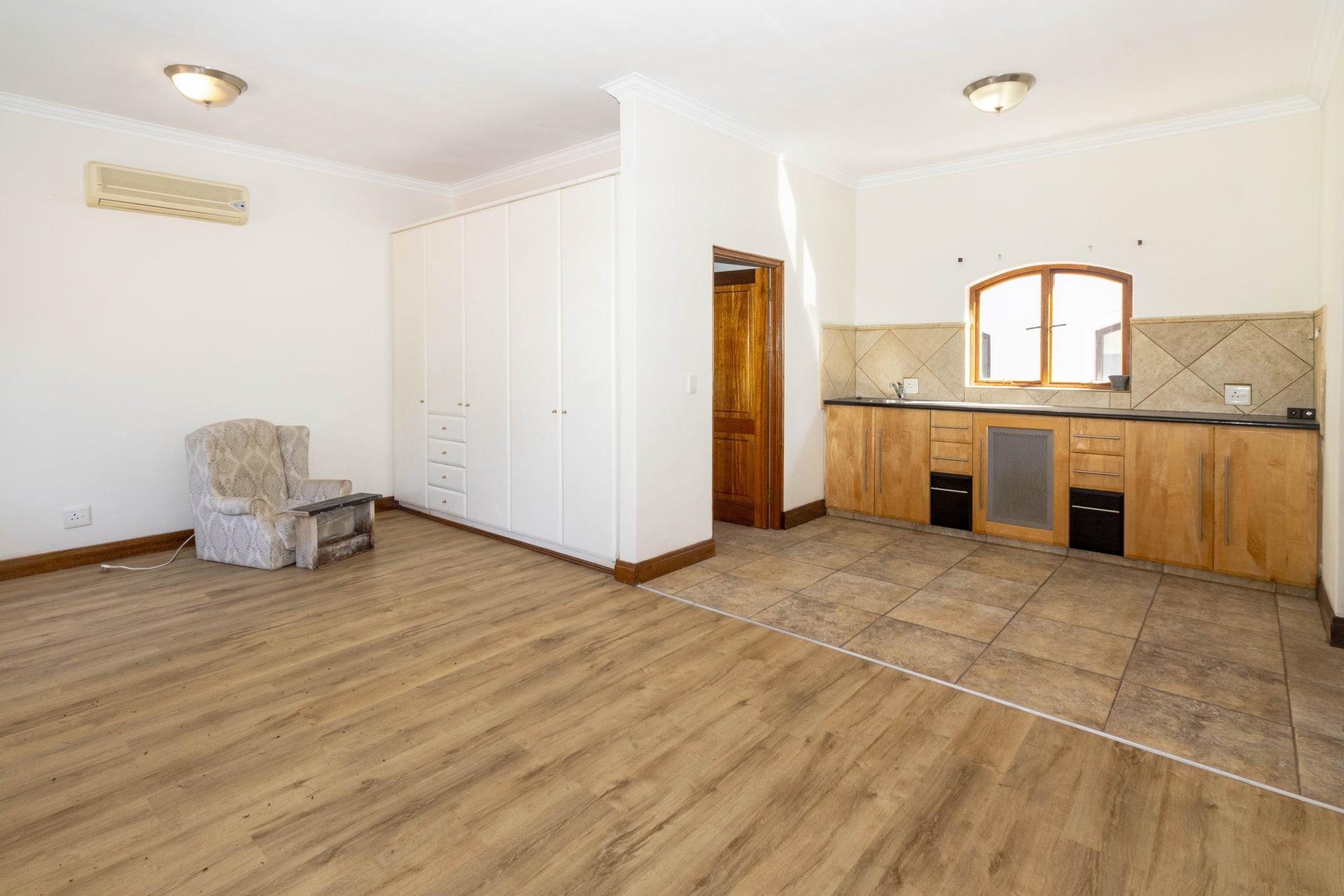Step into the main house through a striking double-volume entrance that leads to a thoughtfully designed interior. The spacious master suite upstairs offers a private haven with a large en-suite bathroom, ample cupboard space, and an adjoining office—perfect for working from home. Two additional bedrooms situated downstairs share a stylish, bathroom, providing ample space for family living.