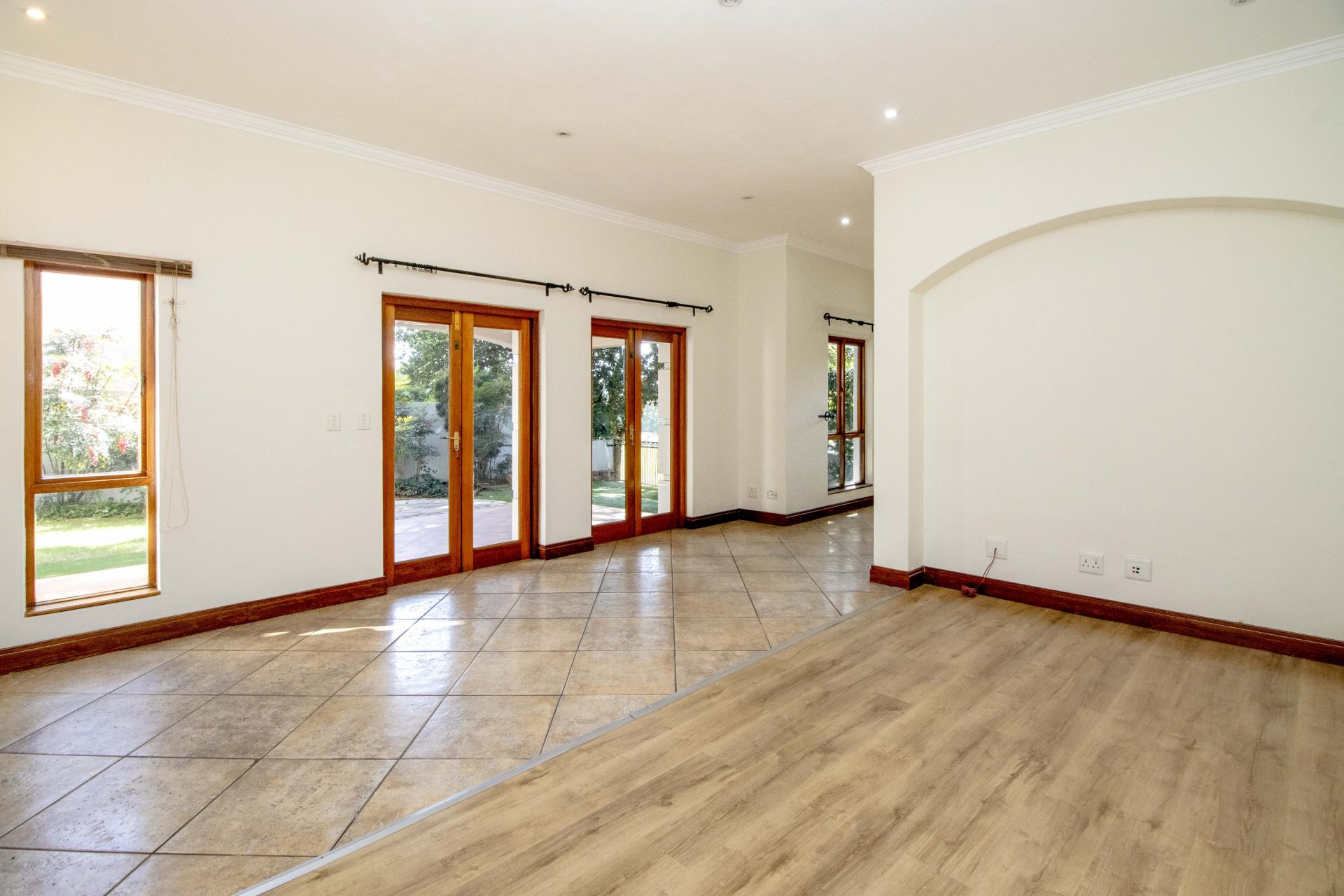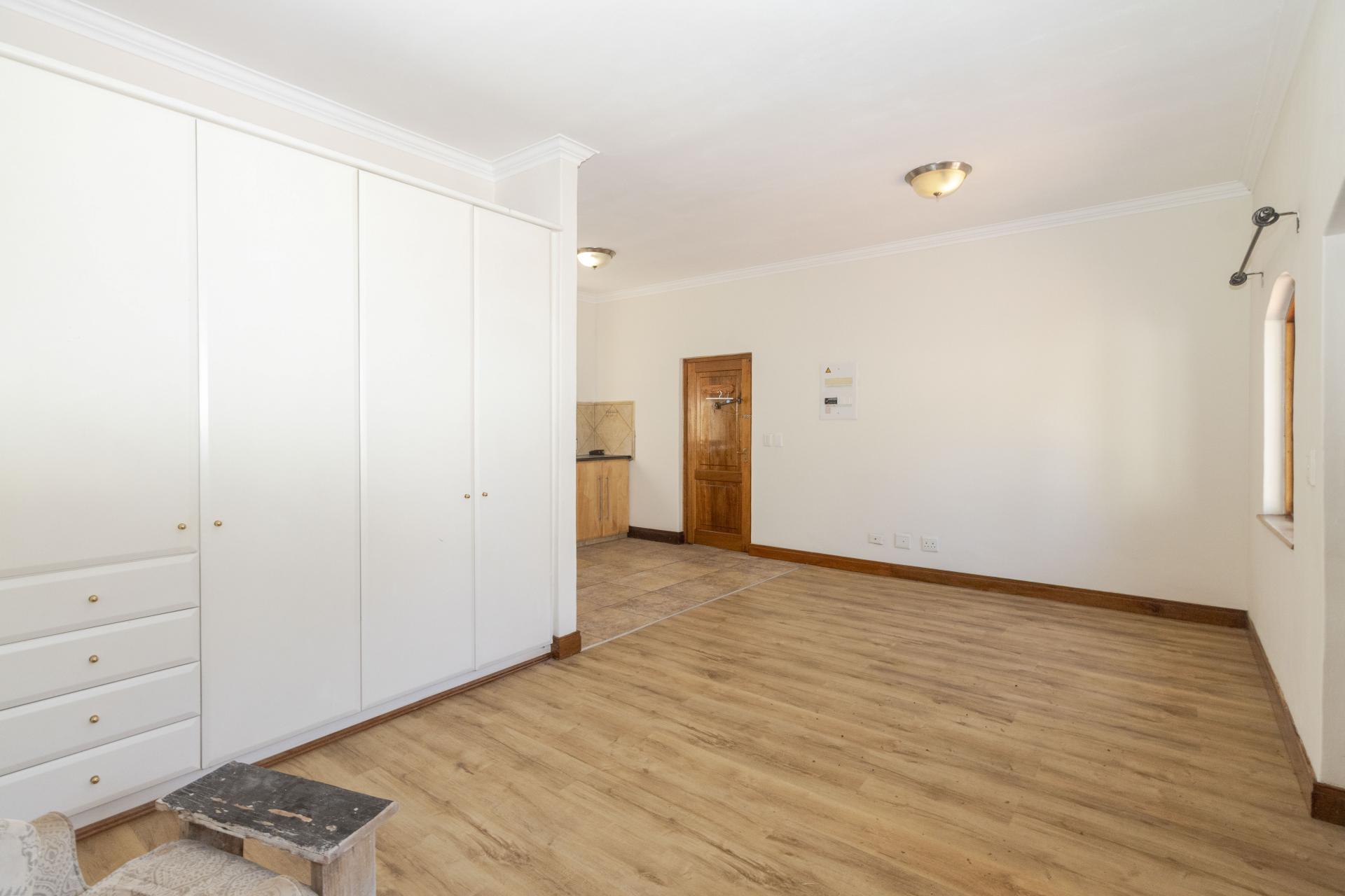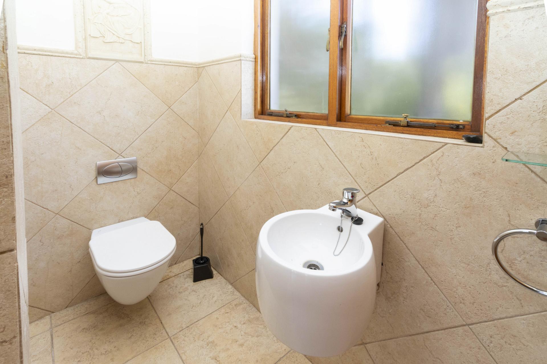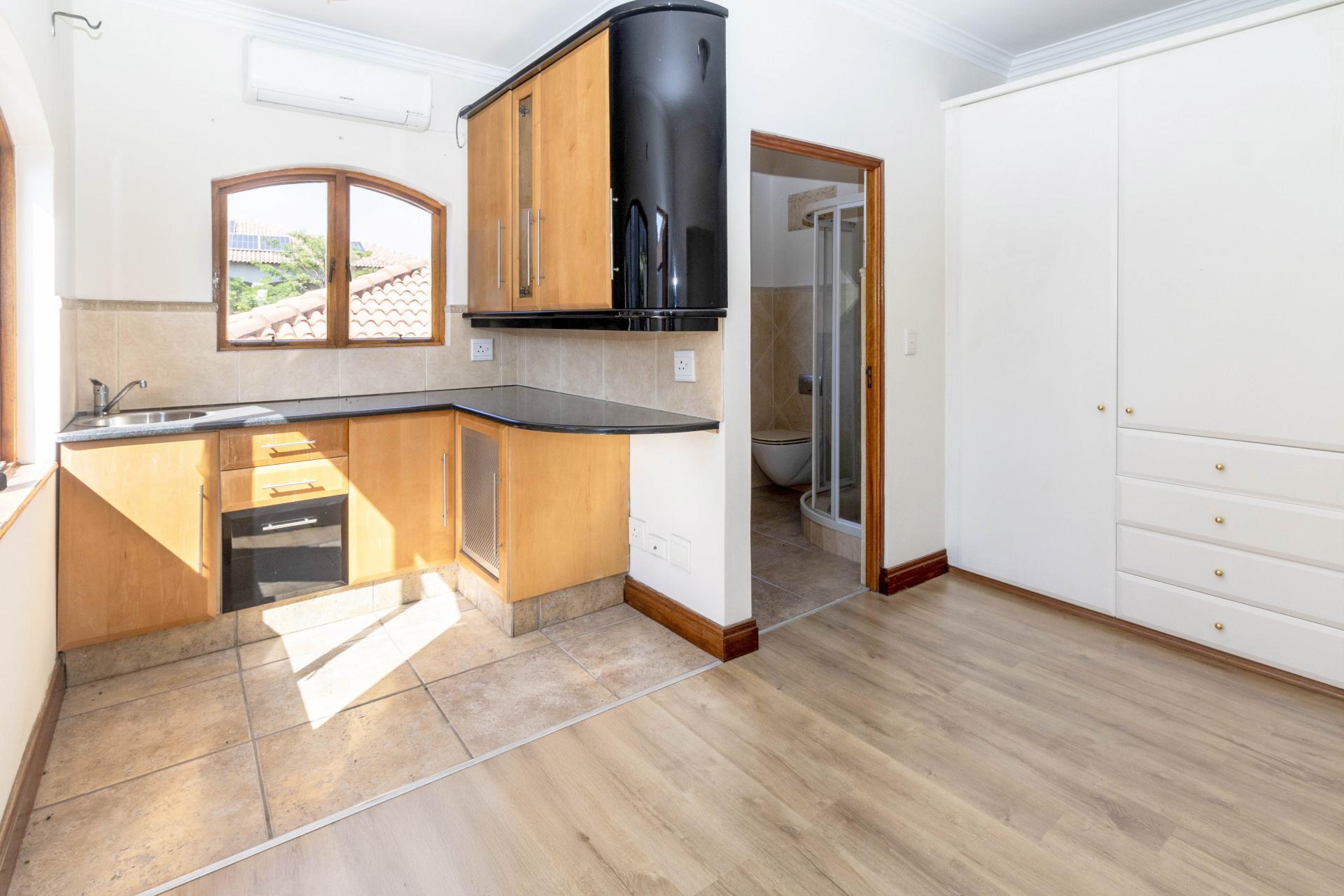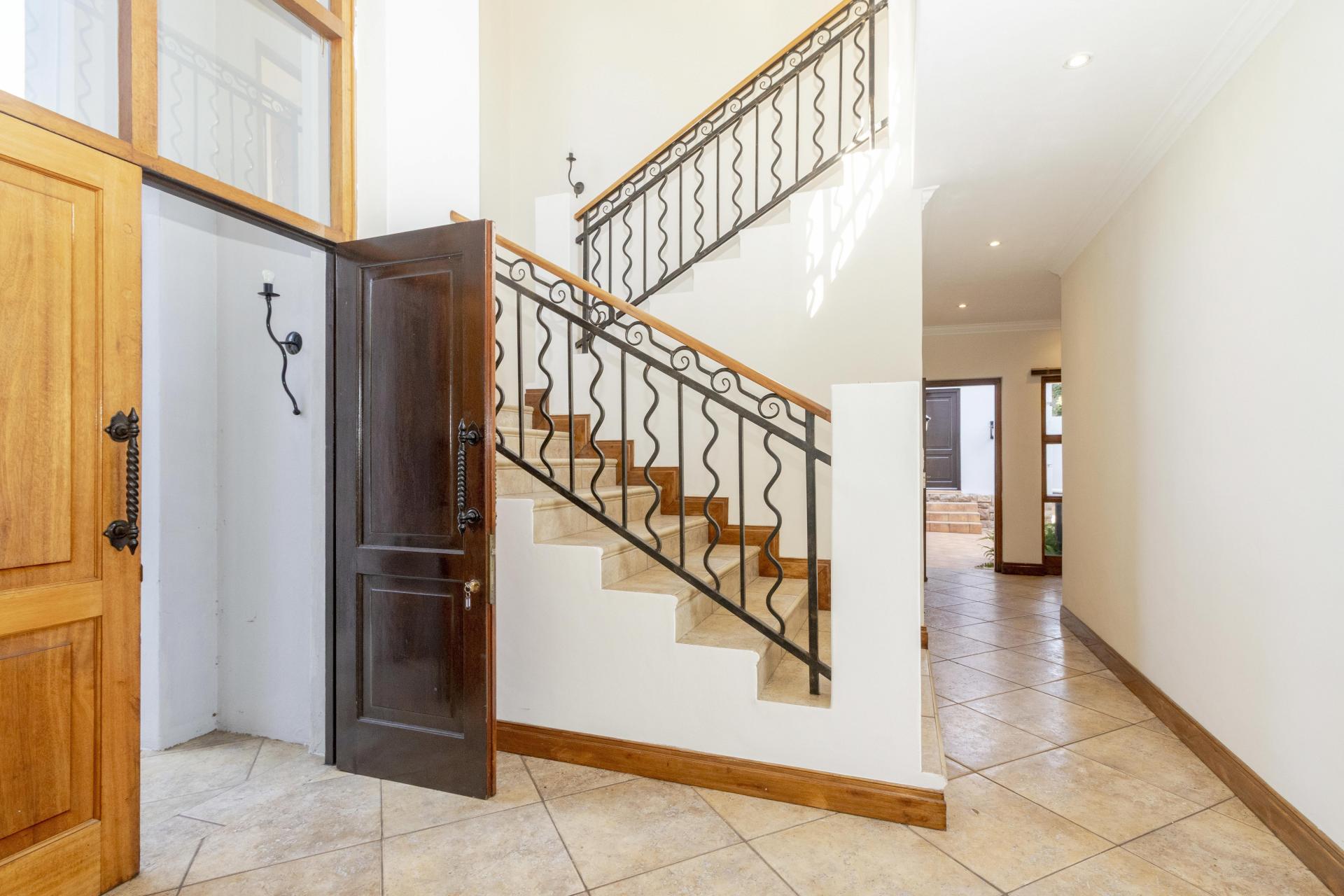 Step into the main house through a striking double-volume entrance that leads to a thoughtfully designed interior. The spacious master suite upstairs offers a private haven with a large en-suite bathroom, ample cupboard space, and an adjoining office—perfect for working from home. Two additional bedrooms situated downstairs share a stylish, bathroom, providing ample space for family living.