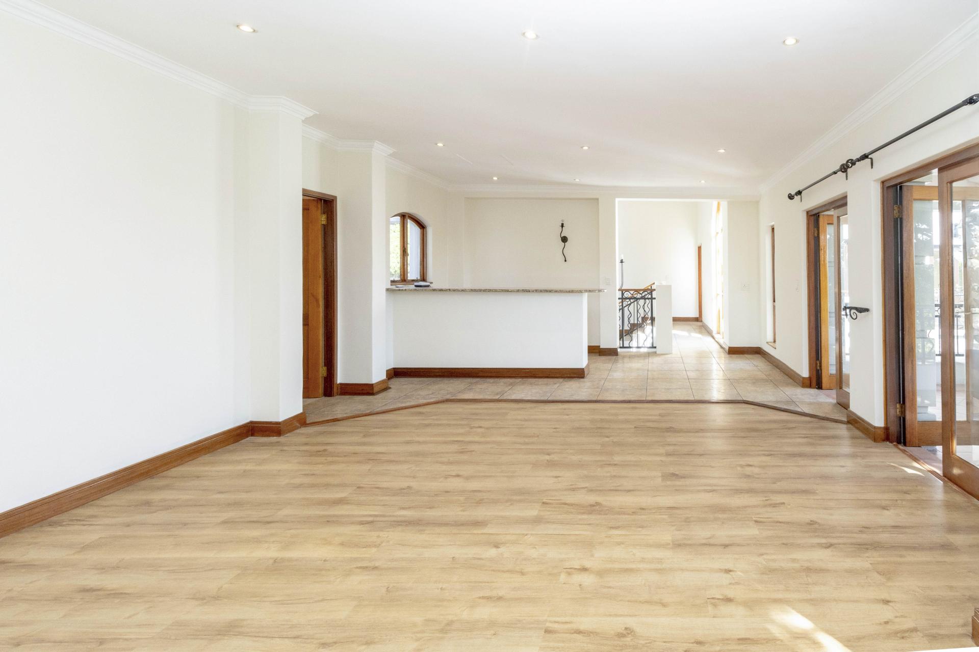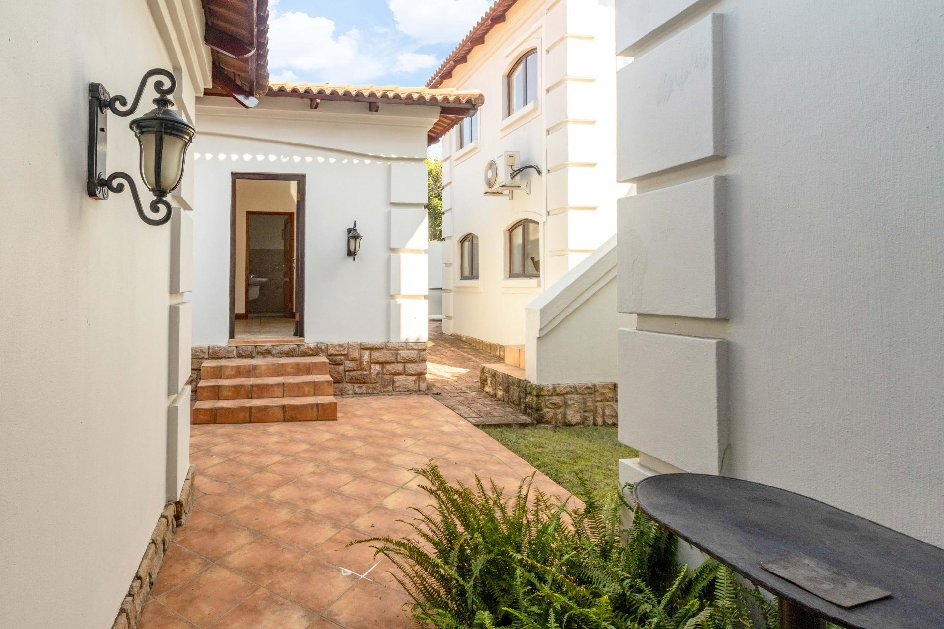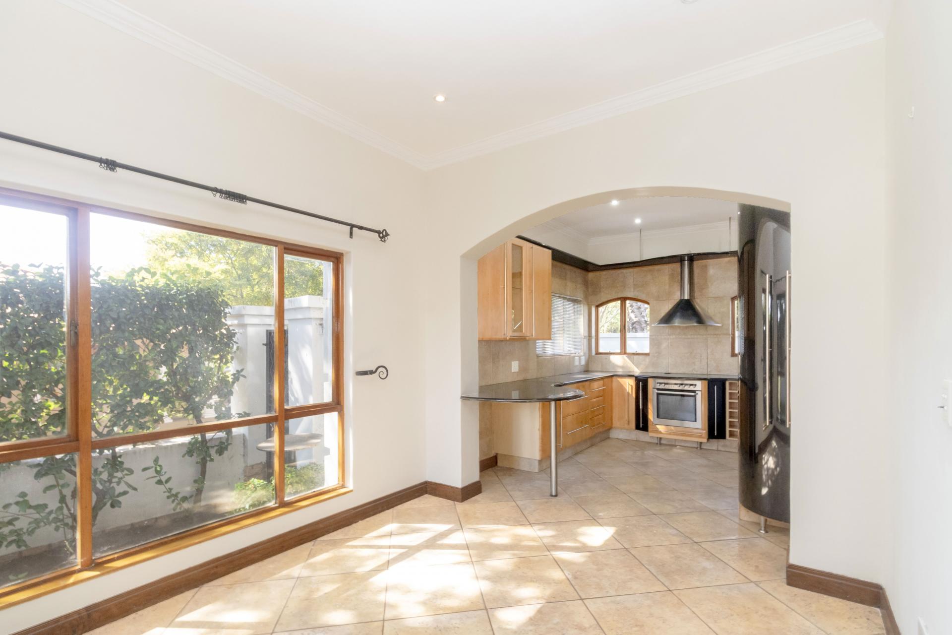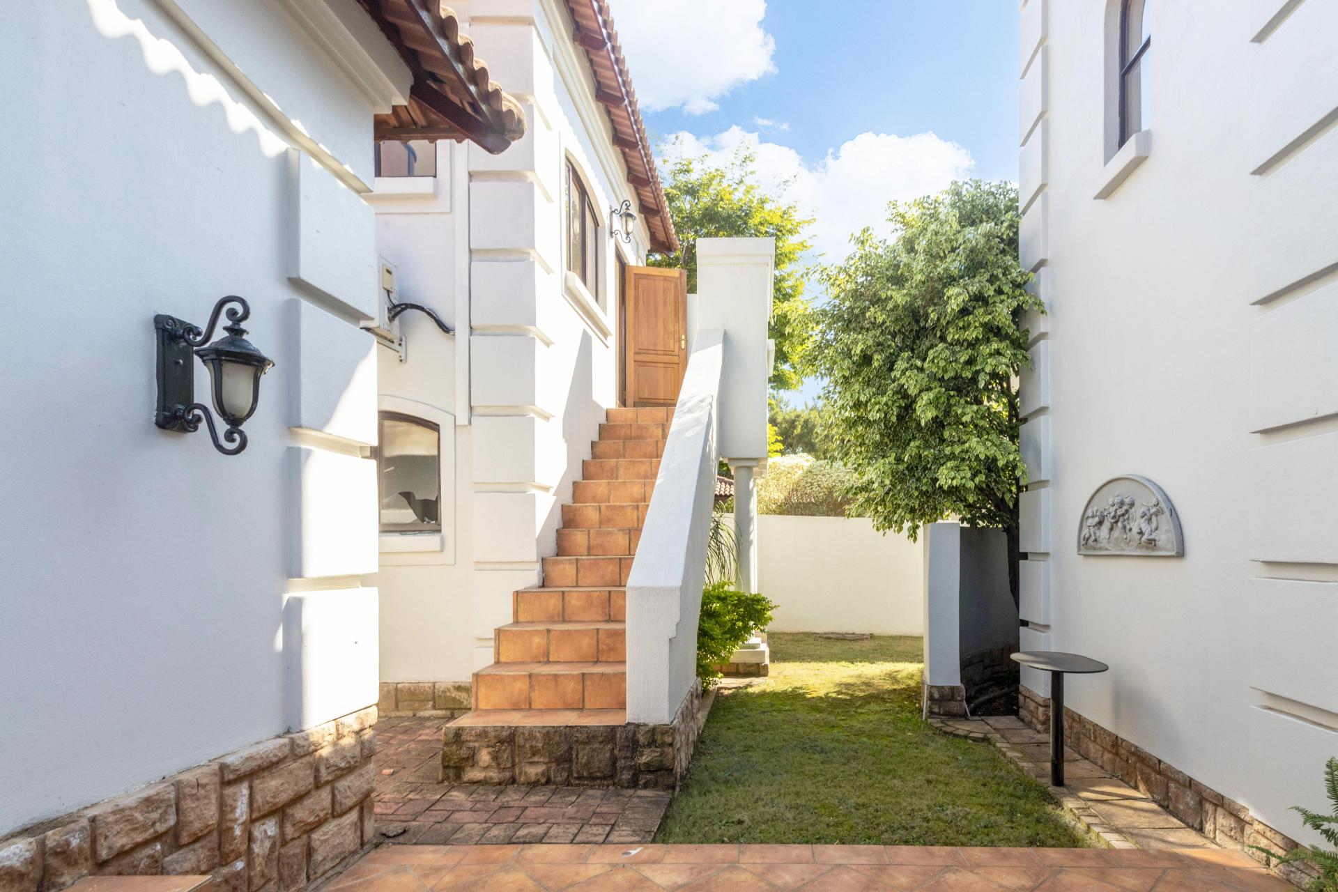 Step into the main house through a striking double-volume entrance that leads to a thoughtfully designed interior. The spacious master suite upstairs offers a private haven with a large en-suite bathroom, ample cupboard space, and an adjoining office—perfect for working from home. Two additional bedrooms situated downstairs share a stylish, bathroom, providing ample space for family living.