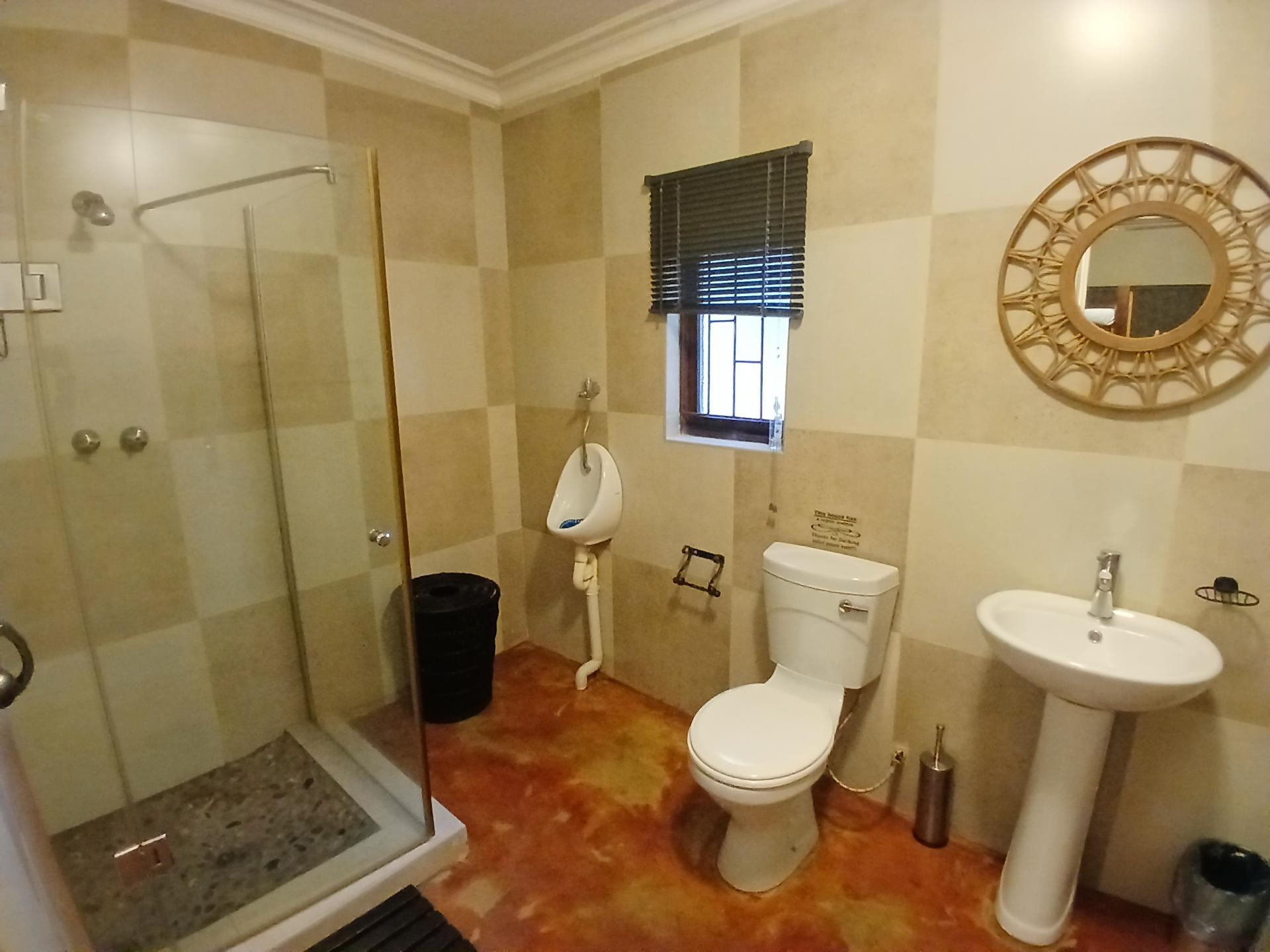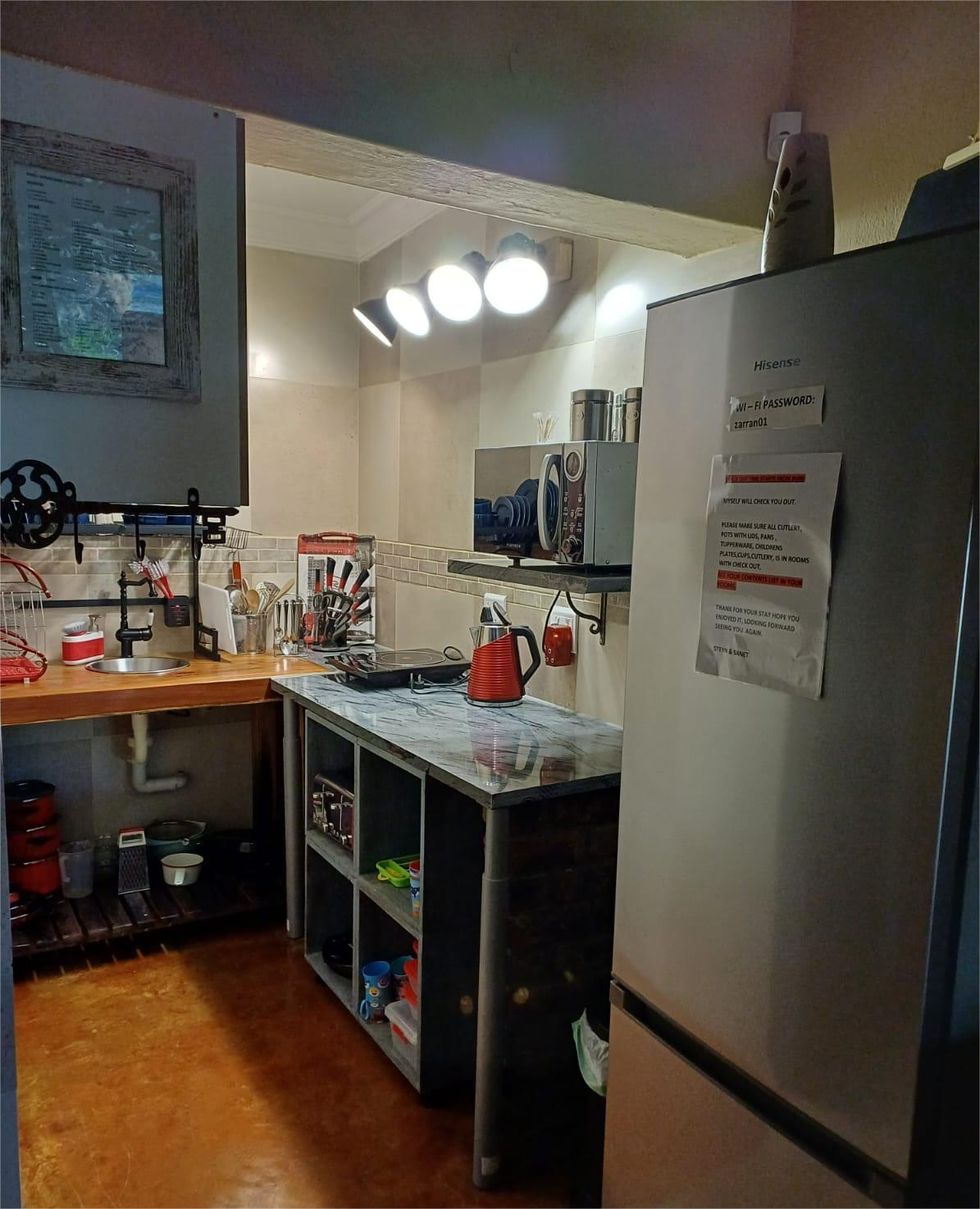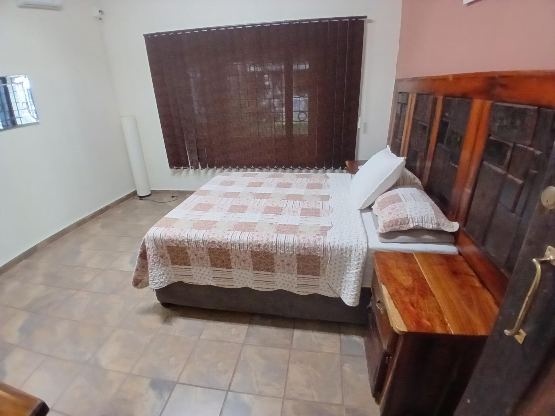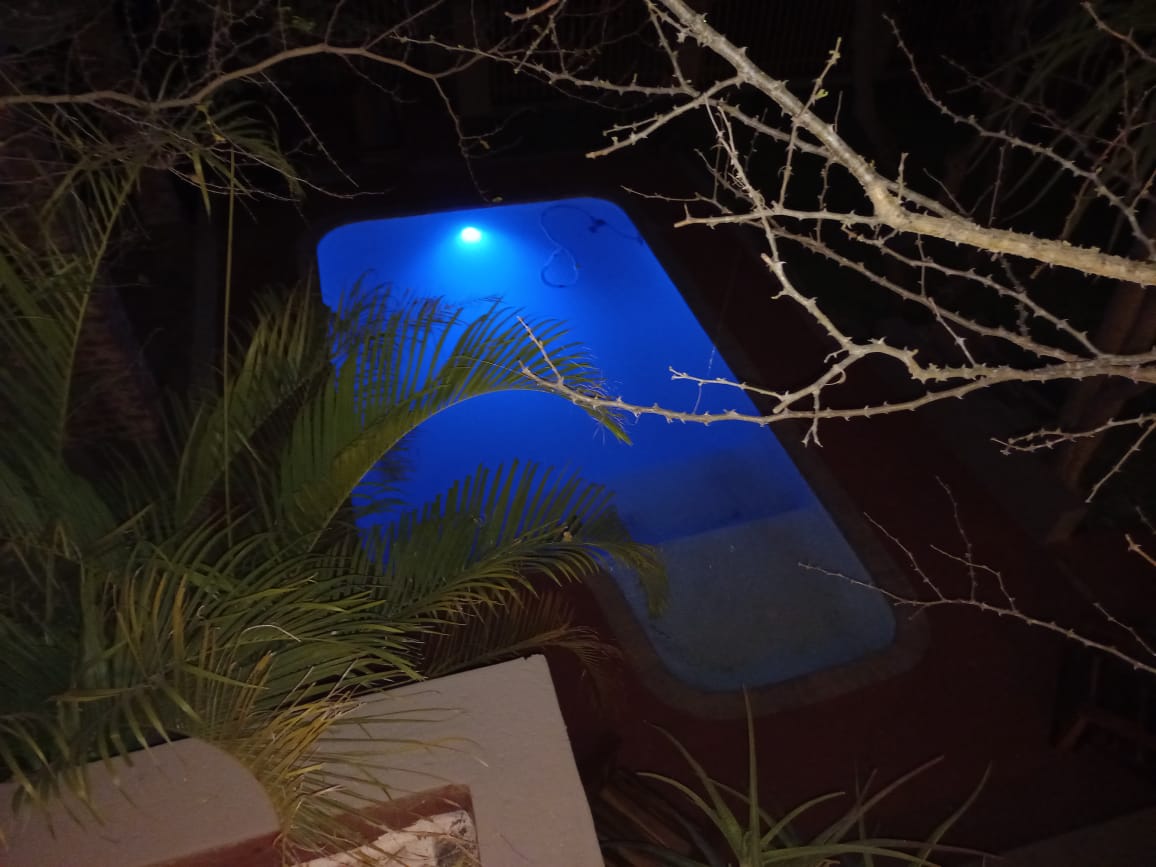 The main unit boasts two comfortable bedrooms, with cupboards and aircons, with the main having a walk in cupboard. Open plan living dining and kitchen area. Well laid out and fully equipped for your with a separate scullery area. This unit features 3 entrances for your convenience. On from the courtyard into the sitting area and the other one from the main en-suite leading to the pool and entertainment area, as well as a back door leading to the laundromat.