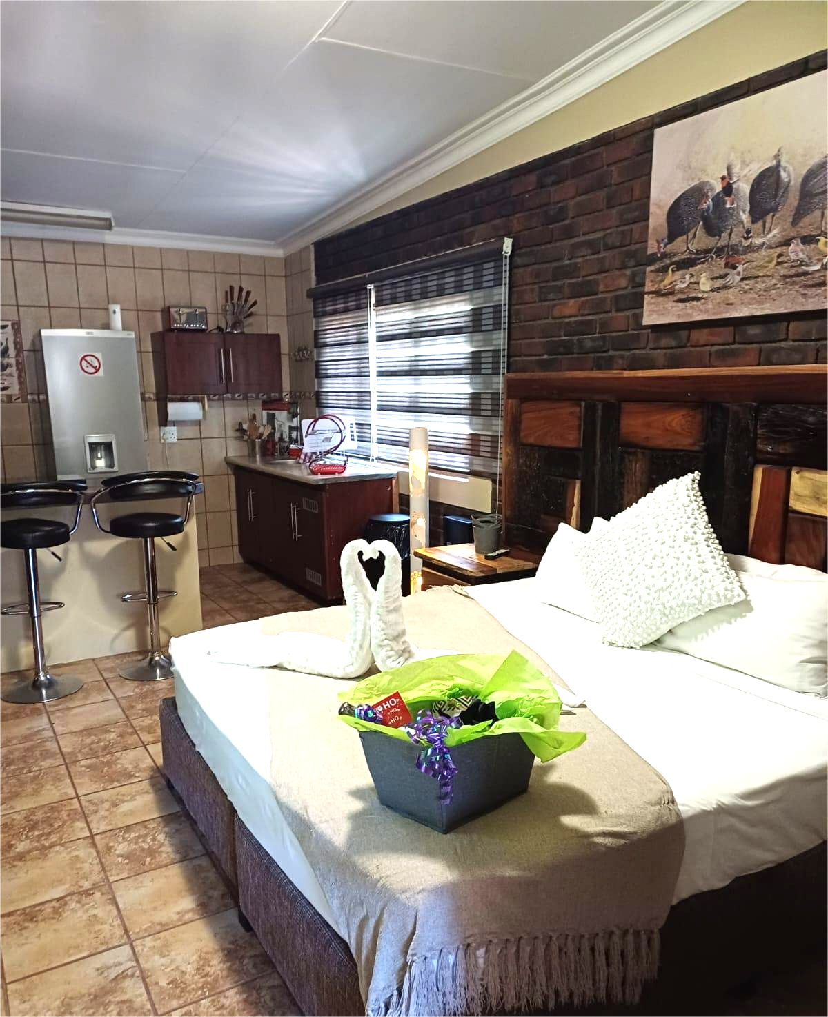 This private, cozy honeymoon suite offers a queen bed, en-suite bathroom, and a kitchenette, perfect for couples seeking a serene getaway. While the honeymoon unit has its own braai area, guests can also share the communal entertainment amenities at the pools, for a perfect blend of privacy and social interaction.