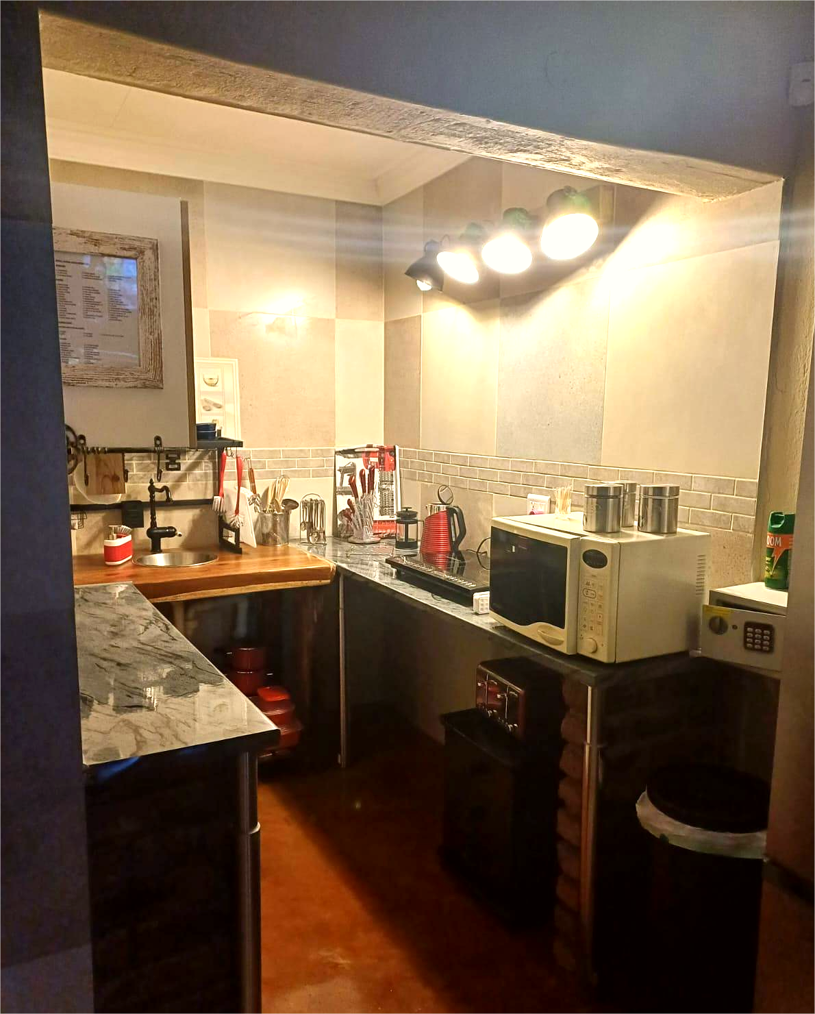 - A borehole with 2 x 5000L tanks and filtration systems, ensuring a sustainable water supply. tested for human consumption