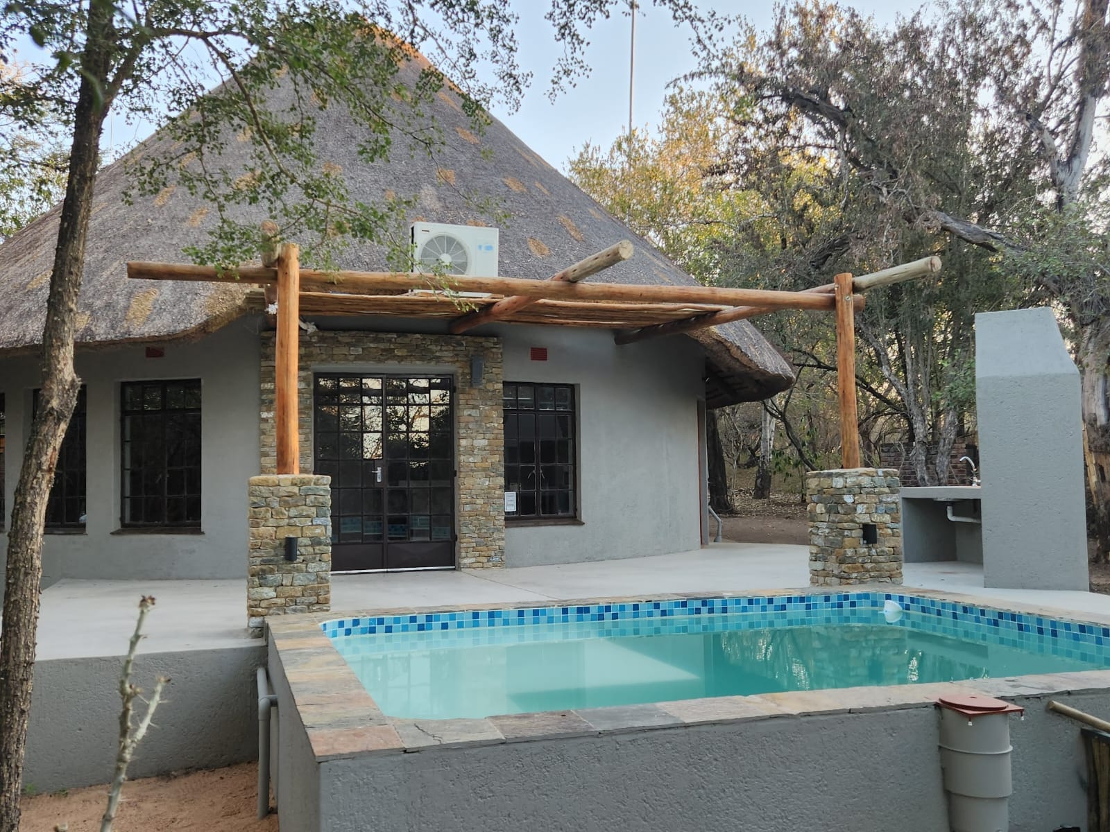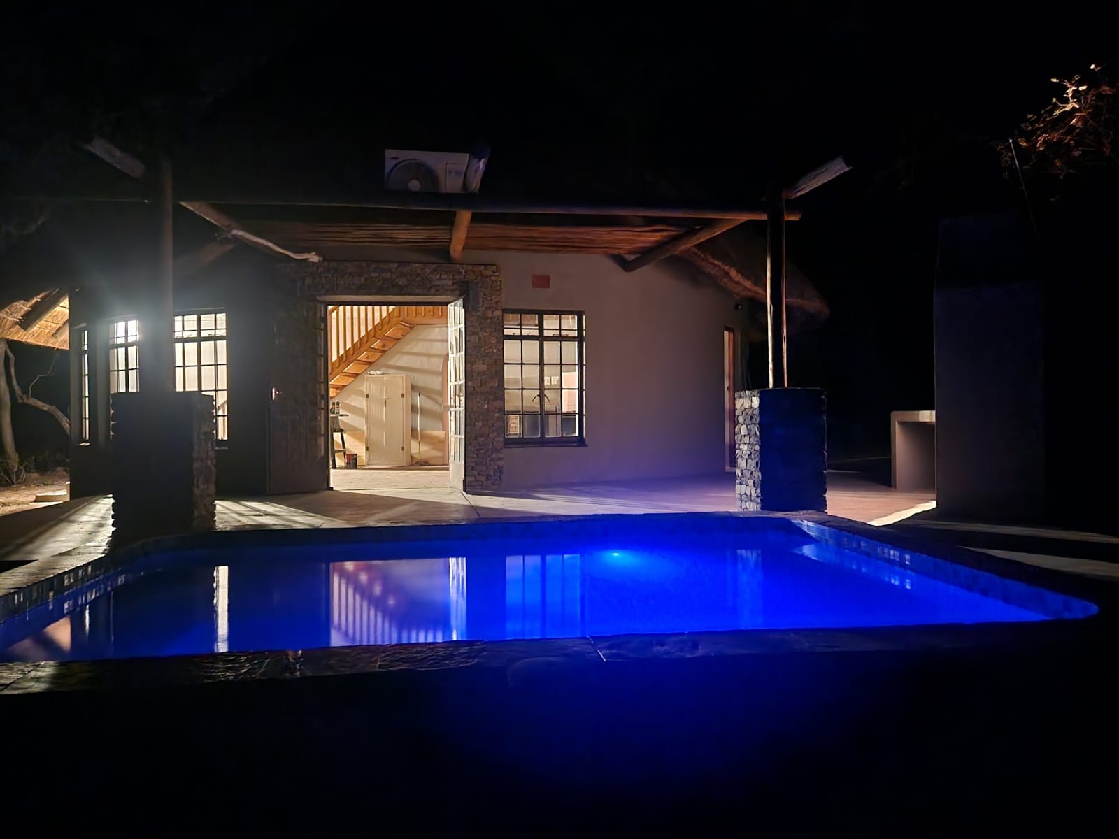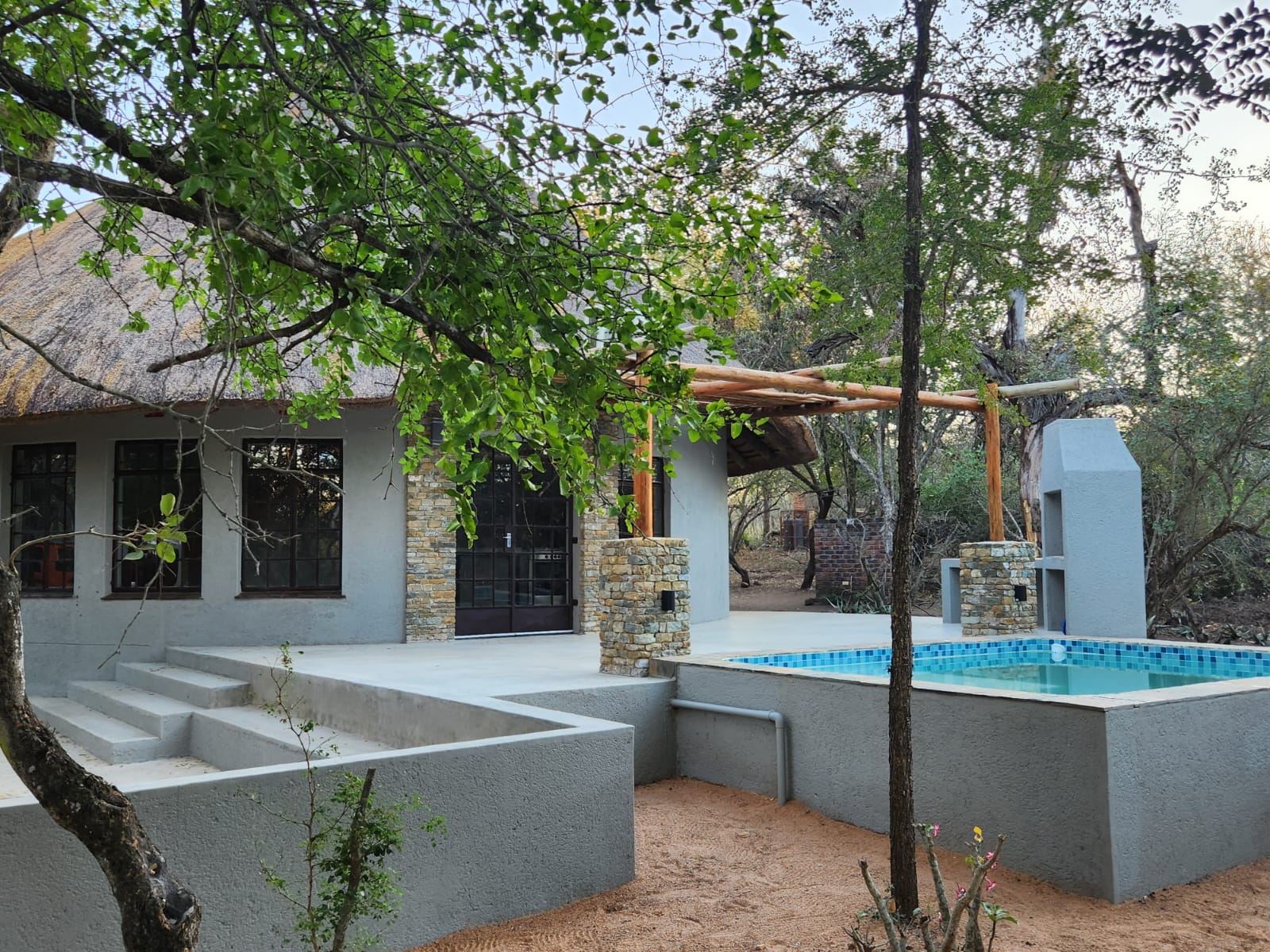 The main house welcomes one into an open plan lounge and kitchen area. A bedroom with an en suite bathroom is also situated on this level. Two more bedrooms and a bathroom are located upstairs. The downstairs store room at the back is an added bonus. The partially covered, spacious veranda offers views of the magnificent Crocodile River and a sparkling pool keeps you cool in summer. The braai area and an open air boma come to life at night and beckons guests to listen to the night sounds and gaze at the African night skies.