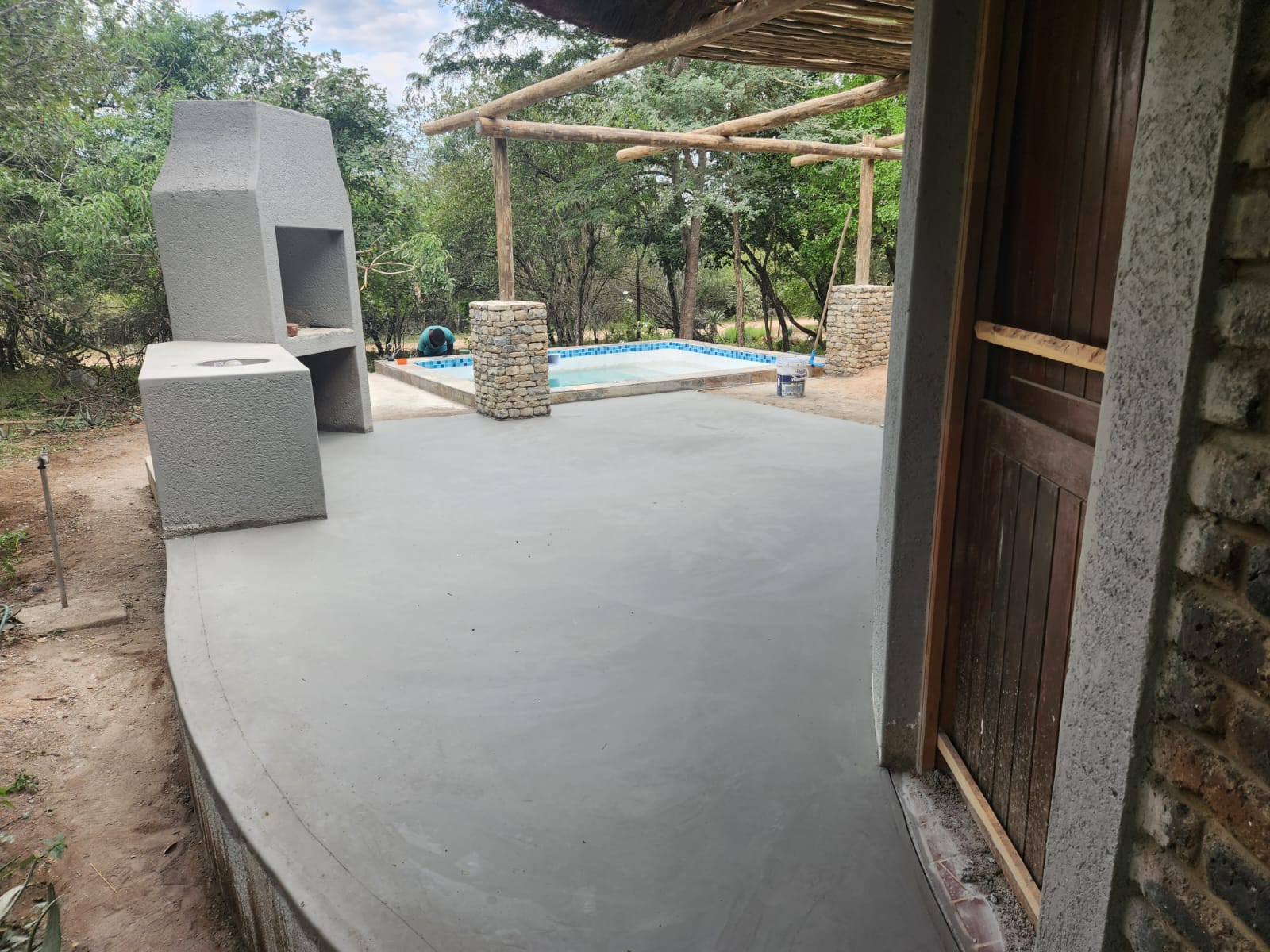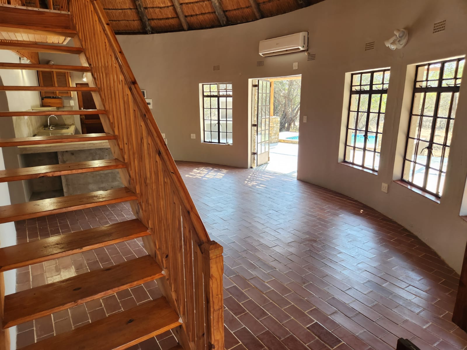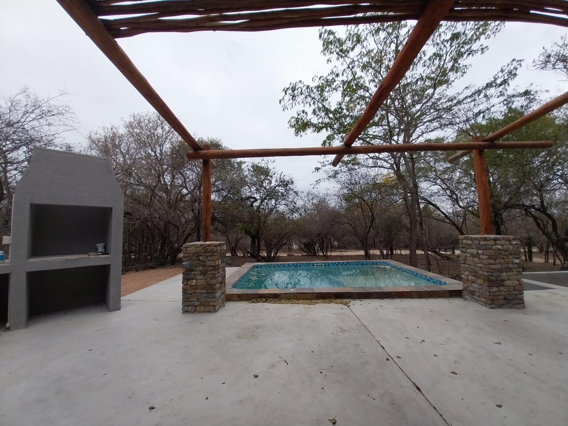 The main house welcomes one into an open plan lounge and kitchen area. A bedroom with an en suite bathroom is also situated on this level. Two more bedrooms and a bathroom are located upstairs. The downstairs store room at the back is an added bonus. The partially covered, spacious veranda offers views of the magnificent Crocodile River and a sparkling pool keeps you cool in summer. The braai area and an open air boma come to life at night and beckons guests to listen to the night sounds and gaze at the African night skies.