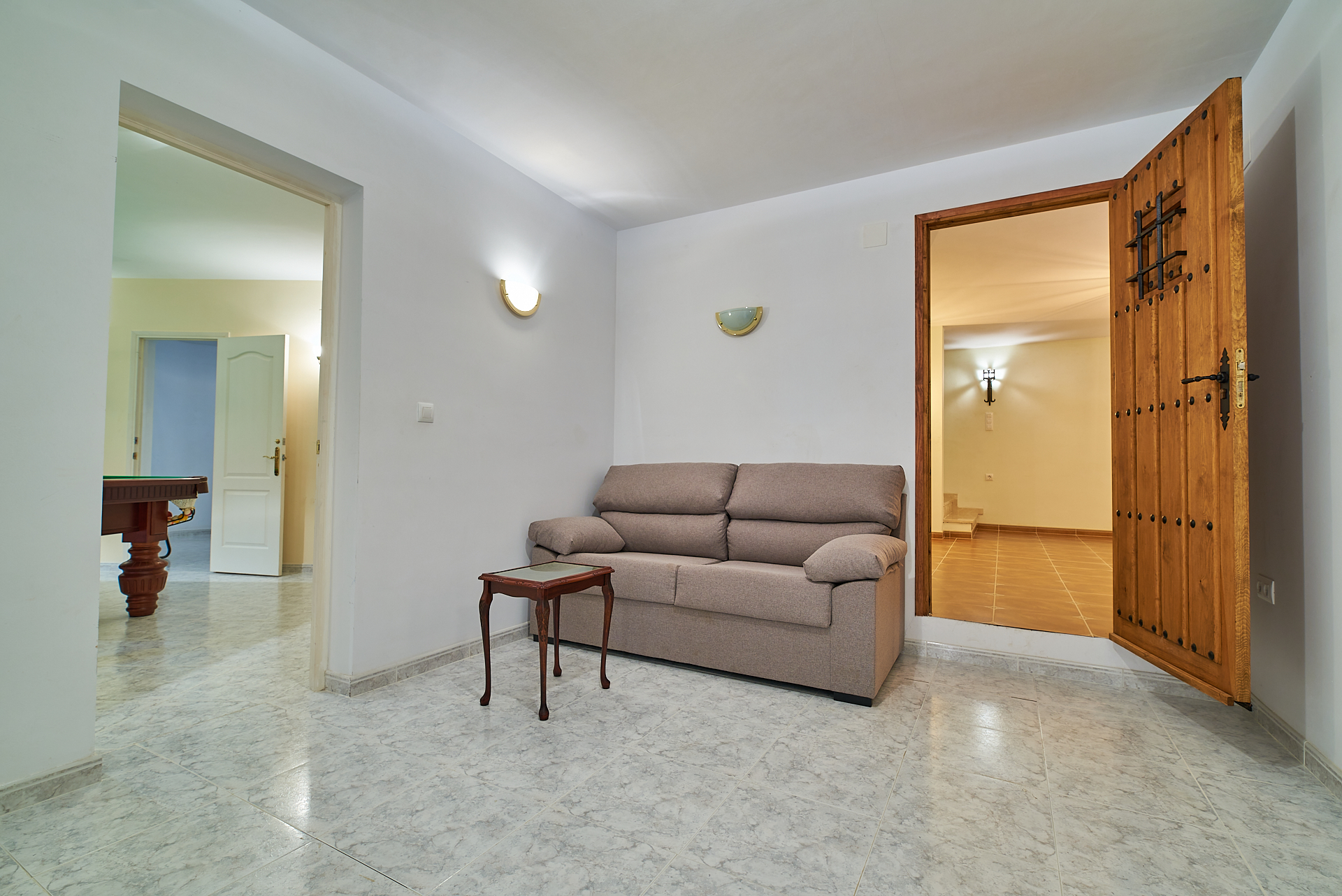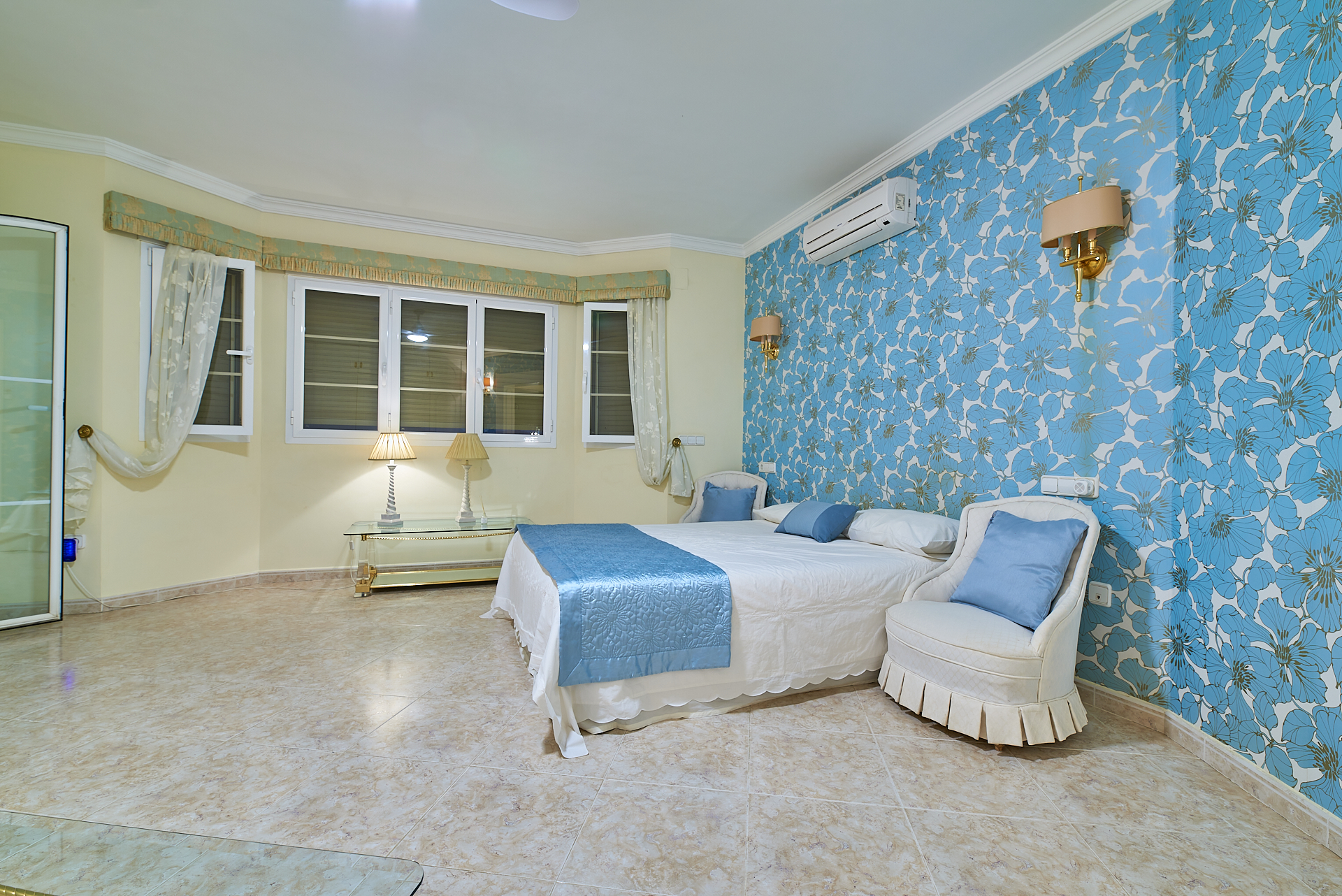 On the upper floor there are 2 additional bedrooms including the master, with dressing areas, ensuite bathrooms and both with access to the huge upstairs terrace to enjoy the fabulous views. On the lower level accessed via the internal staircase there is a 300m2 basement with a billiard room, home cinema room, several auxiliary rooms that can be used for a gymnasium, wine bodega etc., and a separate guest apartment with living room, kitchen, bathroom and bedroom and its own entrance ideal for visitors or older family members requiring privacy.