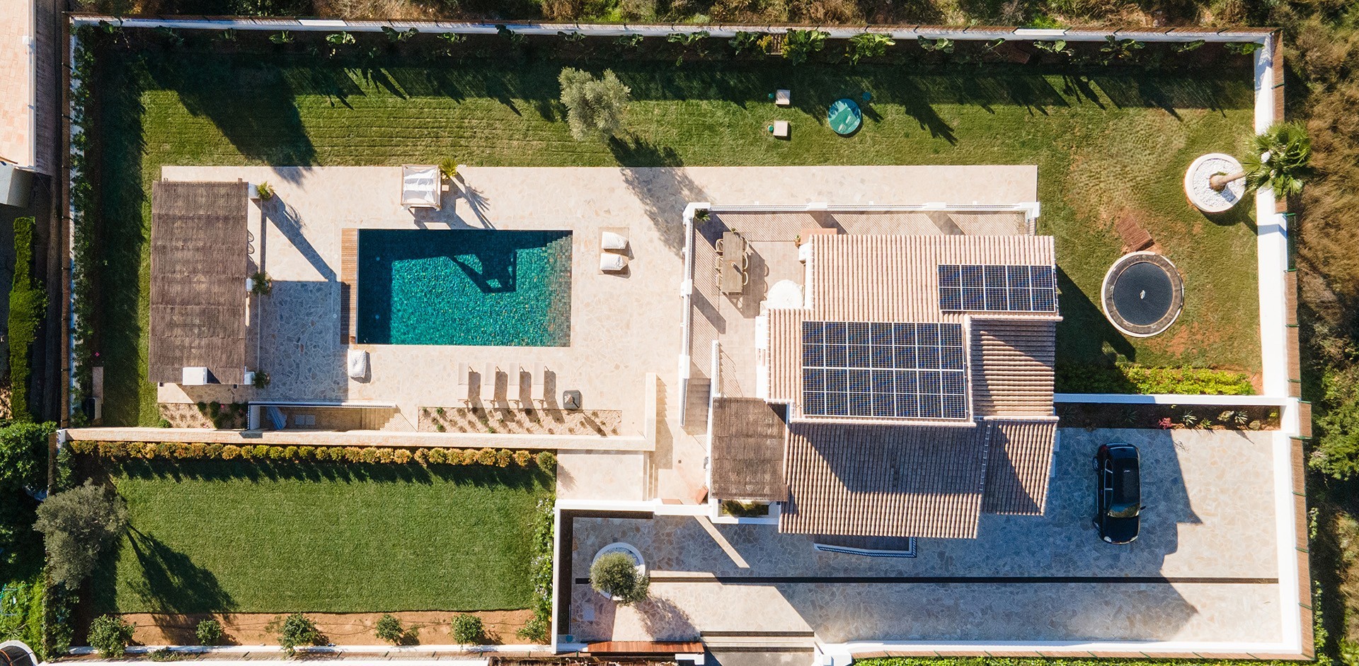 Sustainability: A biological water purification system allows for environmentally friendly water reuse, enhancing the lush gardens while reducing environmental impact. The villa is also fitted with high-efficiency solar panels, significantly reducing energy consumption and promoting a more sustainable lifestyle.