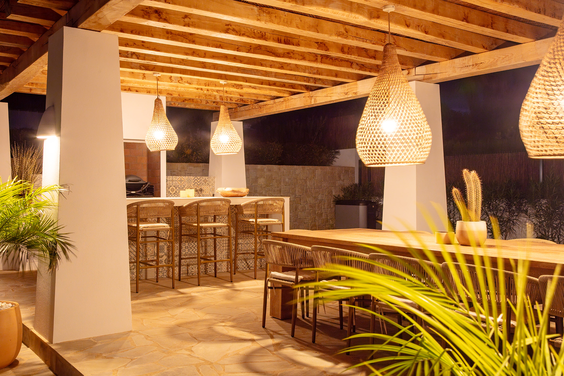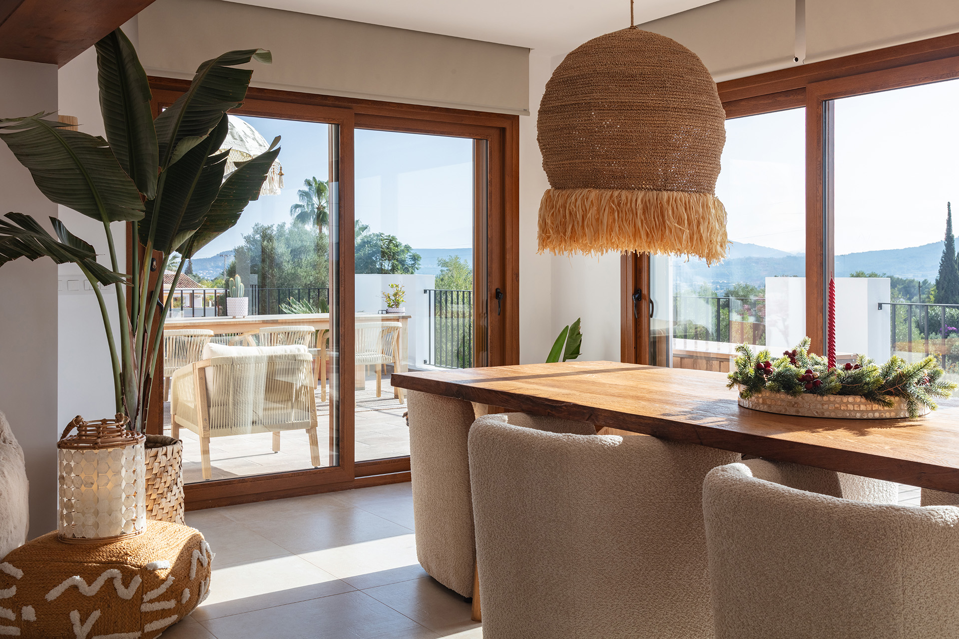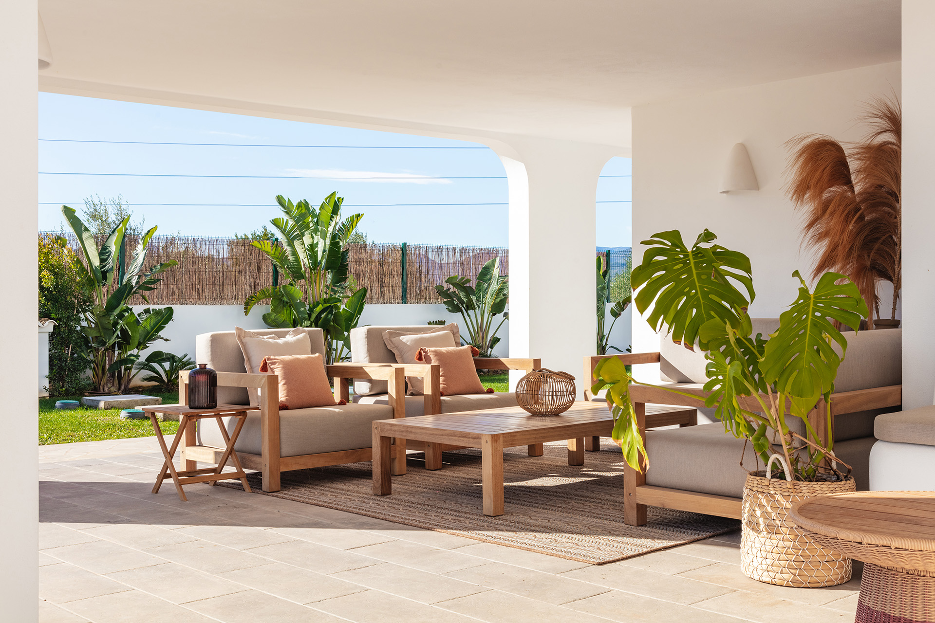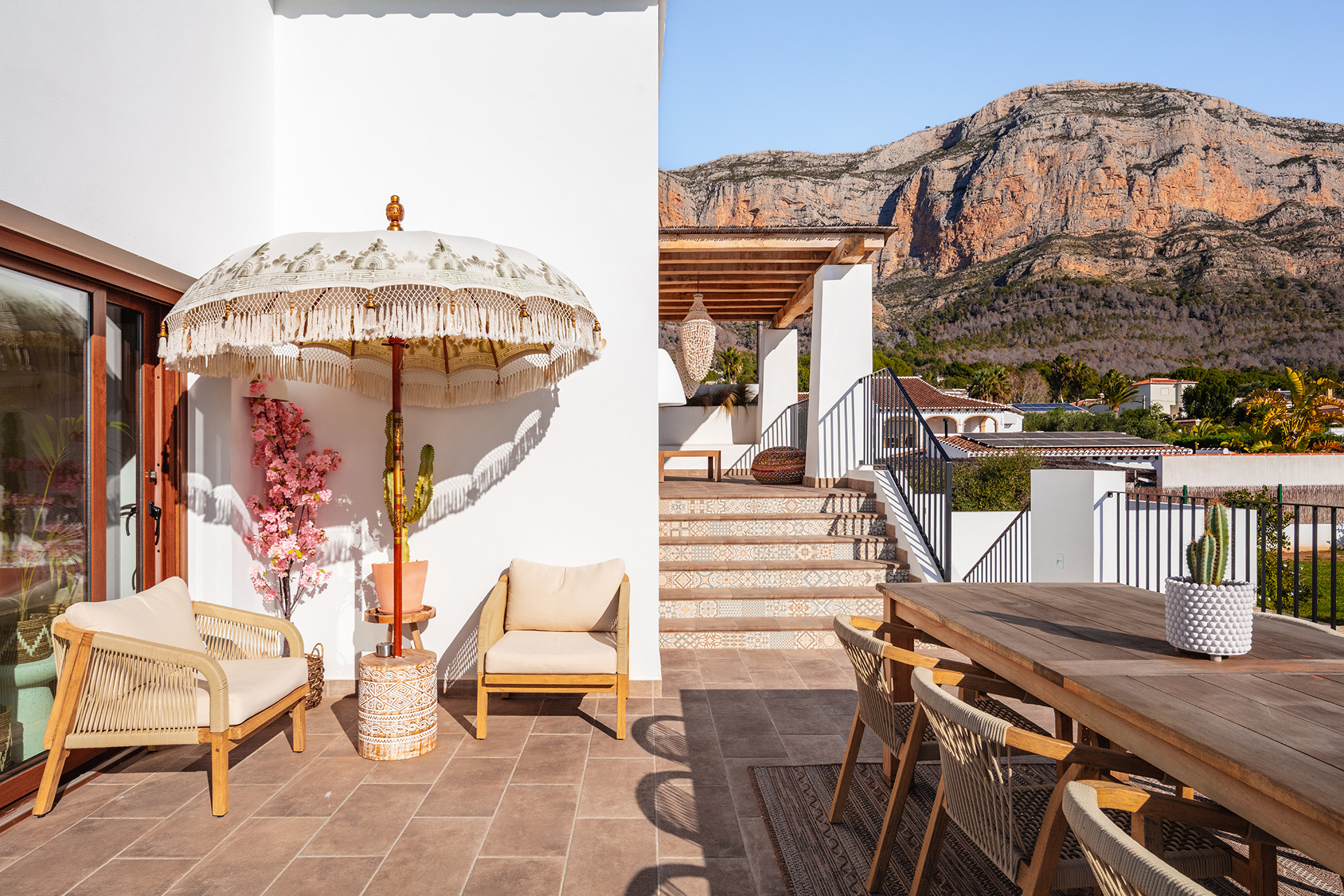 - Elevated open terrace with lounge and dining area
