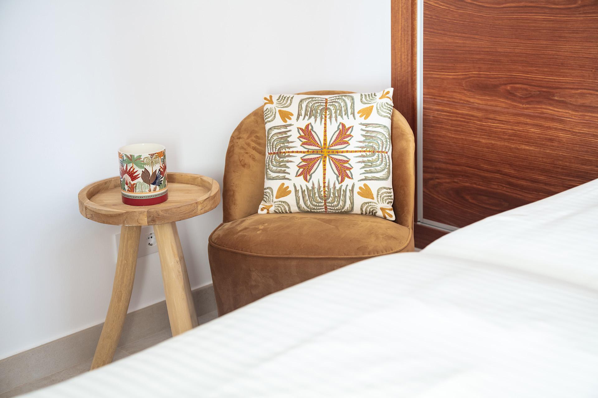 The villa offers six beautifully appointed bedrooms, each a haven of serenity. On the main level, two spacious double bedrooms feature fitted wardrobes and ensuite bathrooms, providing luxurious comfort for guests or family members. A guest toilet adds further convenience. The living space extends onto a sun-drenched terrace—the perfect spot to sip a glass of wine while enjoying golden Mediterranean sunsets over the rolling valley.