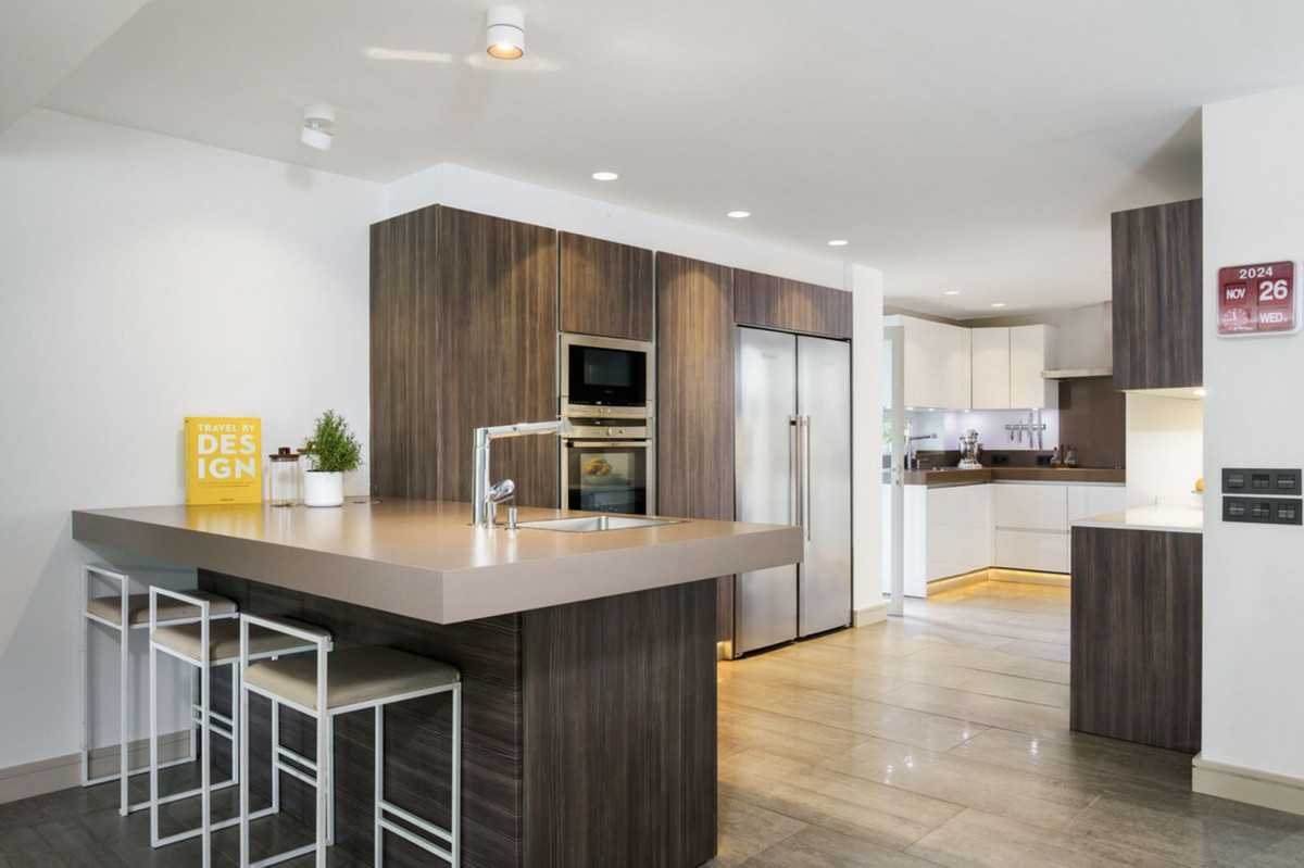 Exquisite detached villa located in one of the most sought-after neighborhoods in lower Nueva Andalucía. Nestled in a quiet and well-established area, the property is conveniently located within walking distance of all general amenities, restaurants, and other essential services. Originally constructed in the 1970s, the villa has been completely renovated, including the addition of a second floor, a fabulous roof top solarium, and a guest house. Every aspect of the property has been modernised with precision, ensuring both functionality and elegance while maintaining its unique character. The villa briefly comprises: On the ground floor, open-plan design seamlessly integrates the living and dining areas with a premium, fully equipped kitchen. The space is bright and inviting, designed for both daily living and entertaining. This level also features three spacious en-suite bedrooms, thoughtfully arranged for privacy and convenience, as well as a guest toilet for added practicality.