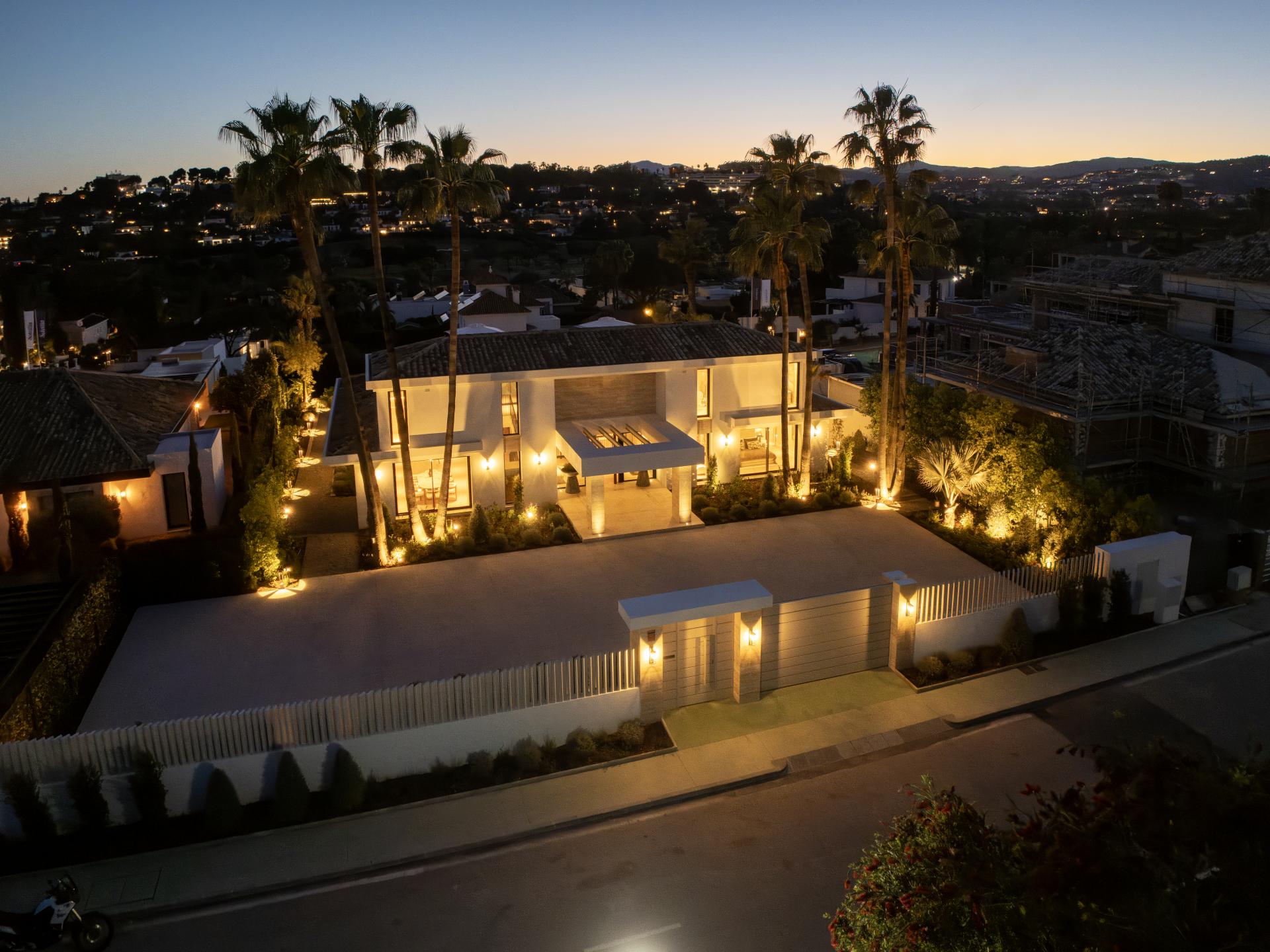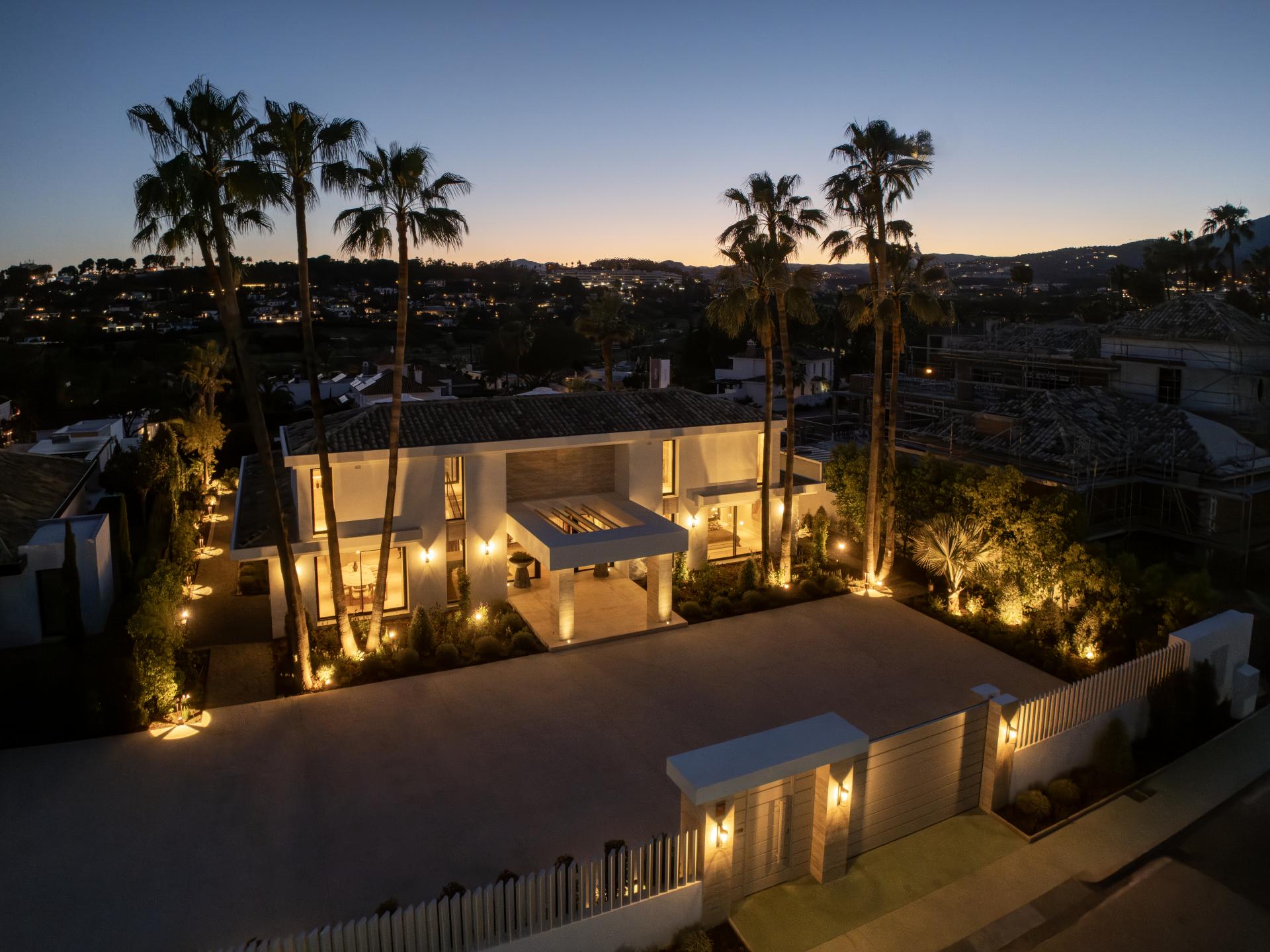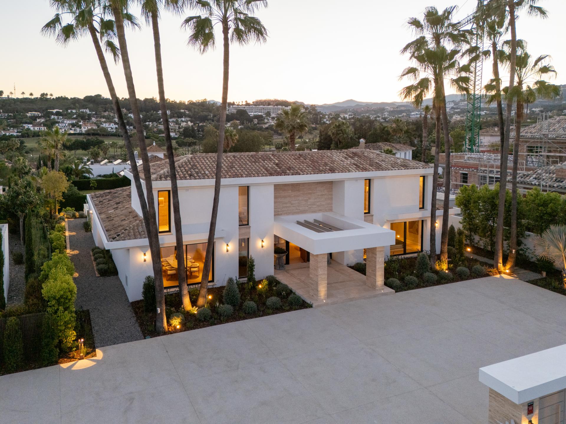 Located in the exclusive residential enclave of Aloha in Nueva Andalucía, this fully renovated villa showcases a stunning architectural blend of tradition and contemporary sophistication. Designed by GC Studio and constructed by B. Solis, the property features a symmetrical façade, natural materials, ribbed wooden accents, and striking clean lines. Traditional roof tiles and a landscaped entrance by Juan Pedro Sacedón Paisajismo bring a strong sense of local heritage and harmony with nature.