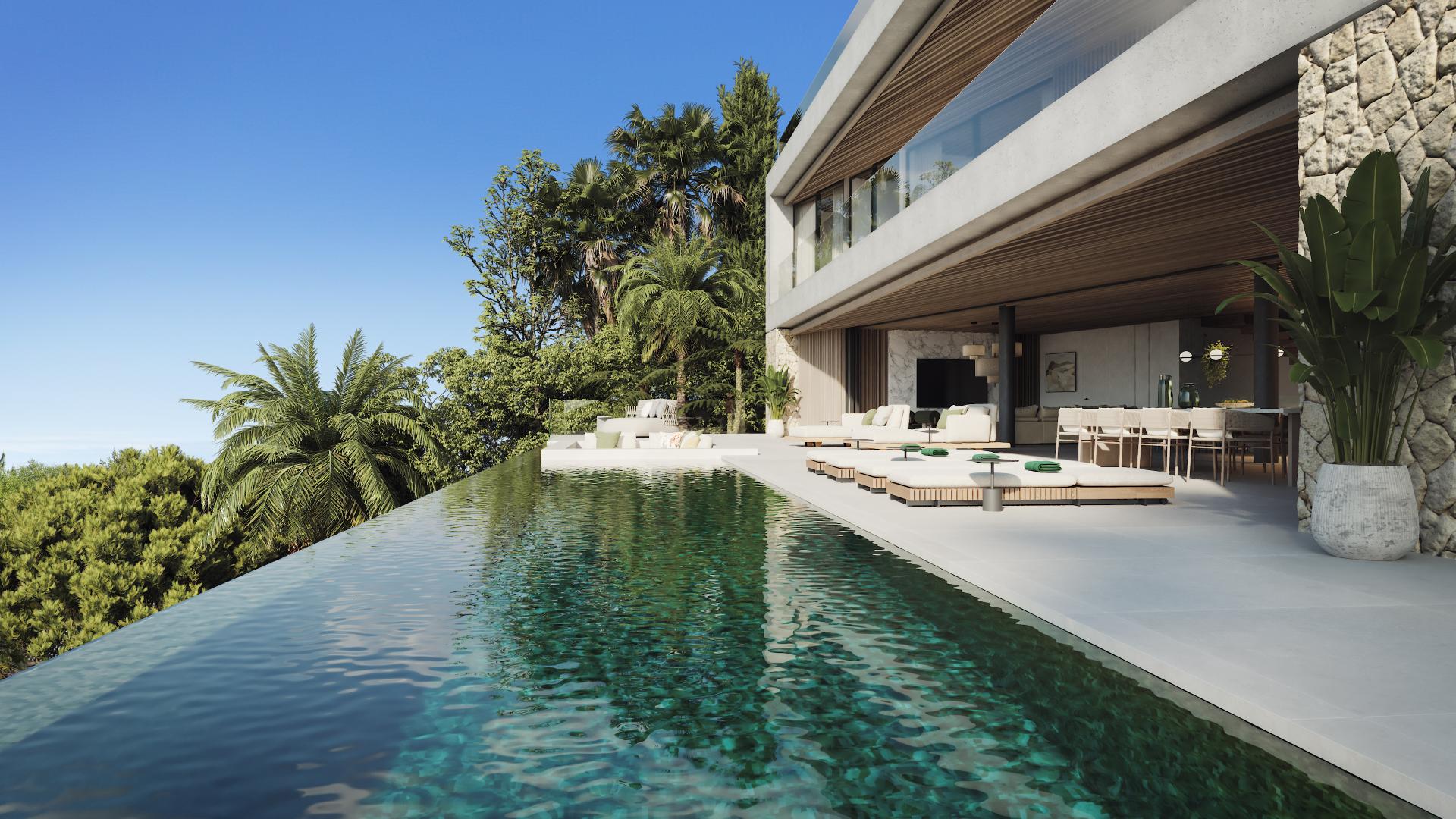 Embrace the epitome of luxury living with an infinity pool and sunken chill-out area, ideal for hosting gatherings or relaxation. Expansive terraces offer the perfect setting for alfresco dining and lounging, with sweeping panoramic views of the surrounding landscape and Aloha golf course. The solarium adds an extra touch of opulence with its small pool, chill-out area and kitchenette, all perfectly oriented to capture the warmth of the sun.