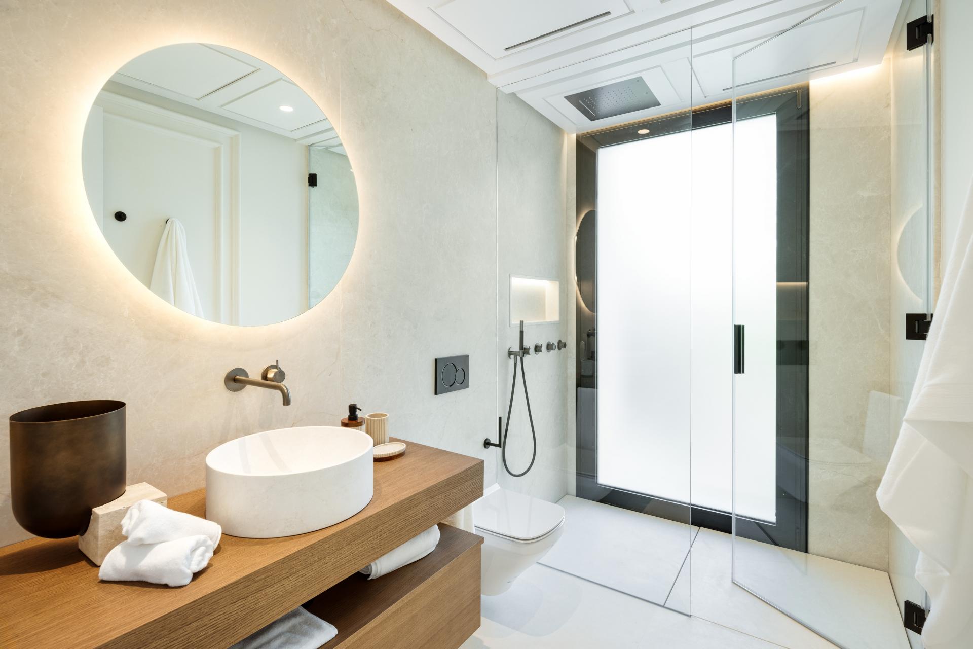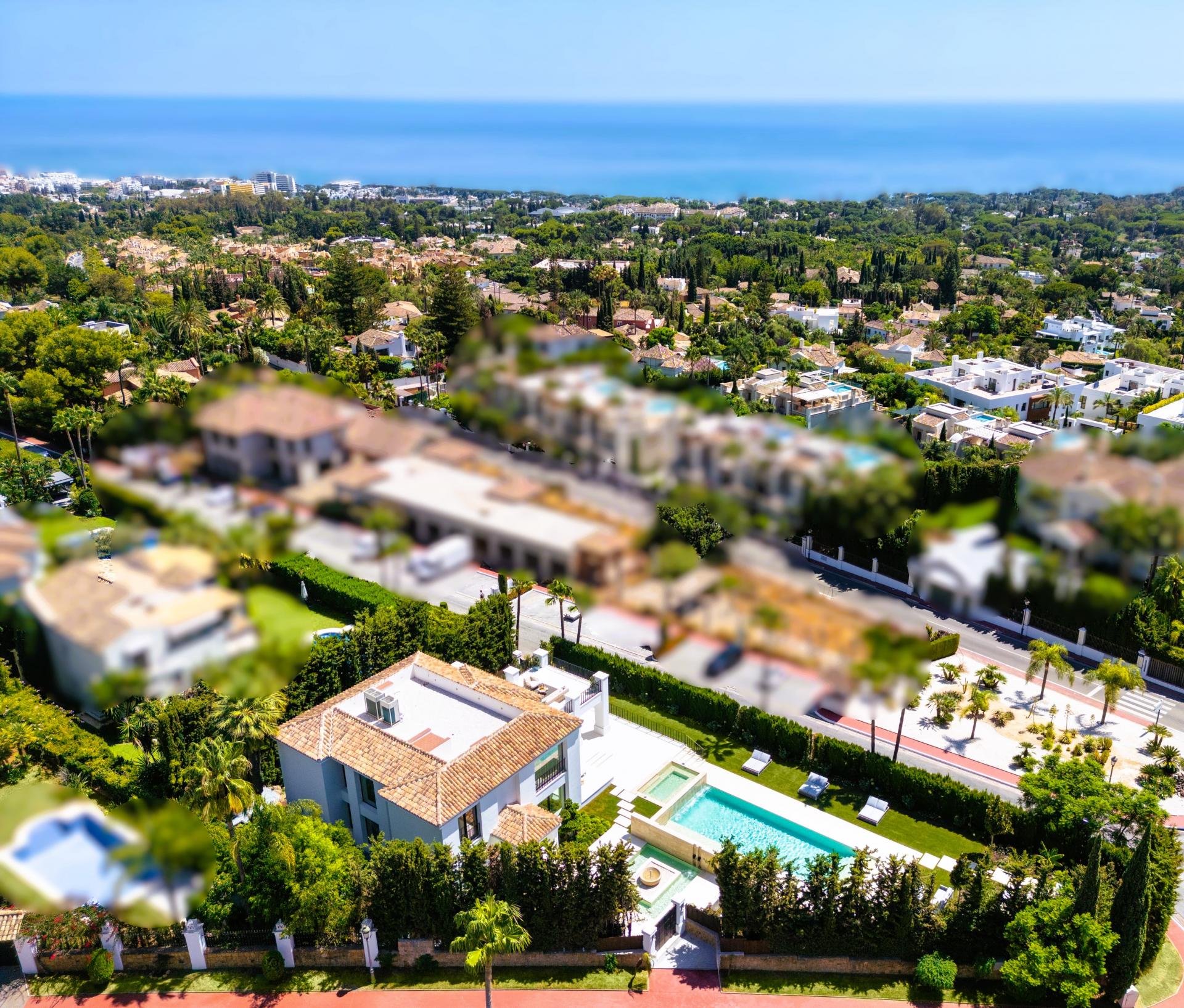 This luxurious 6-bedroomed villa, located in the prestigious area of Sierra Blanca, Marbella, offers an exceptional living experience, fully refurbished to the highest standards and sold fully furnished. The property boasts views of the Mediterranean Sea. Each of the six spacious bedrooms is elegantly designed with high-quality furnishings, ensuring comfort and style. The master bedroom, located on the first floor, features an ensuite bathroom and a private terrace with stunning sea views.