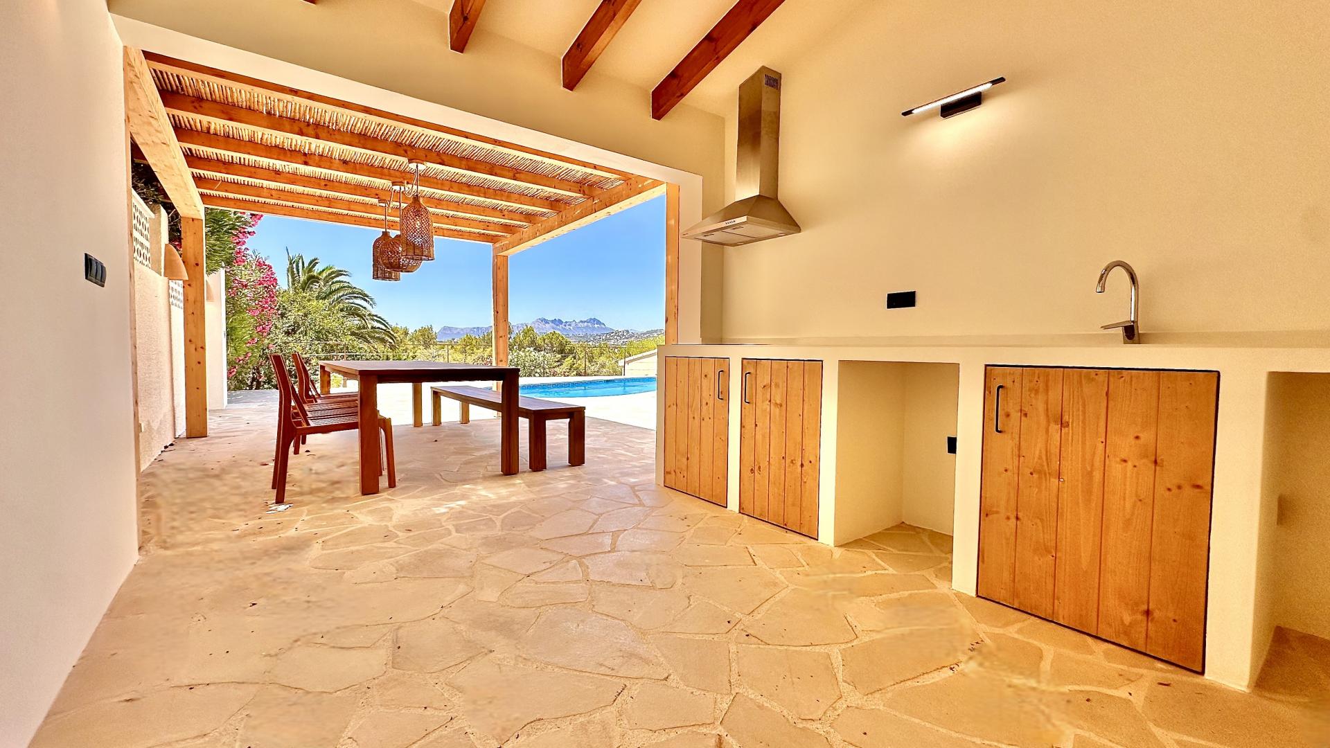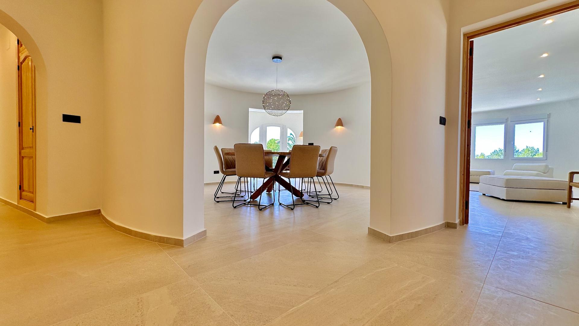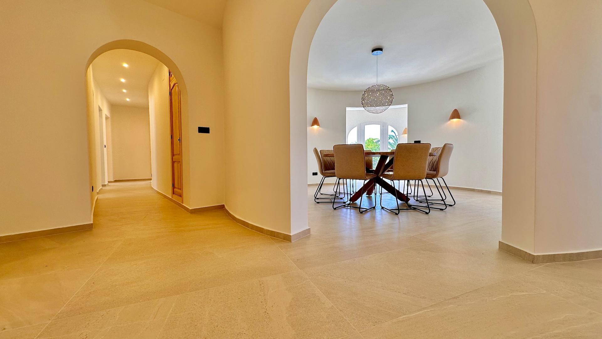 PROPERTY AT A GLANCE Nestled near the sought-after El Portet area of Moraira, this beautifully renovated Mediterranean-style villa combines modern amenities with timeless charm. Set on a south-facing plot of 821 m², the property offers views of the valley and the sea, just a short walk from Moraira’s town centre and beaches.