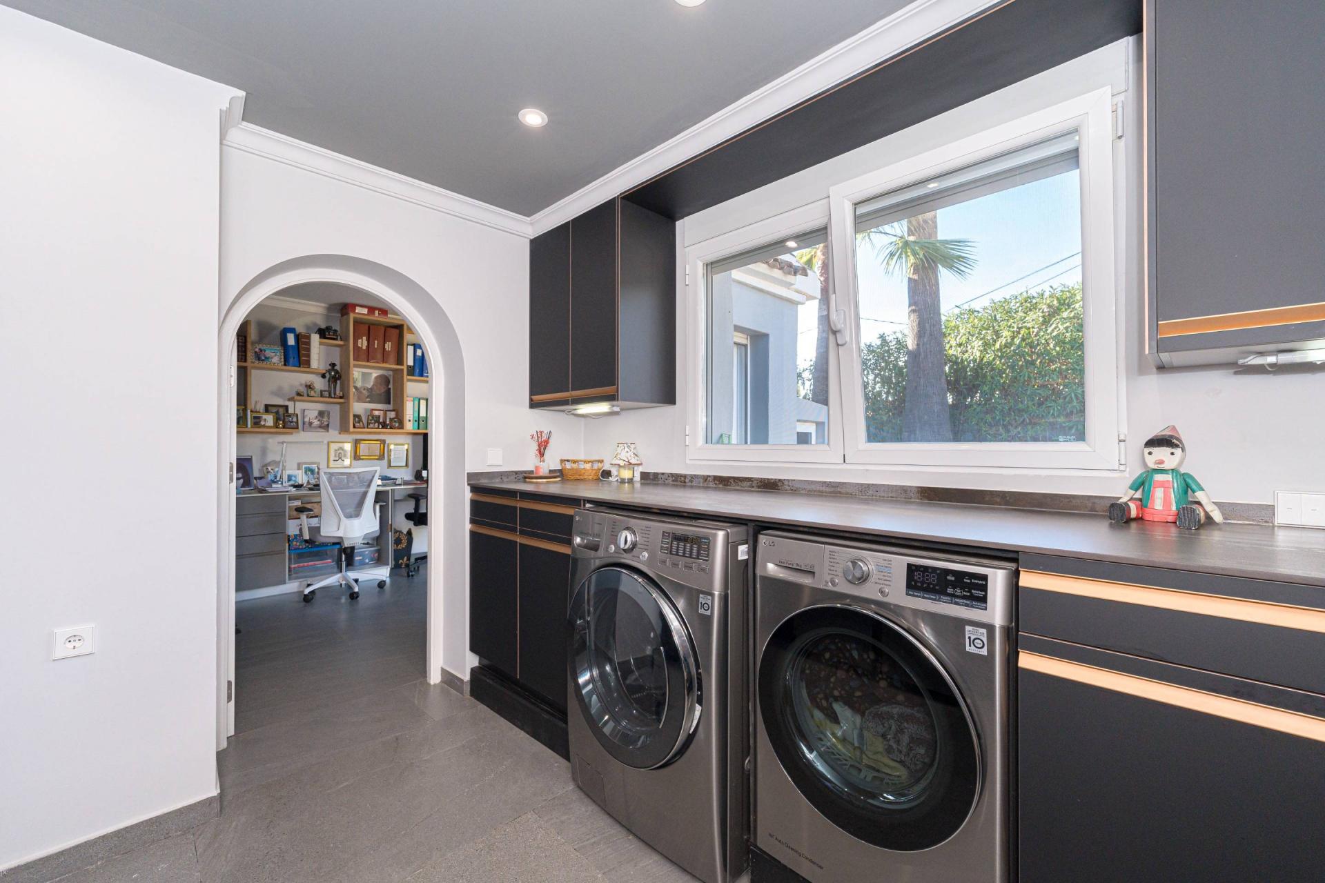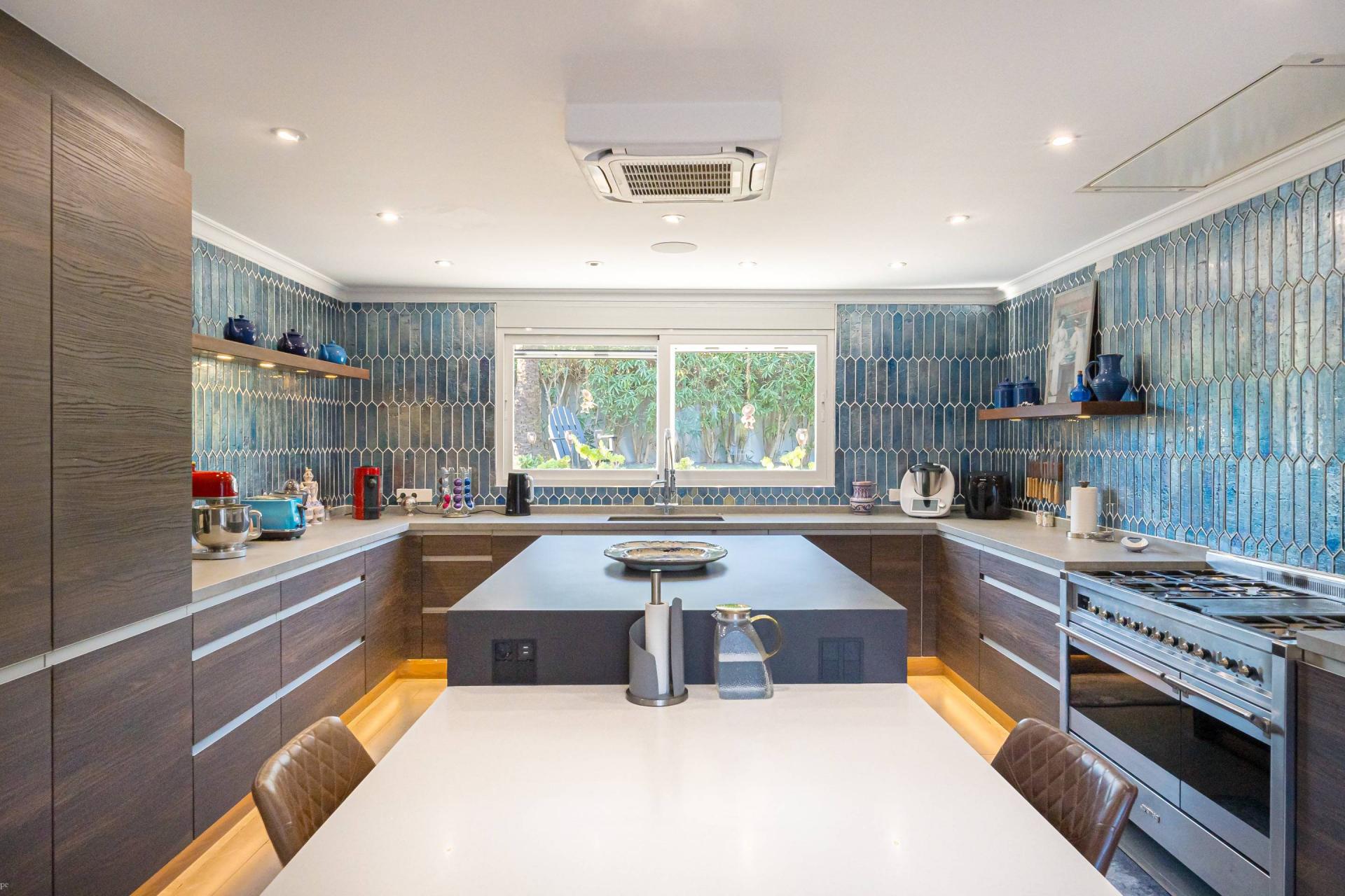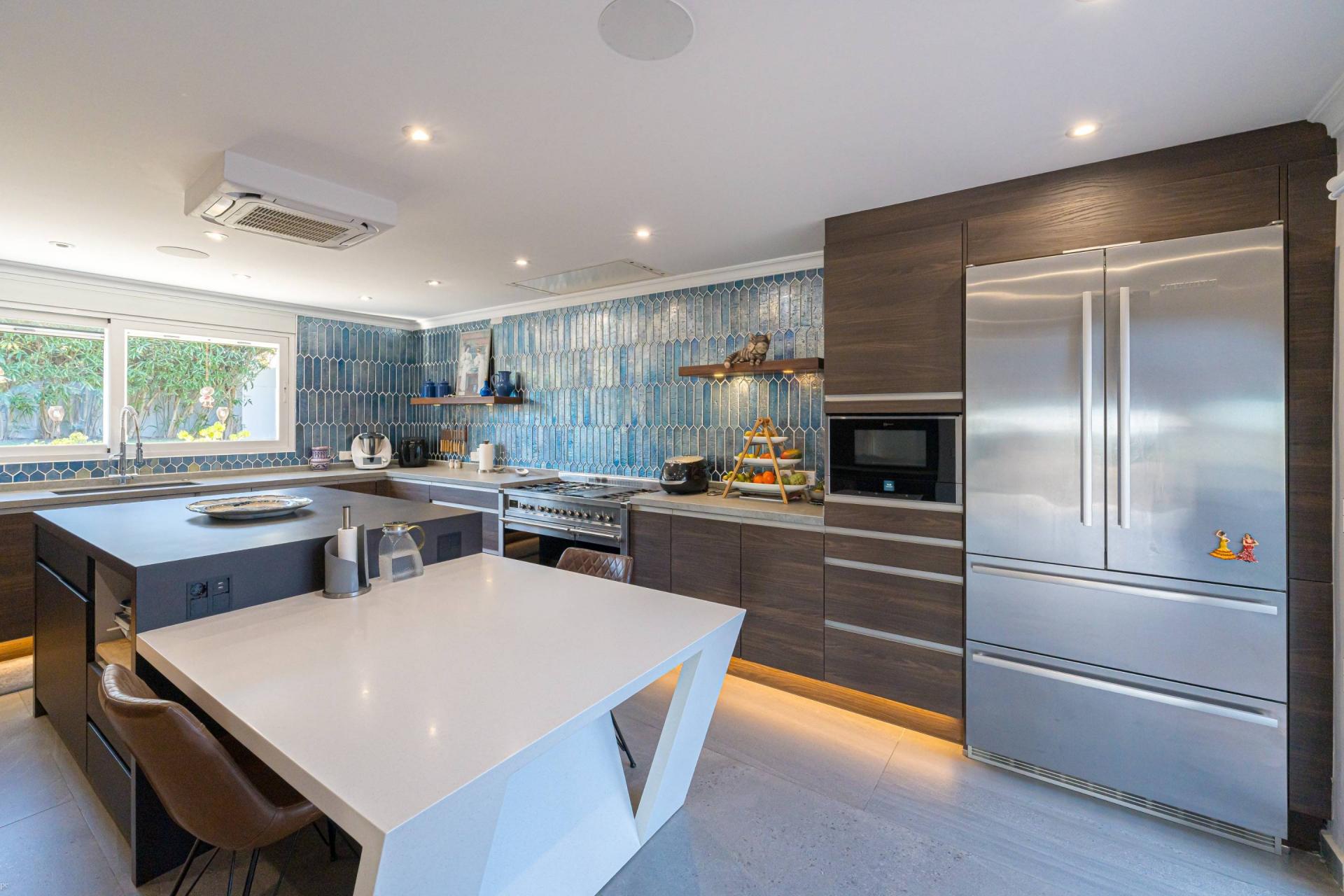 Exceptional Outdoor Living The exterior of this villa is just as impressive as its interiors, designed for both tranquil retreats and sophisticated entertaining. A magnificent 13x6 metre saltwater pool takes centre stage, surrounded by beautifully landscaped gardens and spacious terraces. The fully equipped summer kitchen, complete with a BBQ and bar area, makes al fresco dining a true pleasure. The Mediterranean landscaping, enhanced by an automatic irrigation system, provides a serene and picturesque backdrop to this elegant home.