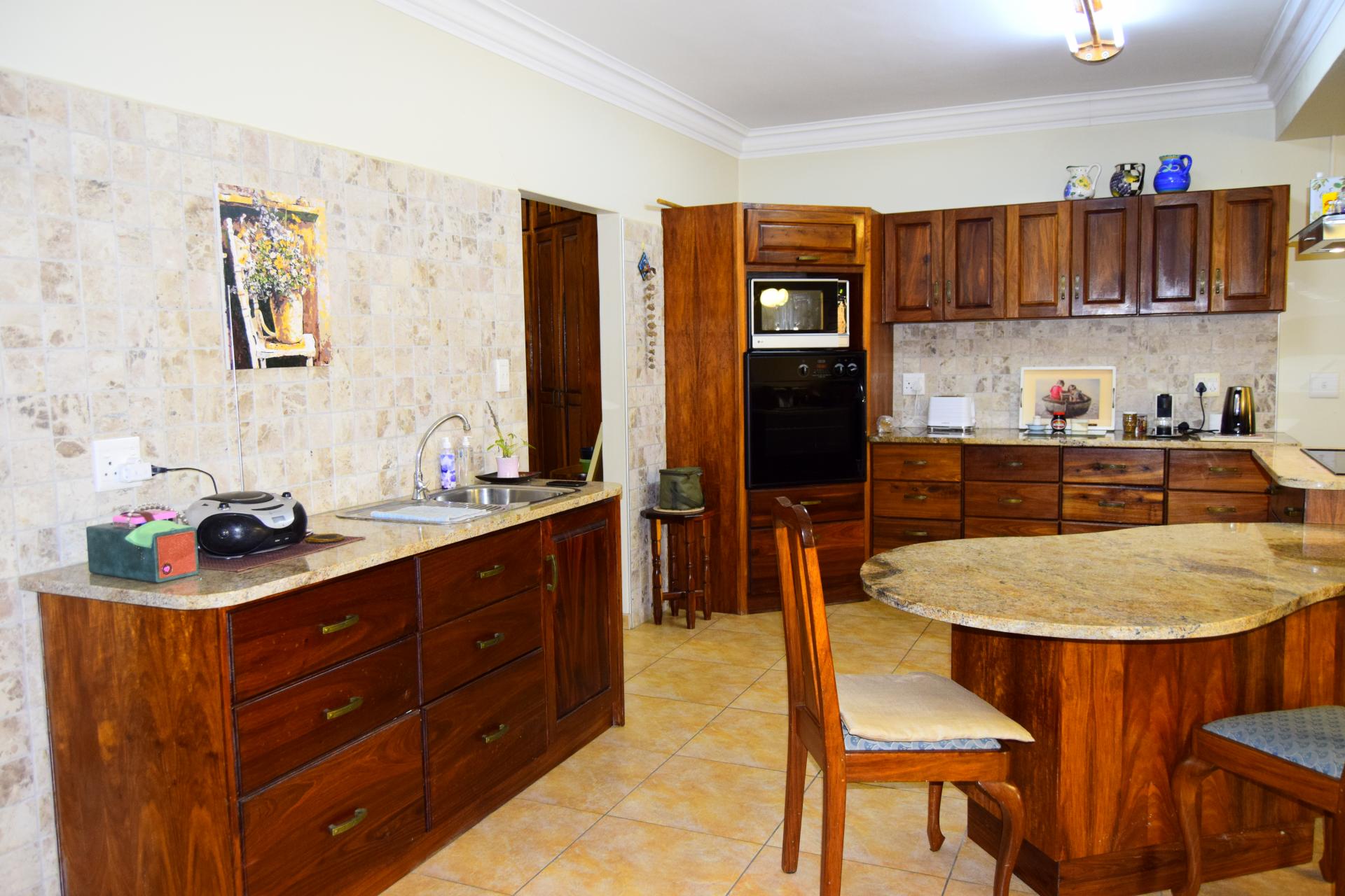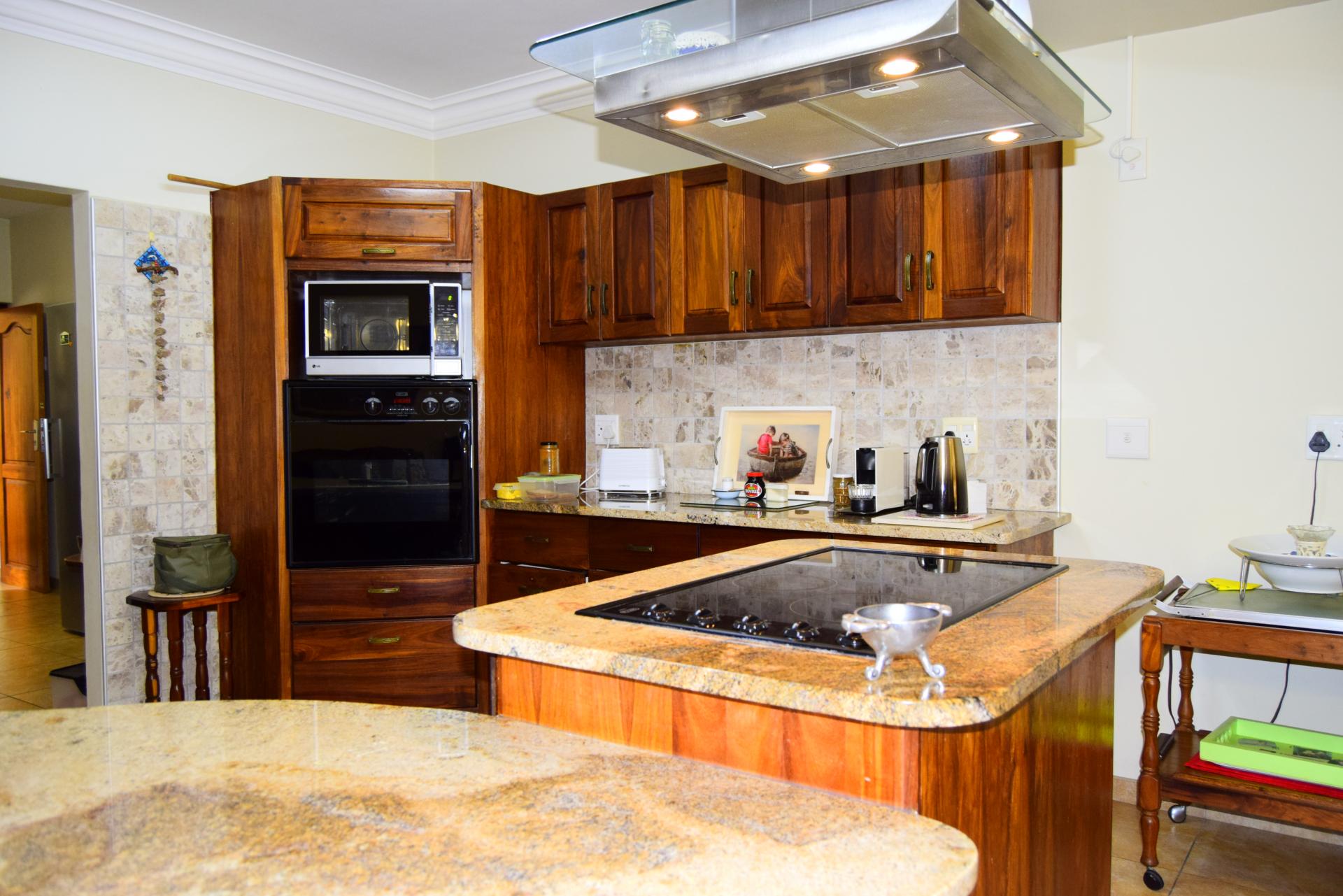 Kitchen: Chef's dream with marble counter-tops and oak cabinetry.