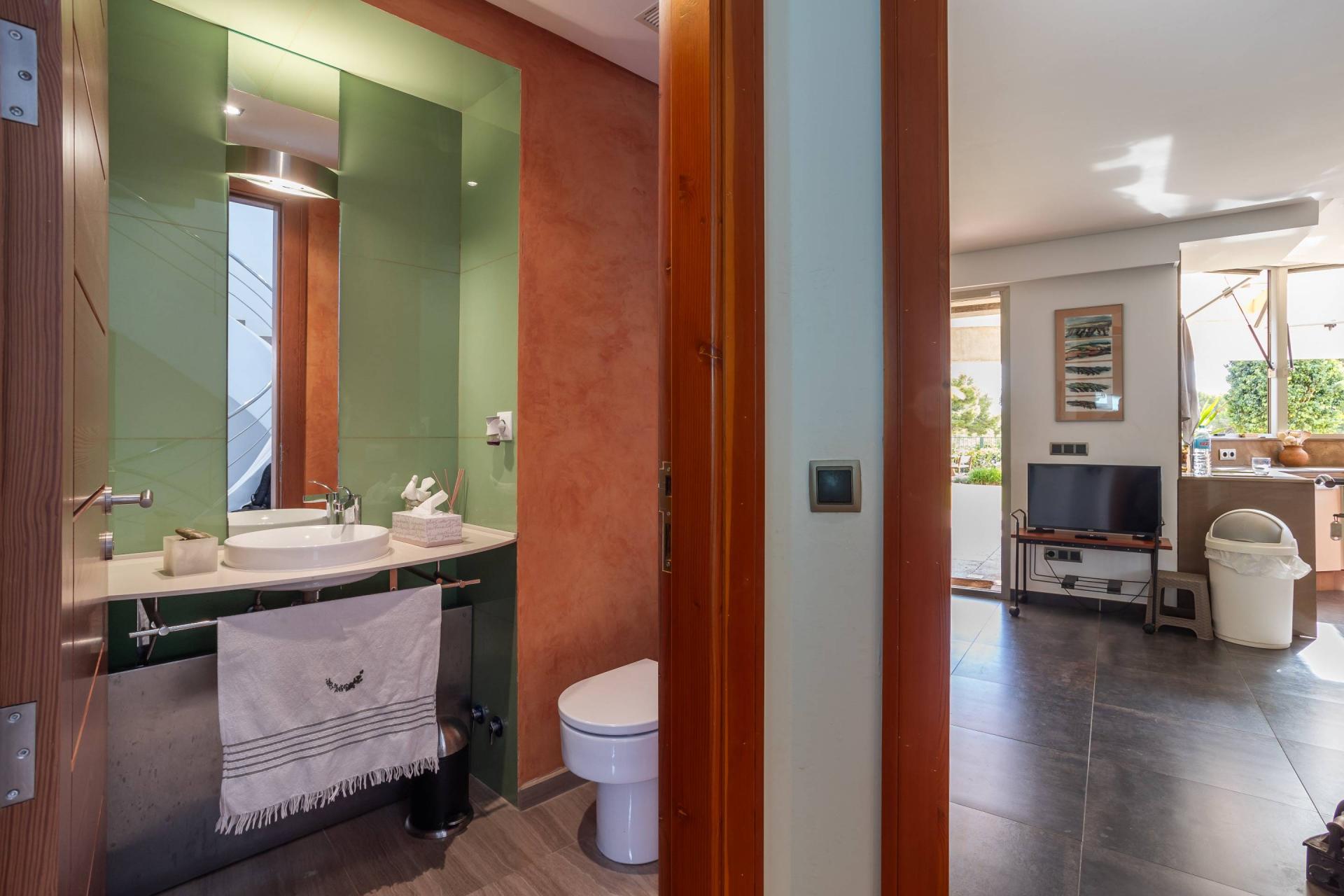 The upper floor hosts three ensuite double bedrooms, each opening onto private terraces. The master suite, with hydromassage bathtub, dressing room and terrace, offers a private sanctuary with sea views.