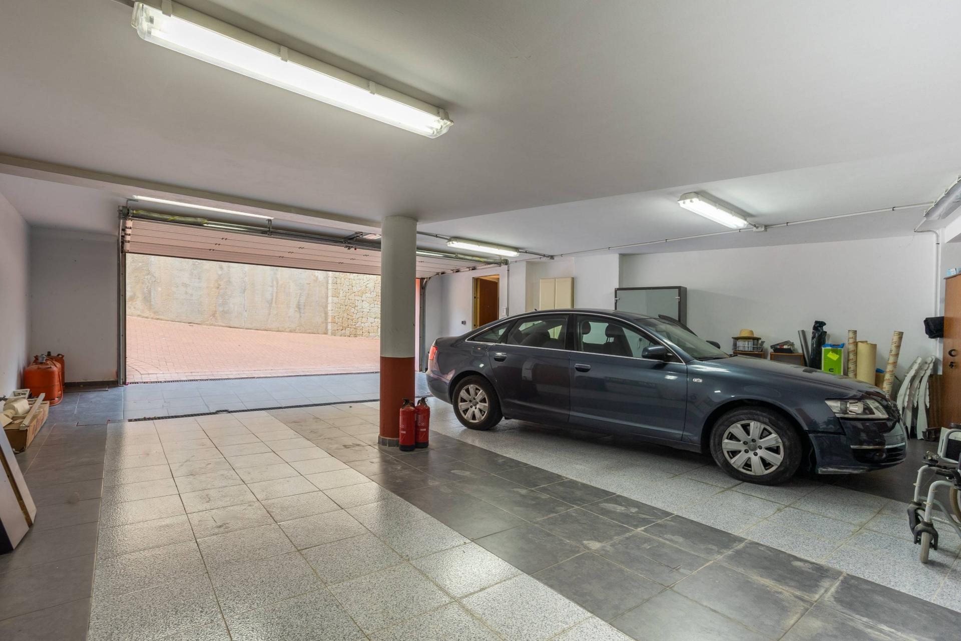 The lower level features a 75 m² closed garage for multiple vehicles, generous storage, and an independent apartment with living room, two bedrooms, bathroom, covered terrace and kitchen pre-installation—perfect for guests or staff.