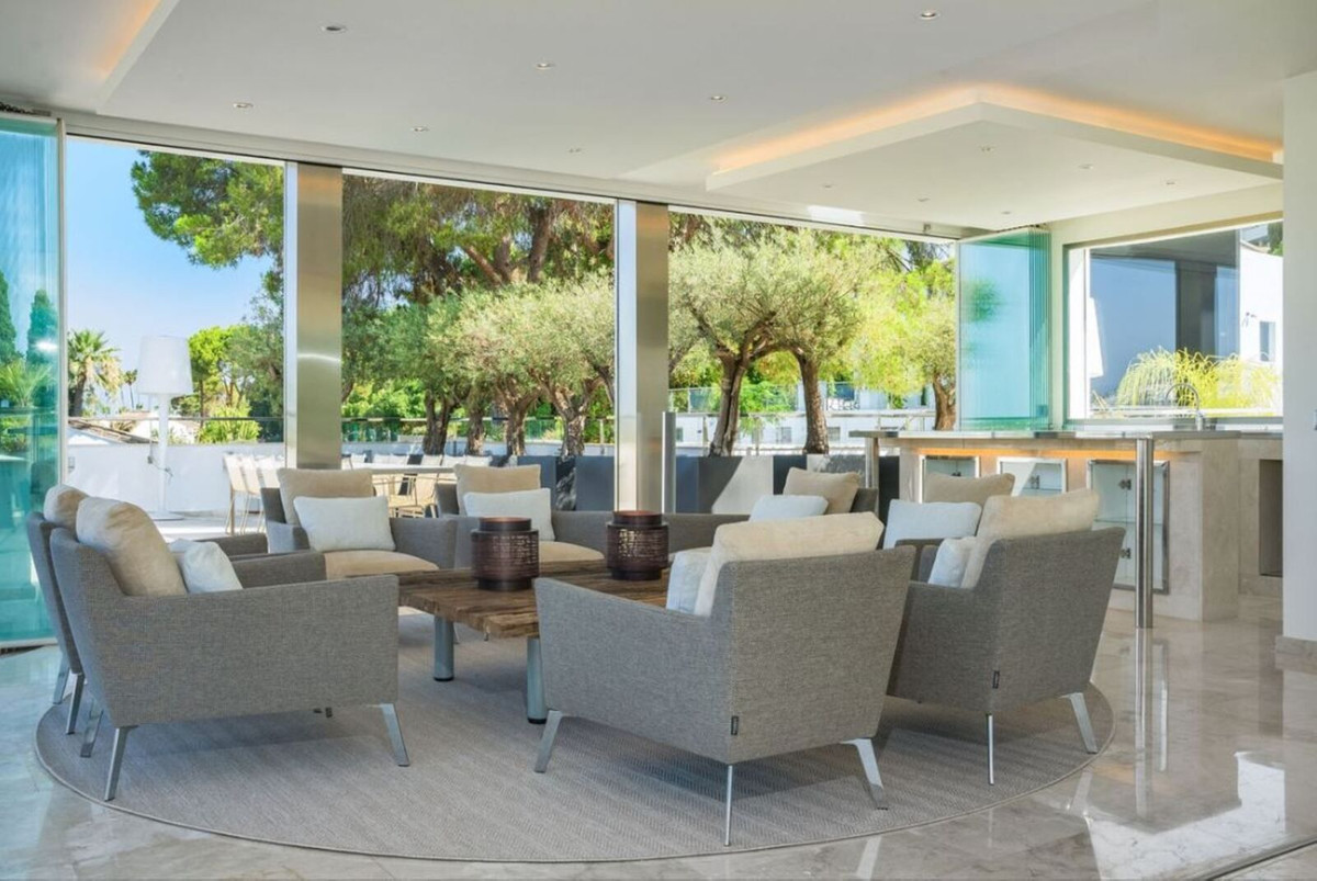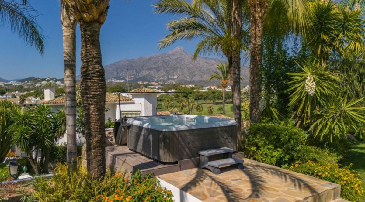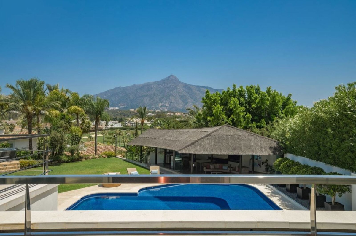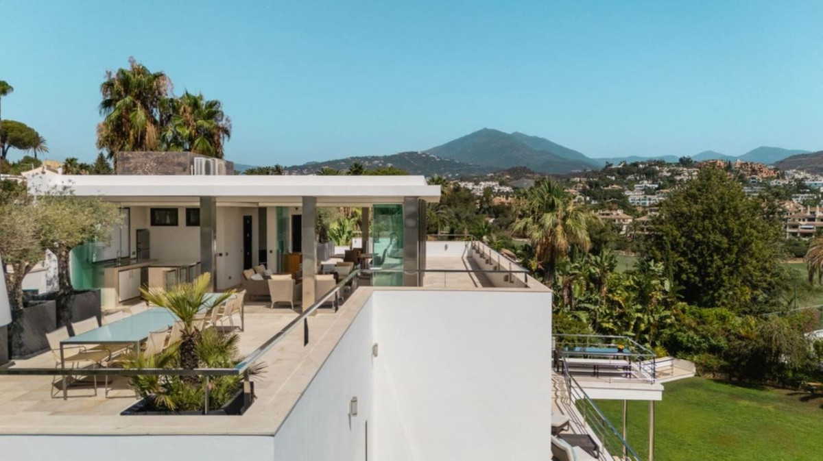 Fantastic villa for sale overlooking Las Brisas and the iconic La Concha mountain. This is one of the largest properties built in Nueva Andalucia and comprises: Ground floor: Spacious entrance hall leading to a large, fully fitted kitchen and dining room with access to a dining terrace and views to Las Brisas golf. Adjoining utility room with stairs to staff apartment in the basement. Spacious living room with fireplace and access to a spacious terrace overlooking the garden, pool and las brisas golf. Master bedroom with separate dressing room and bathroom. A glass lift from the ground floor connects to the upper and lower floors. Upper floor: Reached by the glass lift, the upper floor features a huge additional living and dining area with a bar incorporated and an enormous lounge terrace. Perfect for entertaining or for use as an office. Lower Floor: Reached by stairs or the lift, the lower floor comprises a cinema room plus 4 very generous bedroom suites, all with access to the garden and one with its own living room. Also on this floor is a separate gym. Basement level: Featuring a state-of-the-art bodega with a dining area, two staff apartments, utility room, storage room and garage for at least 6 cars, Garden level: The garden has a large flat area of lawn, a large swimming pool and chiringuito with kitchen and dining room.