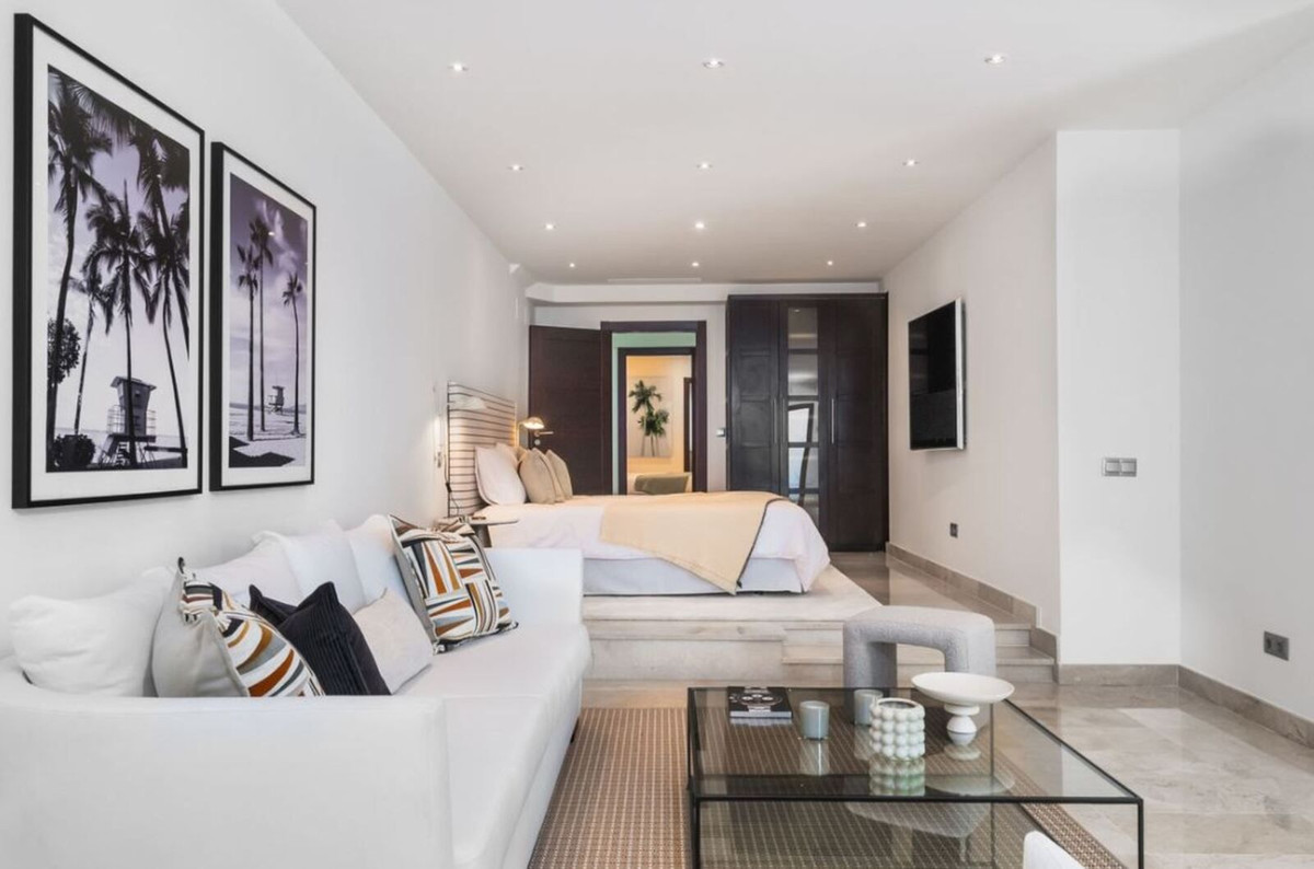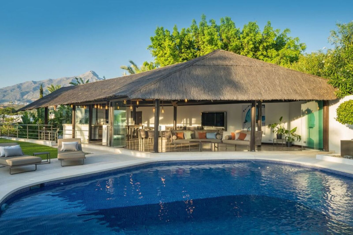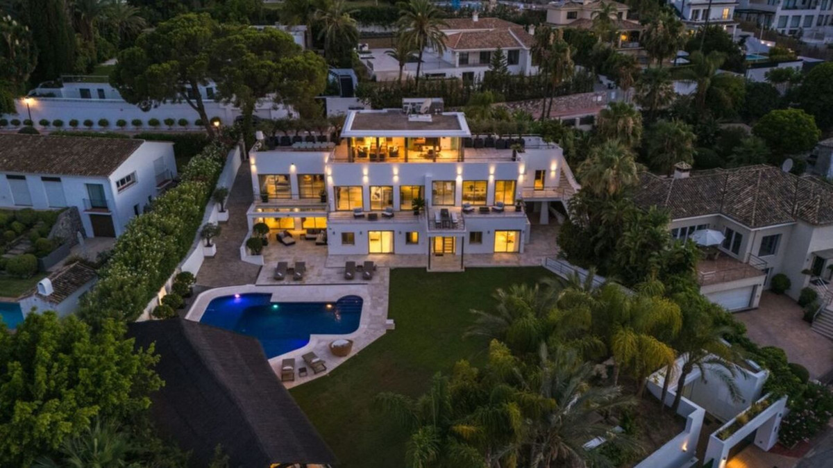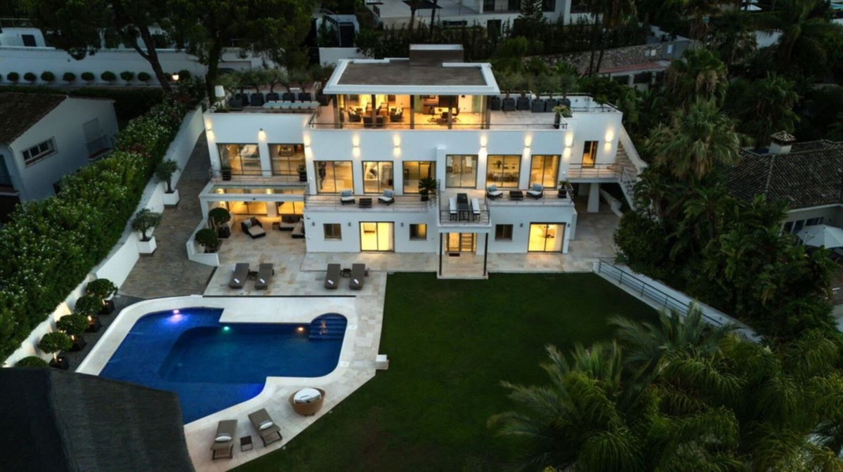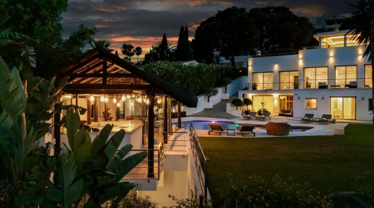 Fantastic villa for sale overlooking Las Brisas and the iconic La Concha mountain. This is one of the largest properties built in Nueva Andalucia and comprises: Ground floor: Spacious entrance hall leading to a large, fully fitted kitchen and dining room with access to a dining terrace and views to Las Brisas golf. Adjoining utility room with stairs to staff apartment in the basement. Spacious living room with fireplace and access to a spacious terrace overlooking the garden, pool and las brisas golf. Master bedroom with separate dressing room and bathroom. A glass lift from the ground floor connects to the upper and lower floors. Upper floor: Reached by the glass lift, the upper floor features a huge additional living and dining area with a bar incorporated and an enormous lounge terrace. Perfect for entertaining or for use as an office. Lower Floor: Reached by stairs or the lift, the lower floor comprises a cinema room plus 4 very generous bedroom suites, all with access to the garden and one with its own living room. Also on this floor is a separate gym. Basement level: Featuring a state-of-the-art bodega with a dining area, two staff apartments, utility room, storage room and garage for at least 6 cars, Garden level: The garden has a large flat area of lawn, a large swimming pool and chiringuito with kitchen and dining room.