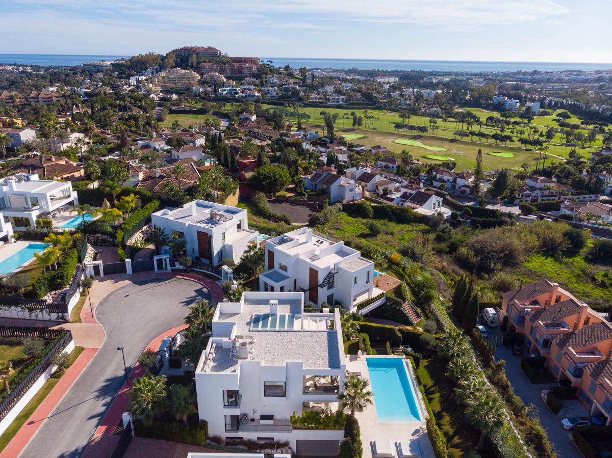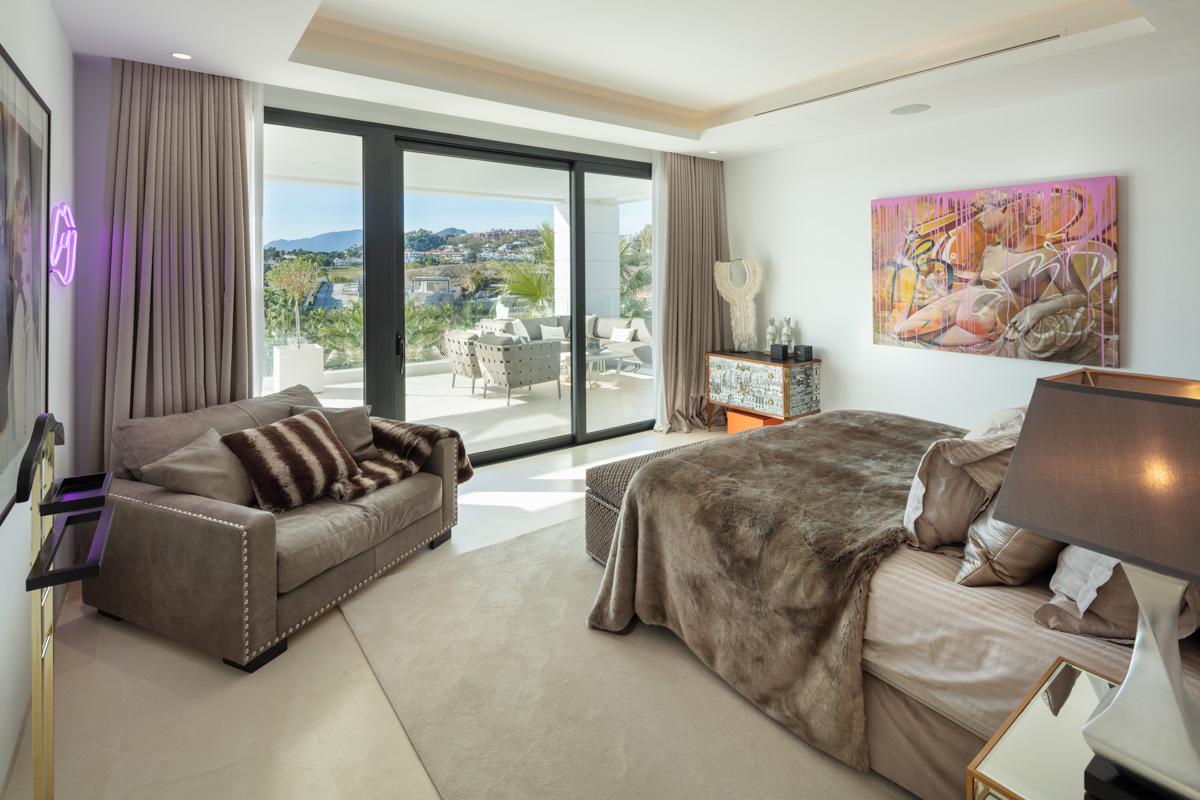 Immerse yourself in the ultimate Marbella lifestyle with this exquisite villa, perfectly situated in Nueva Andalucía’s sought-after Golf Valley. Perched on an elevated plot, the property offers sweeping views of verdant golf courses, the shimmering Mediterranean Sea, and the majestic Sierra Blanca mountains. Set within an exclusive, gated community of just 18 luxury residences, this villa represents the pinnacle of sophistication and modern living.