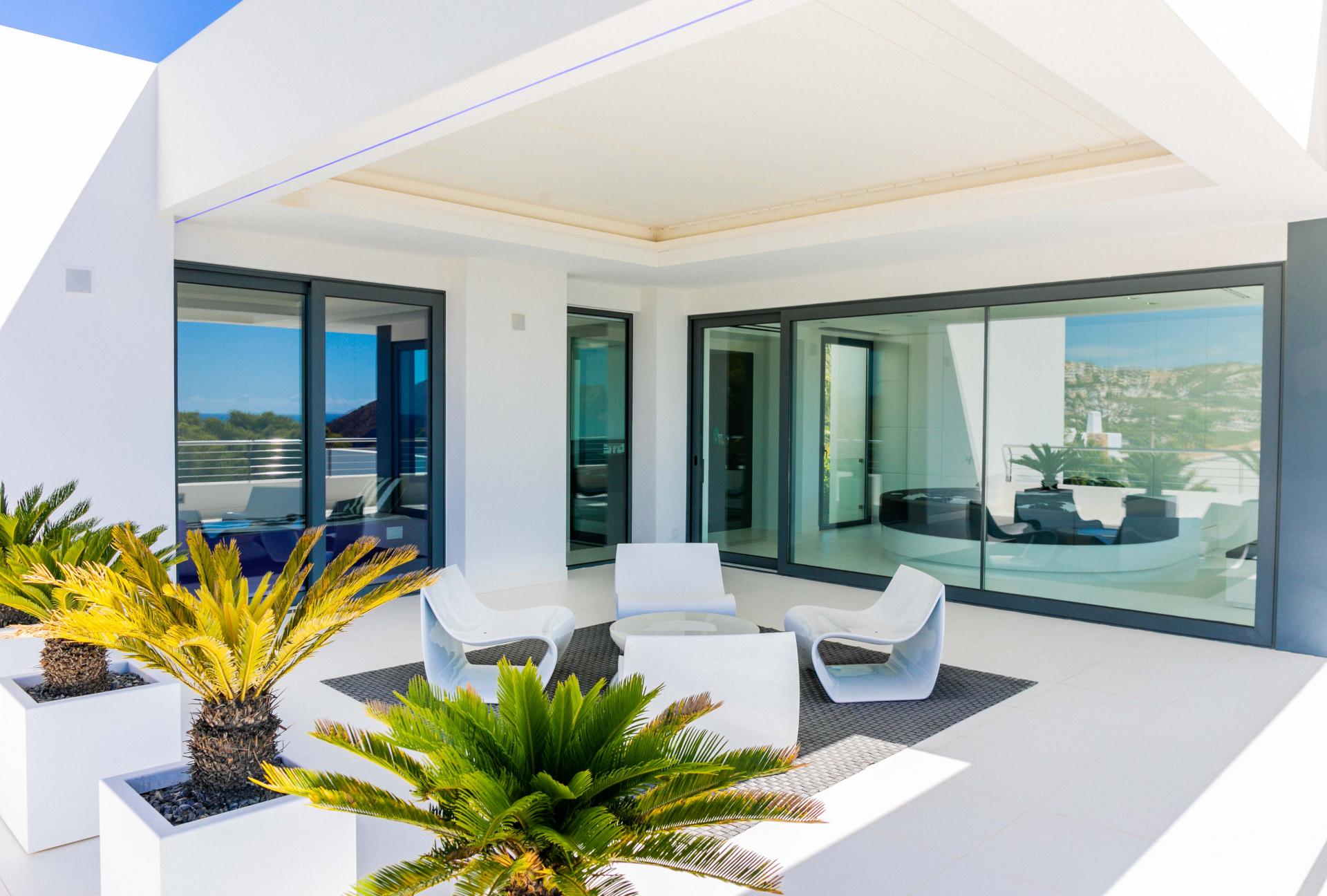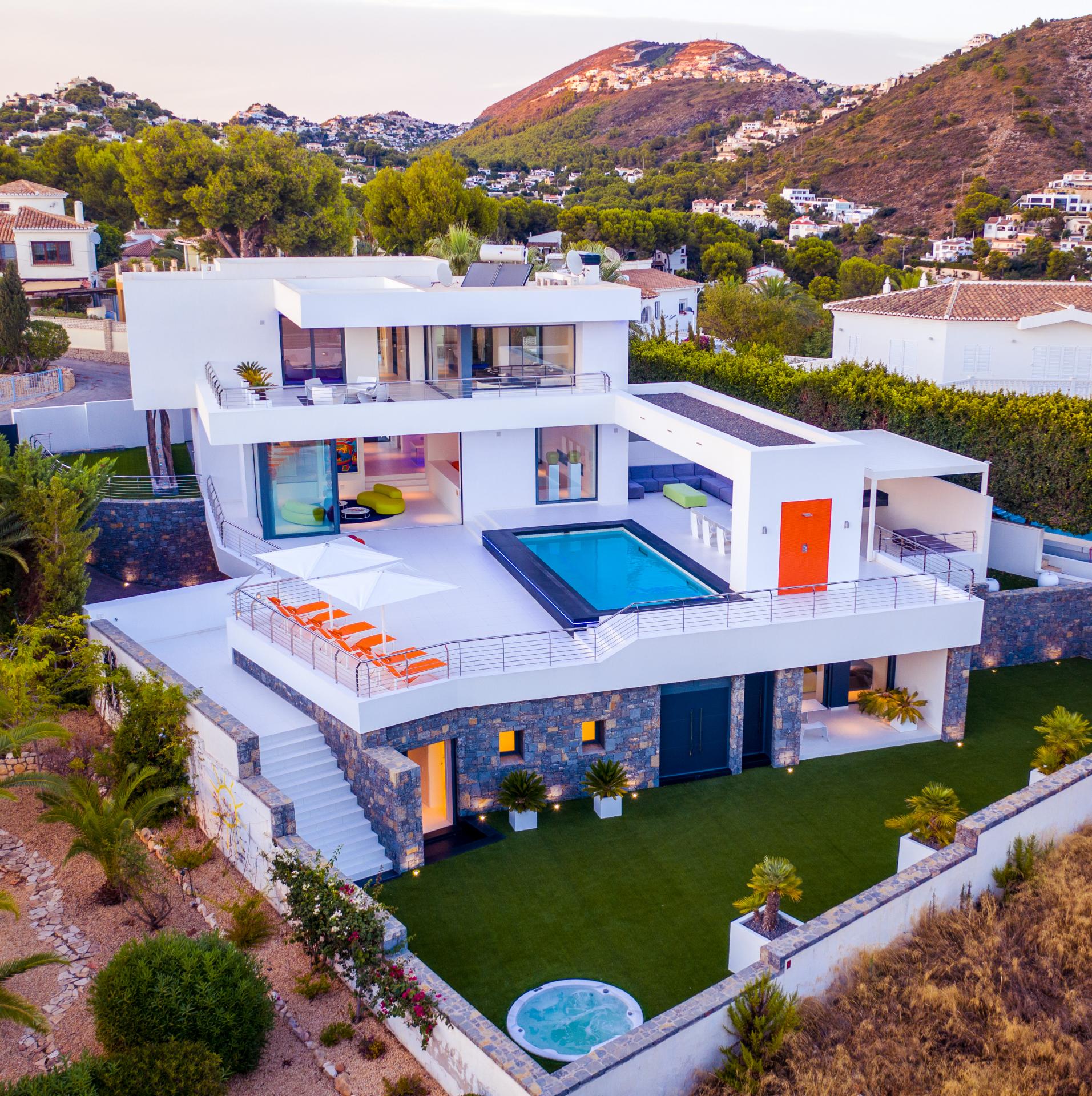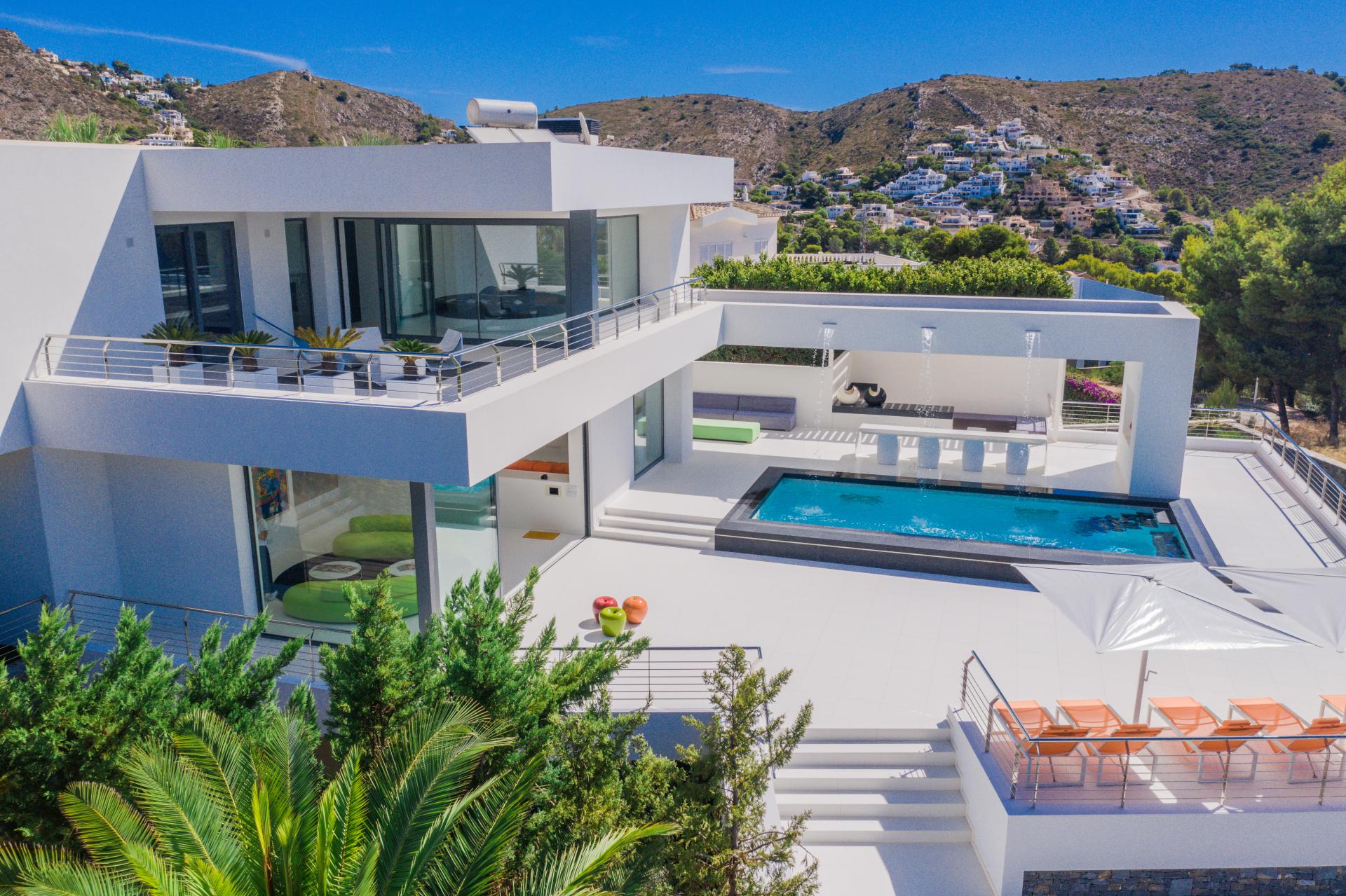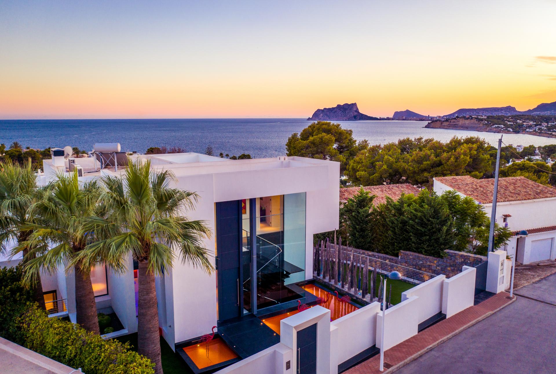 PROPERTY AT A GLANCE This is a stunning and unique property to truly inspire you. This amazing modern Luxury Property is situated in a well known and sought-after residential area in Moraira and features, due to its fabulous location, breath-taking panoramic views over the Mediterranean Sea and the landscape. The architecture is stylish, sleek with an interior that is modern and elegant with an open concept floor plan offering a perfect balance of design symmetry and an infinite feeling of space with large glass expanses that welcome in plenty of natural light. At night the property takes on a completely difference ambience with the latest in creative LED lighting both inside and outside that will certainly wow owners and guests alike.
