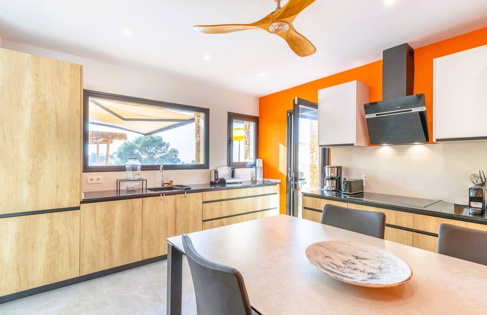 For relaxation, the terrace features cosy lounge areas shaded by pergolas, as well as stylish sun lounger areas to soak up the panoramic scenery. Whether hosting a sunset cocktail party or enjoying a quiet morning coffee, the breath-taking views of the Mediterranean coastline and lush surroundings provide the perfect backdrop.