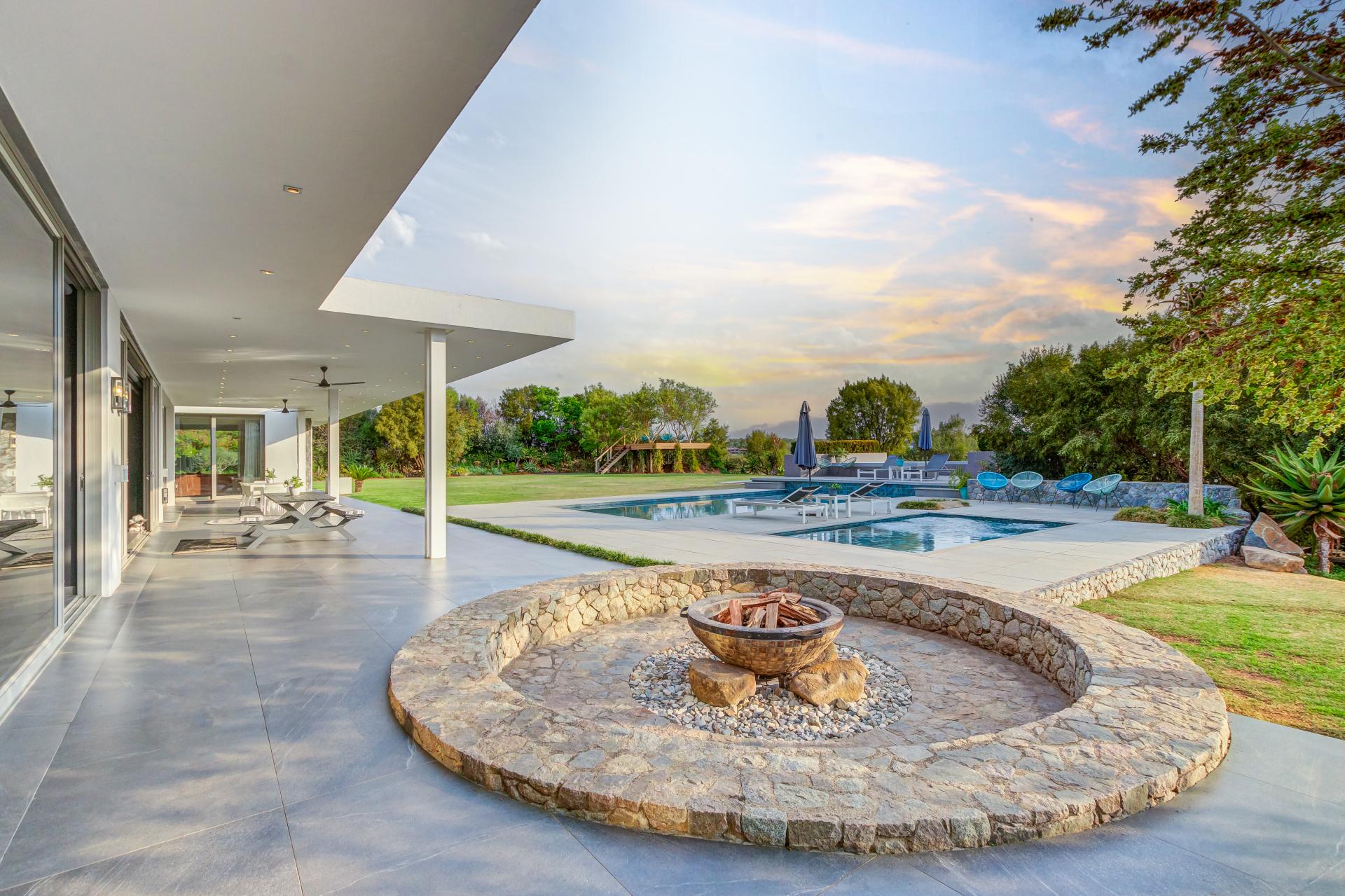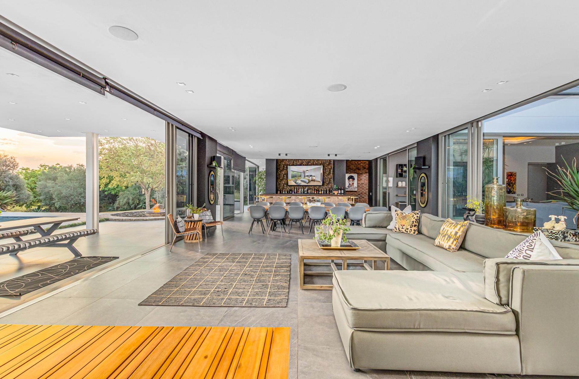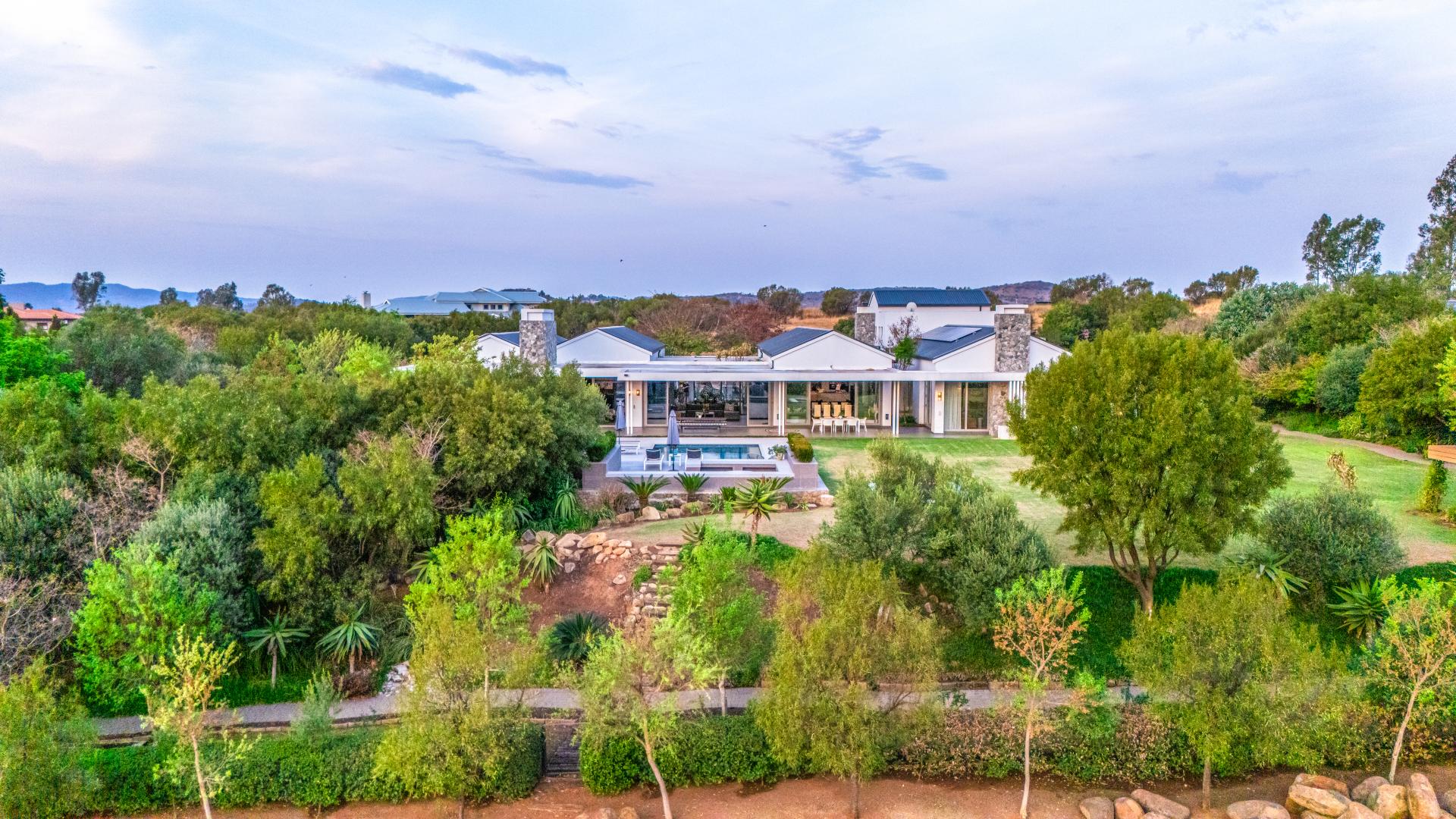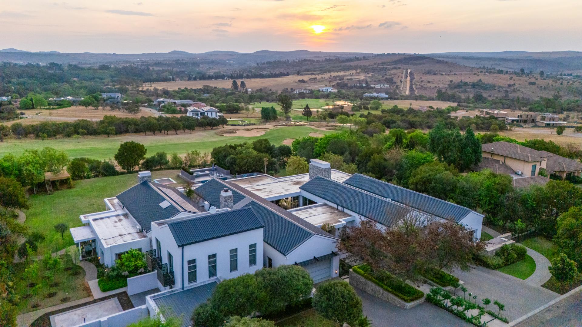 Nestled in the stunning setting of Blair Atholl Golf & Equestrian Estate, Fine & Country presents an exquisite 1320sqm fairway frontage property to our Exclusive Mandate collection with sunset views and rolling Magaliesburg hills offering a balanced family lifestyle with sophistication and tranquillity. Boasting direct access to the championship golf course via connected paths on the fenced property, the estate offers high security luxury estate living in a low density setting where no fence is shared with neighbours and nature surrounds homes creating a natural sense of privacy. The home is unique with its multiple living spaces in the landscaped gardens from the single storey main residence to two cottages and endless possibilities for entertaining from the lookout deck, bar, heated spa pool, swimming pool, two fire pits, games room and massive entertainer’s patio.