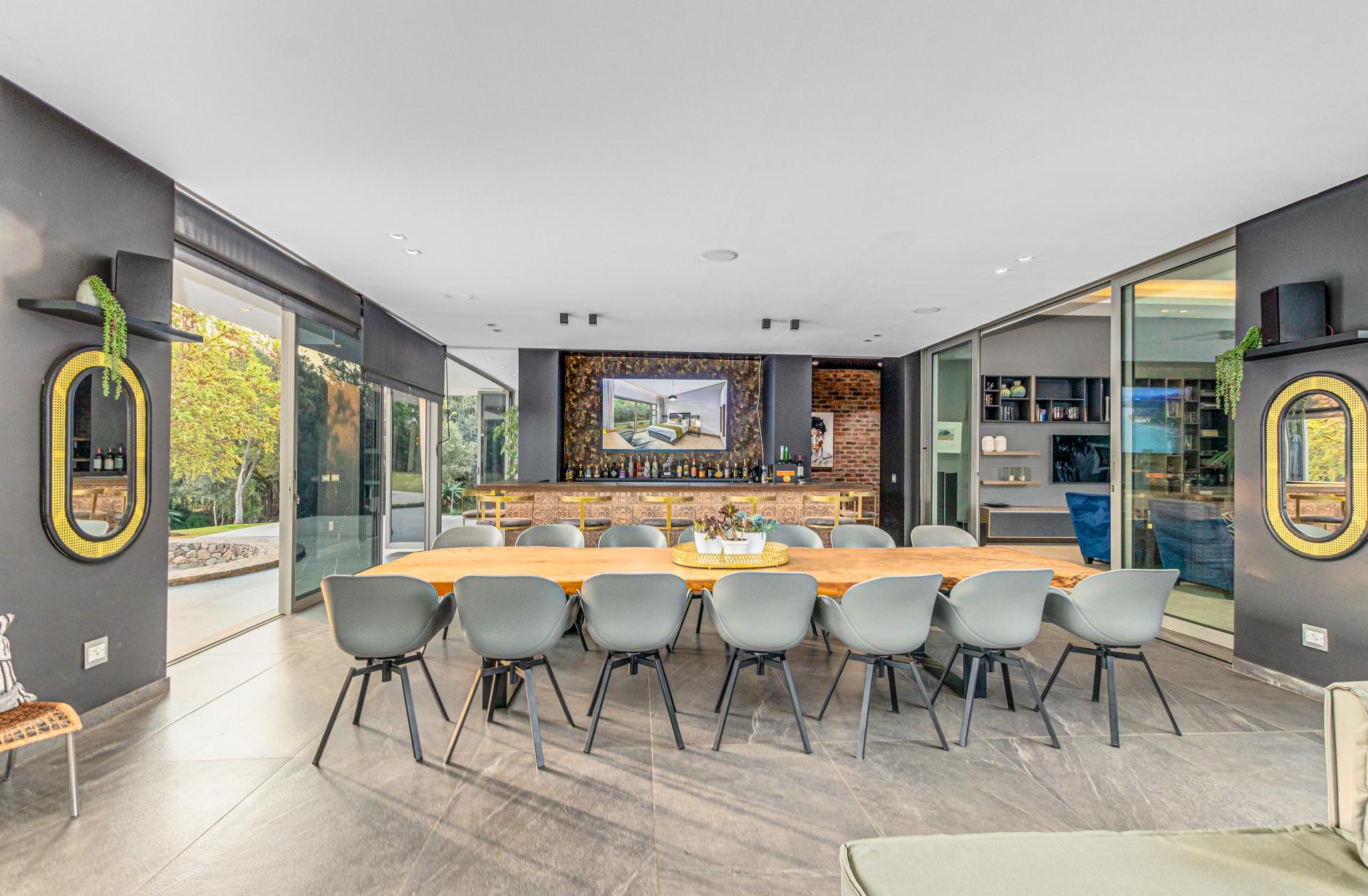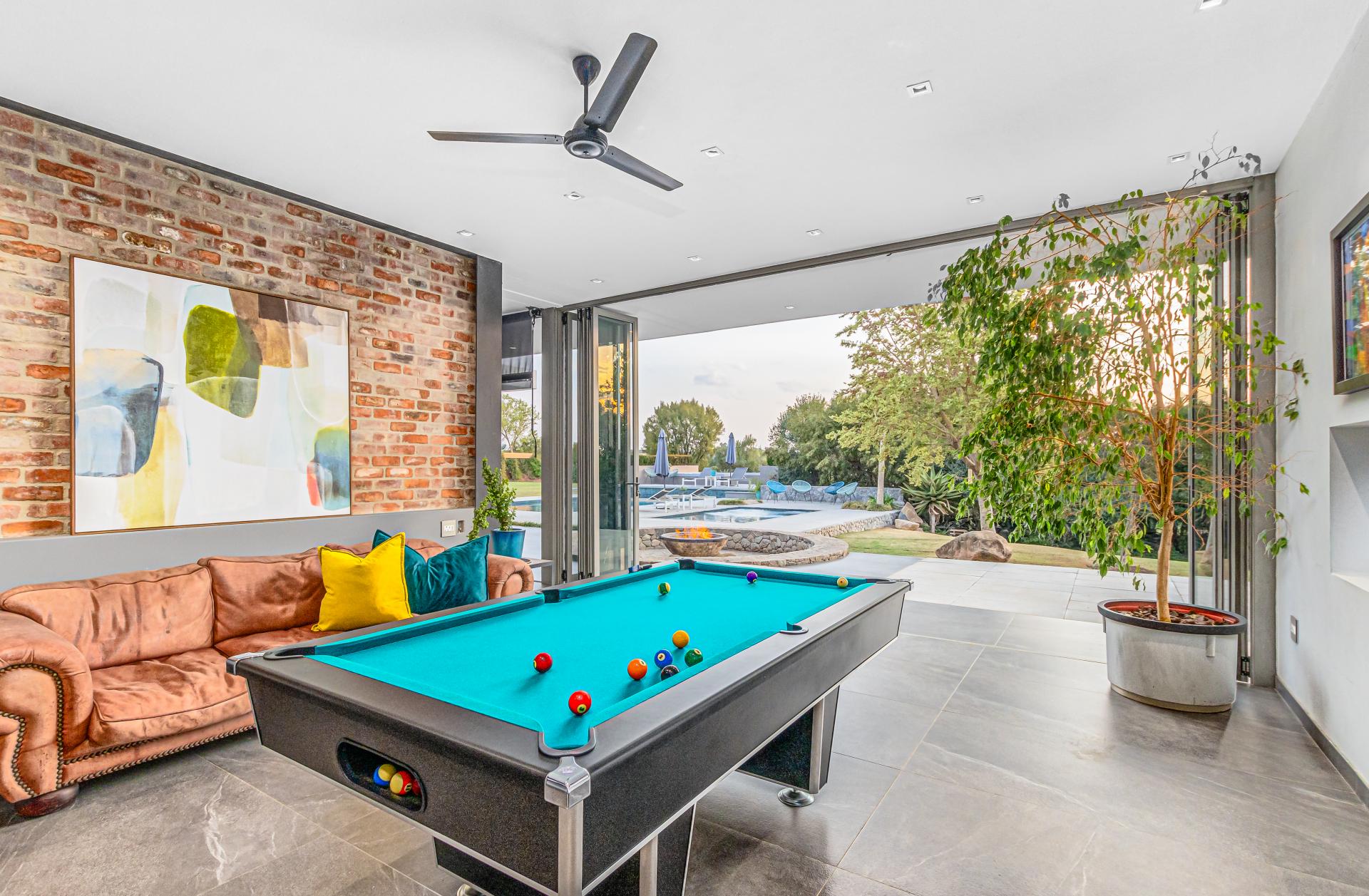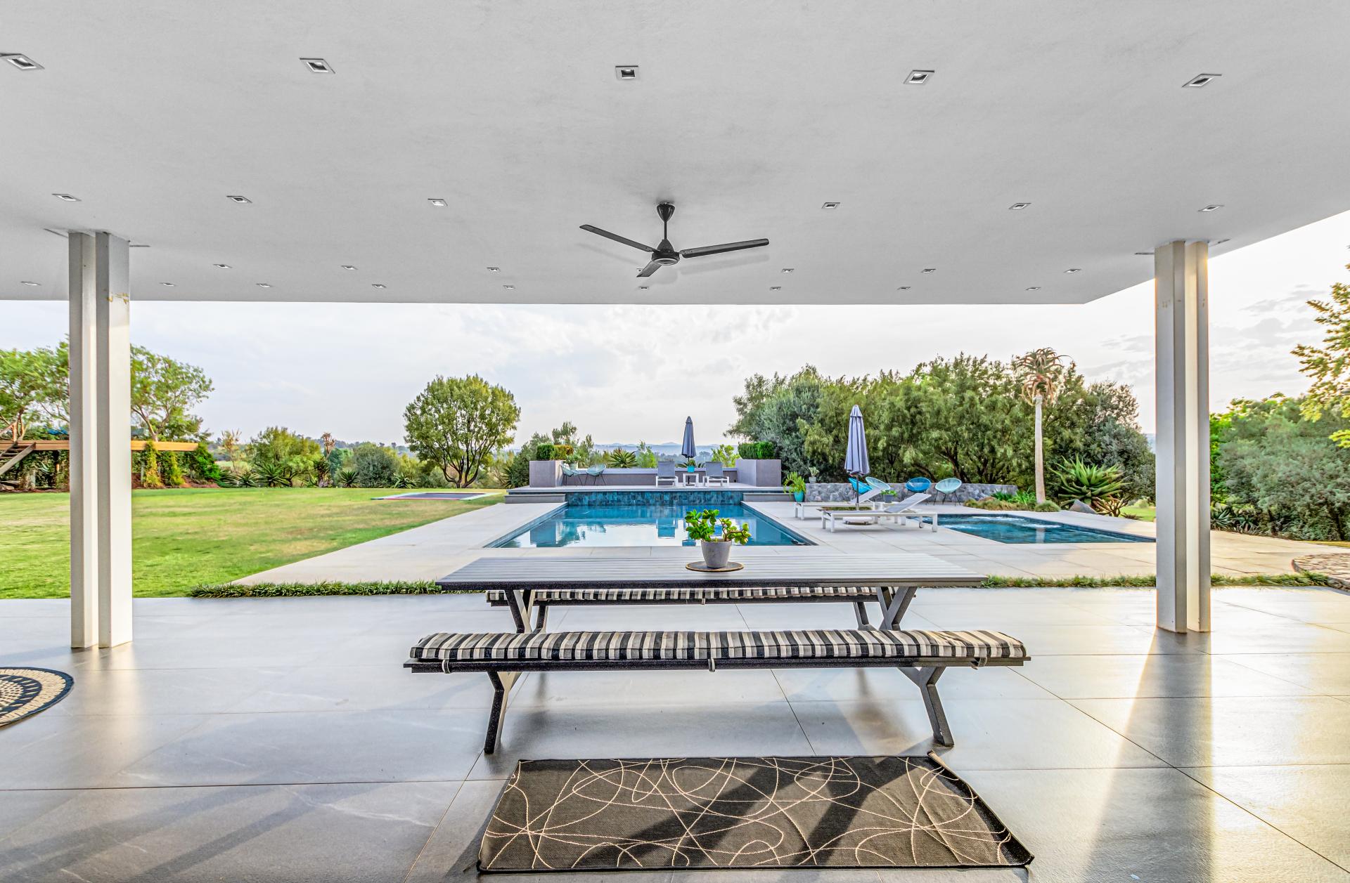 Nestled in the stunning setting of Blair Atholl Golf & Equestrian Estate, Fine & Country presents an exquisite 1320sqm fairway frontage property to our Exclusive Mandate collection with sunset views and rolling Magaliesburg hills offering a balanced family lifestyle with sophistication and tranquillity. Boasting direct access to the championship golf course via connected paths on the fenced property, the estate offers high security luxury estate living in a low density setting where no fence is shared with neighbours and nature surrounds homes creating a natural sense of privacy. The home is unique with its multiple living spaces in the landscaped gardens from the single storey main residence to two cottages and endless possibilities for entertaining from the lookout deck, bar, heated spa pool, swimming pool, two fire pits, games room and massive entertainer’s patio.