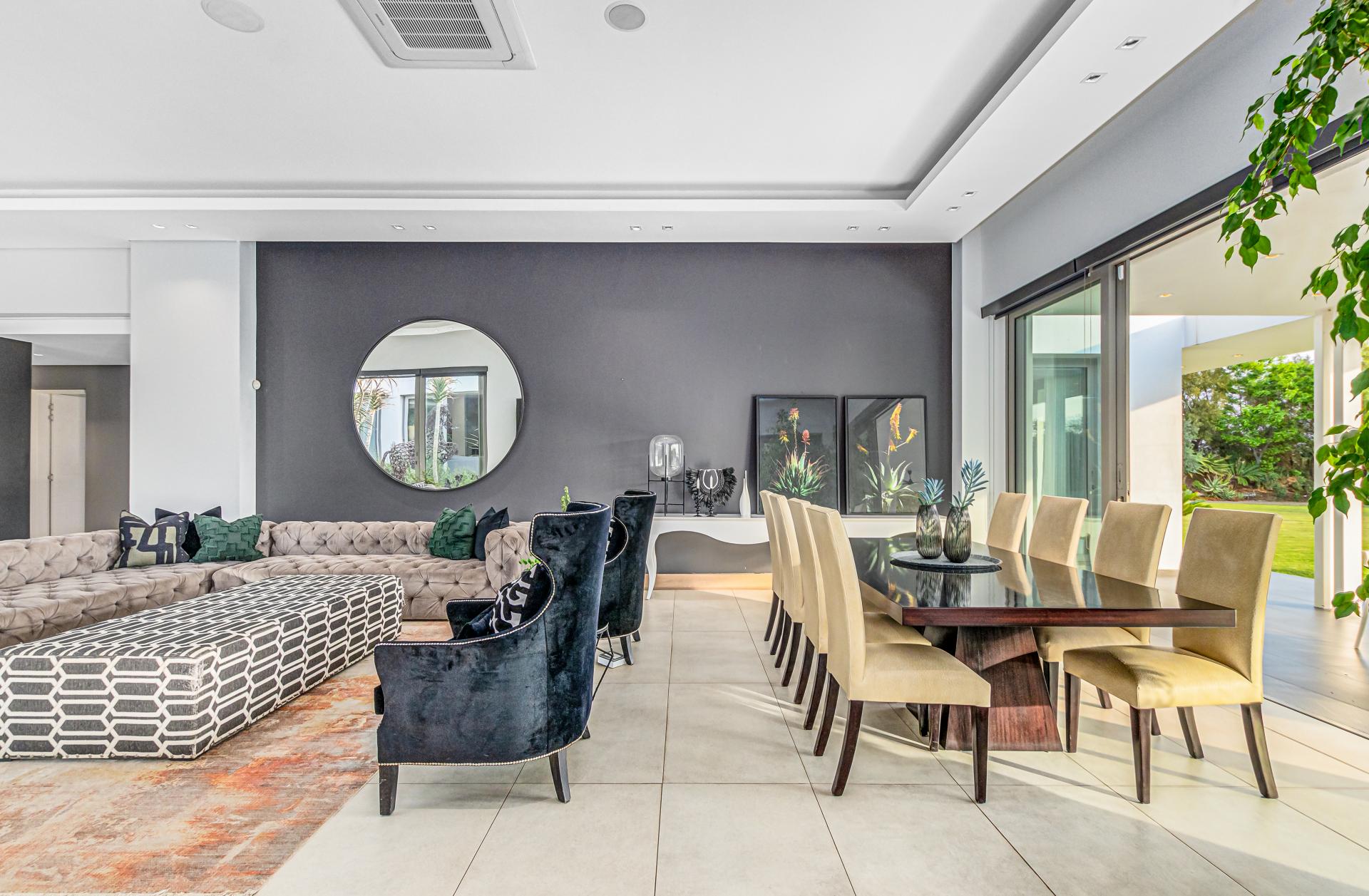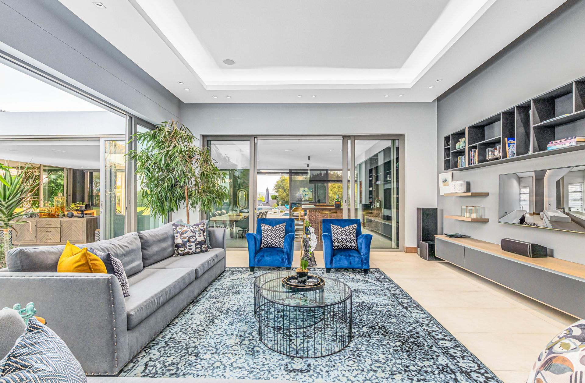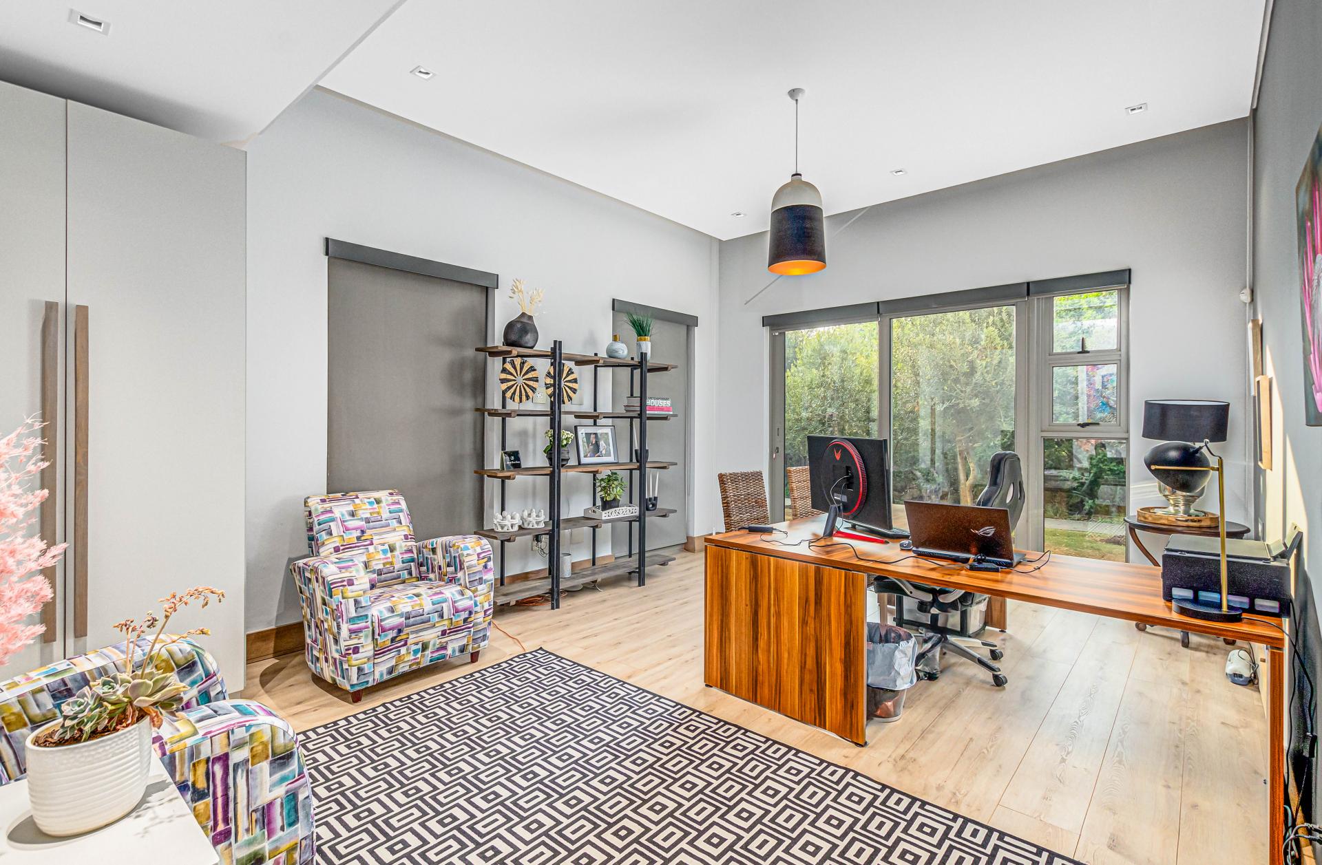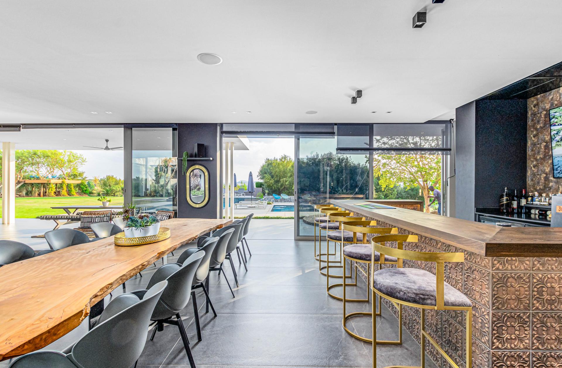 Nestled in the stunning setting of Blair Atholl Golf & Equestrian Estate, Fine & Country presents an exquisite 1320sqm fairway frontage property to our Exclusive Mandate collection with sunset views and rolling Magaliesburg hills offering a balanced family lifestyle with sophistication and tranquillity. Boasting direct access to the championship golf course via connected paths on the fenced property, the estate offers high security luxury estate living in a low density setting where no fence is shared with neighbours and nature surrounds homes creating a natural sense of privacy. The home is unique with its multiple living spaces in the landscaped gardens from the single storey main residence to two cottages and endless possibilities for entertaining from the lookout deck, bar, heated spa pool, swimming pool, two fire pits, games room and massive entertainer’s patio.