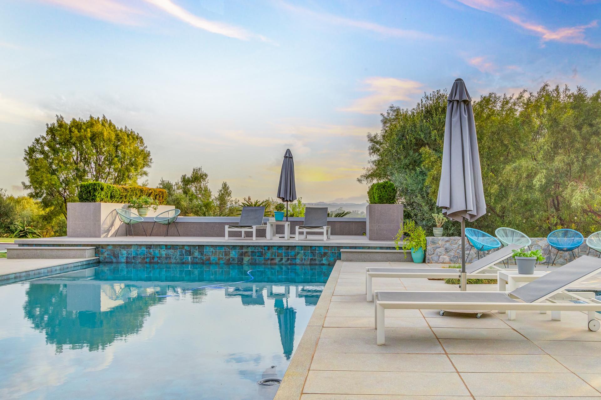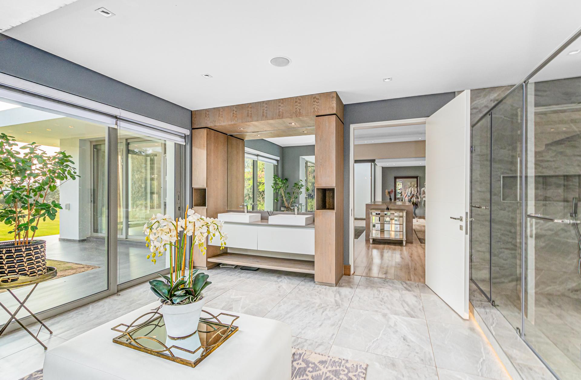 Featuring a main residence of 5 bedrooms all with full en-suite bathrooms, a playroom/office space, two bedroom upstairs cottage with tv lounge and full bathroom plus an additional ground floor studio cottage and double staff quarters with en-suite bathrooms, the home offers plenty of space for multi-generational living.