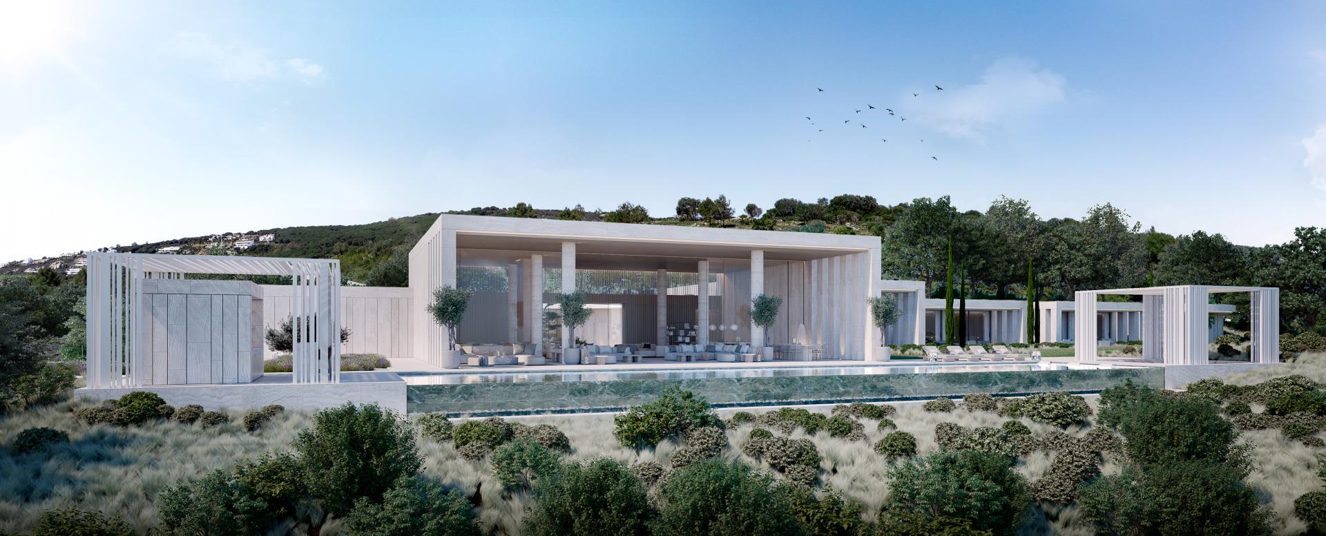 Exceptional sustainable villa in Sotogrande featuring 9 suites, panoramic sea views, infinity pool, spa, gym, cinema, and wine cellar. Set on a 10,000 m² plot with cutting-edge design, natural materials, and seamless integration with the Mediterranean landscape.