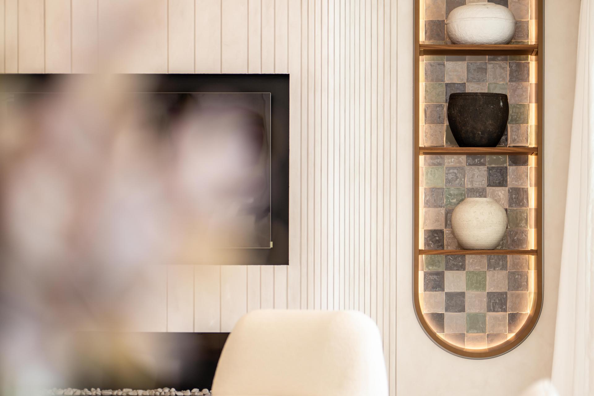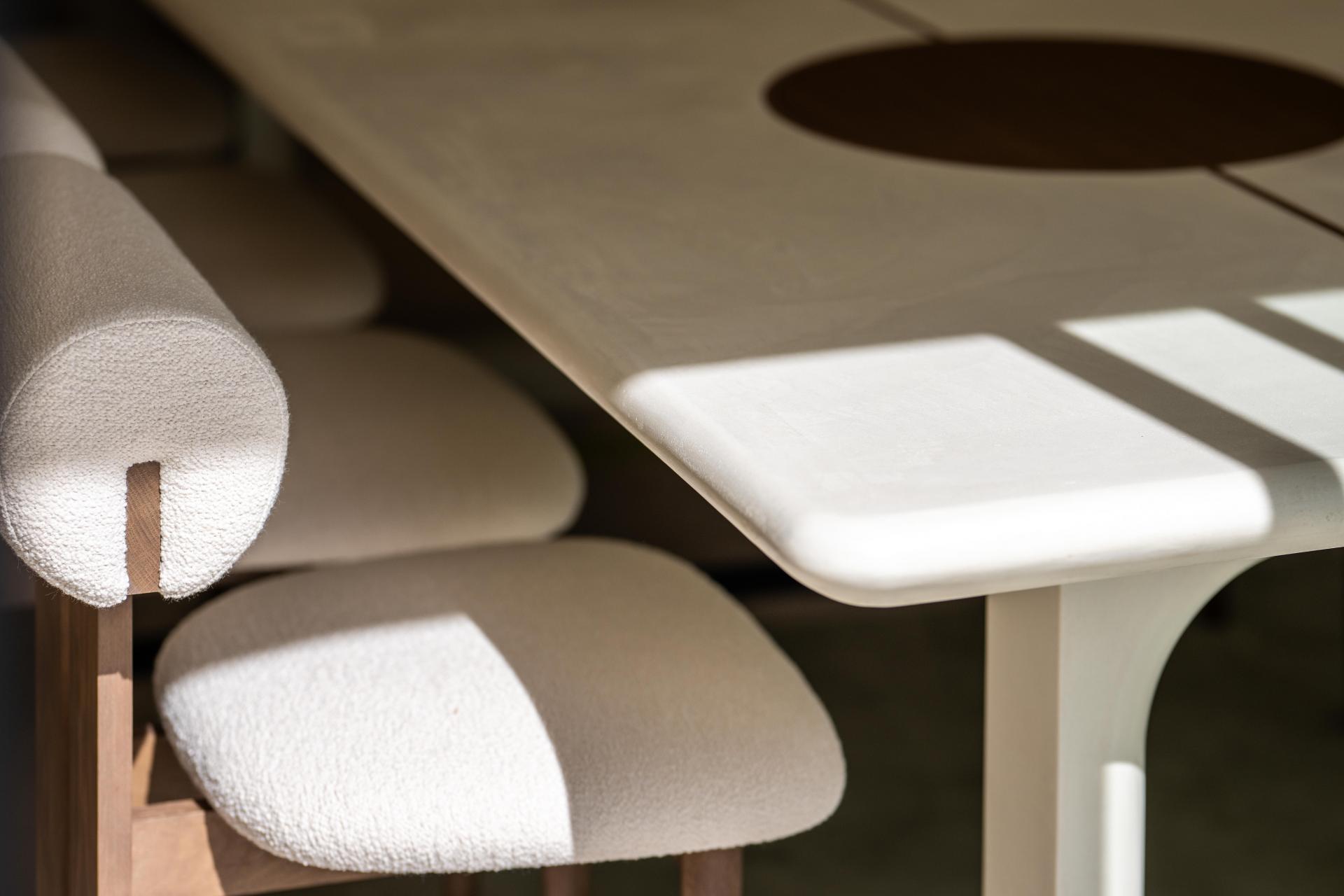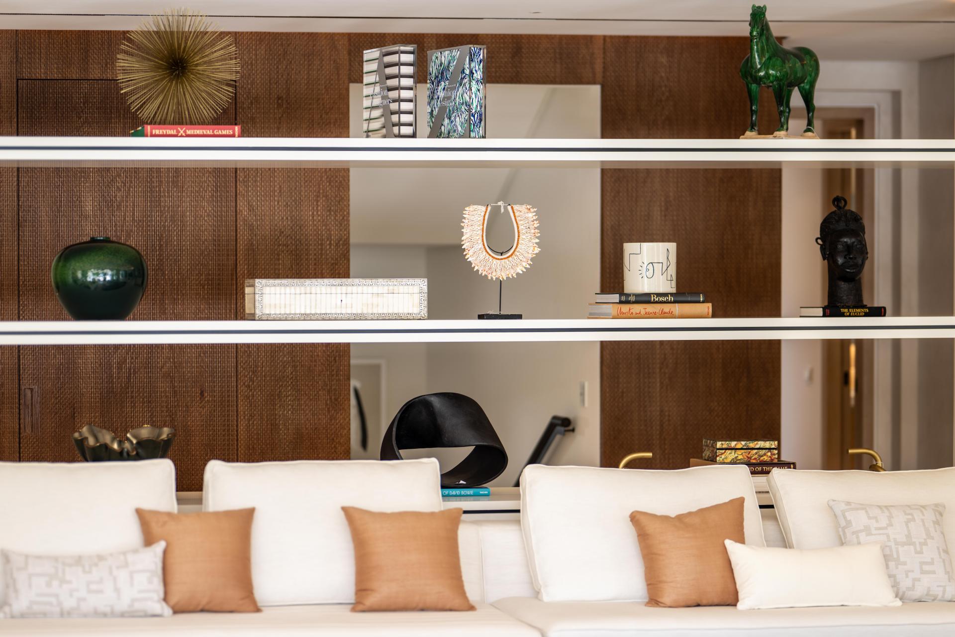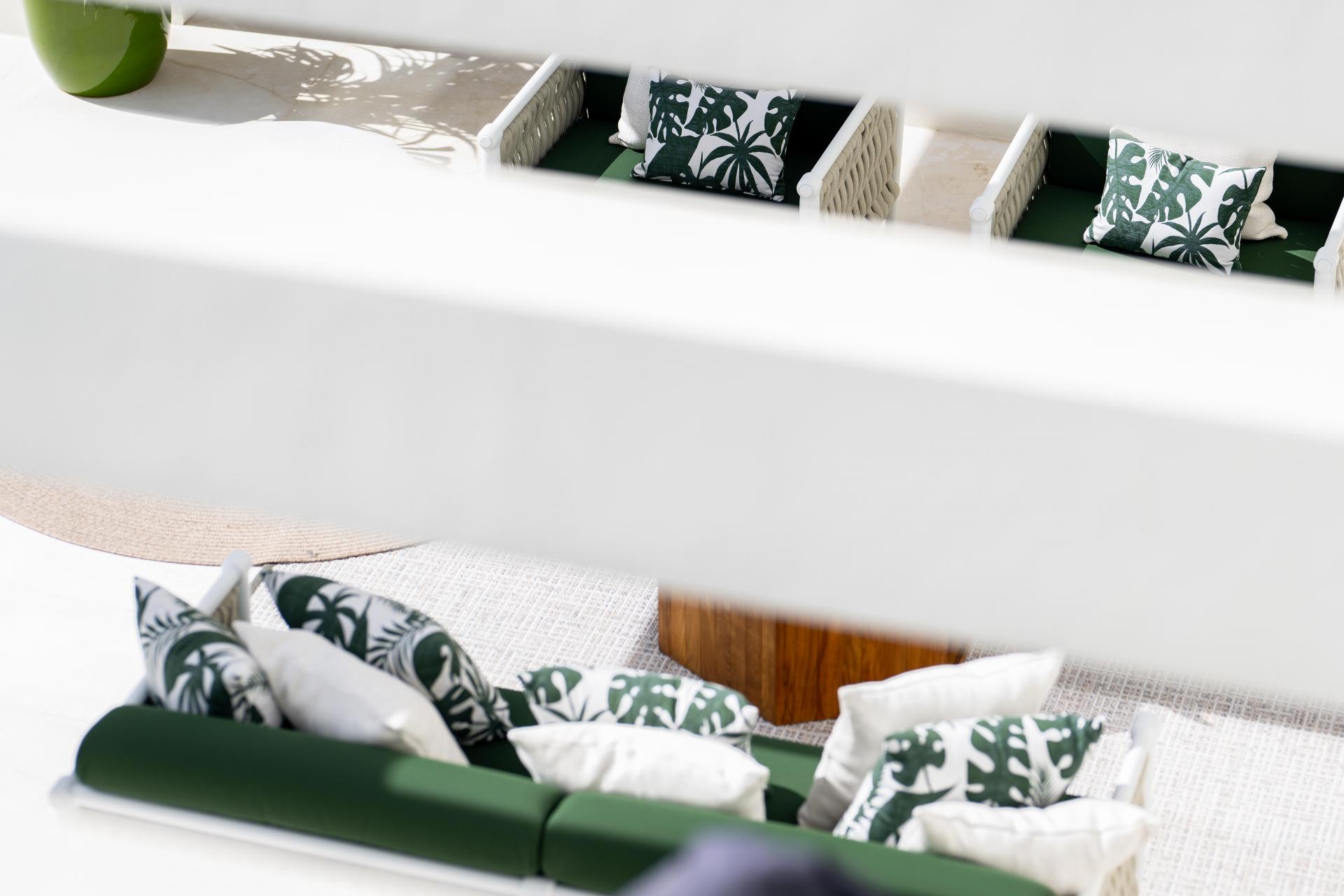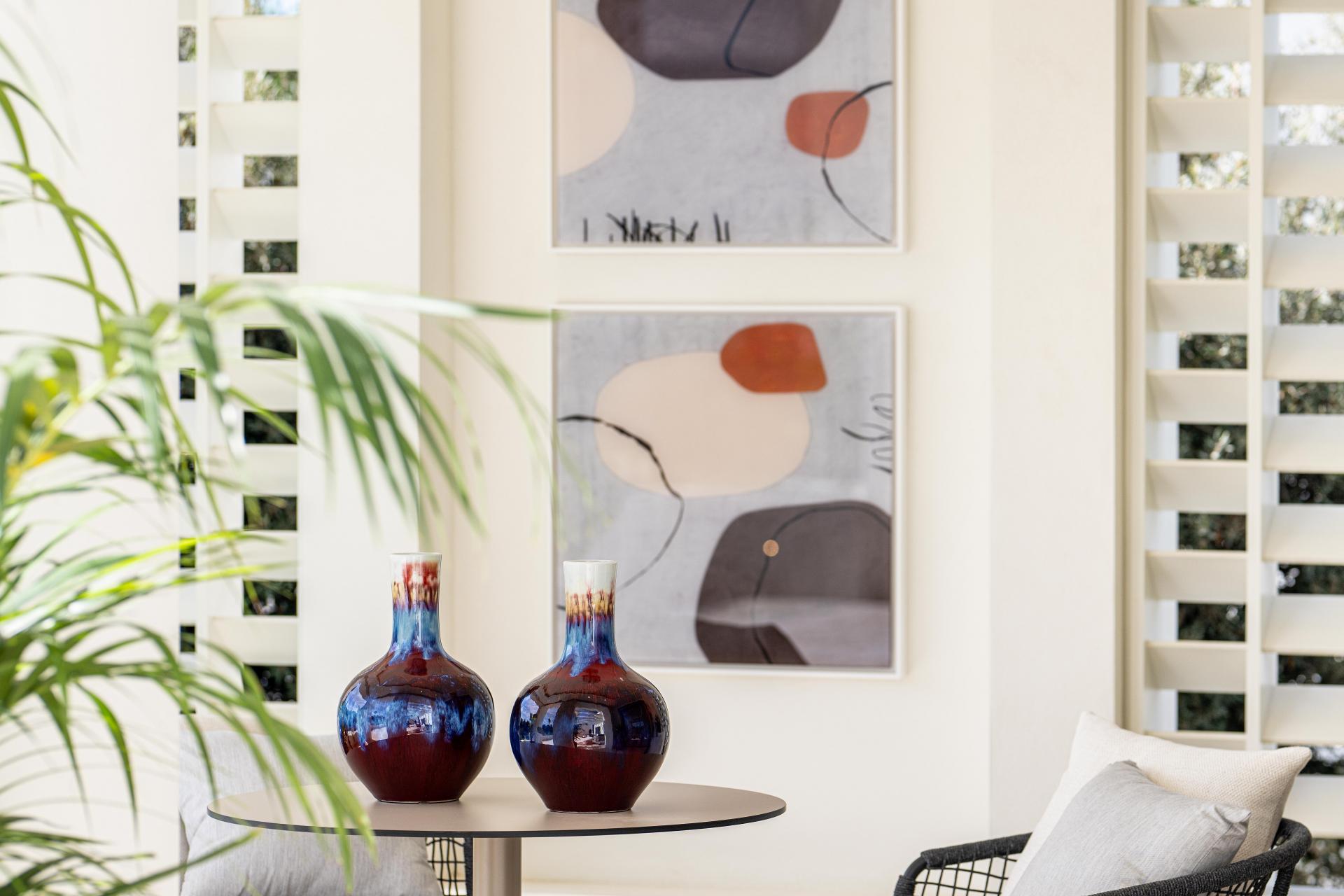 Inside, the atmosphere is equally inviting. Enter the spacious living area, where the neutral colour palette creates a calming ambience. Refined furniture selections by Pedro Peña combine aesthetics with comfort, while soft LED lighting integrated into the ceiling adds a modern touch. Here, every corner is designed to make you feel at peace, allowing you to relax after a long day or entertain guests in style. The open layout ensures a seamless flow from one room to the next, effortlessly connecting indoor and outdoor spaces.
