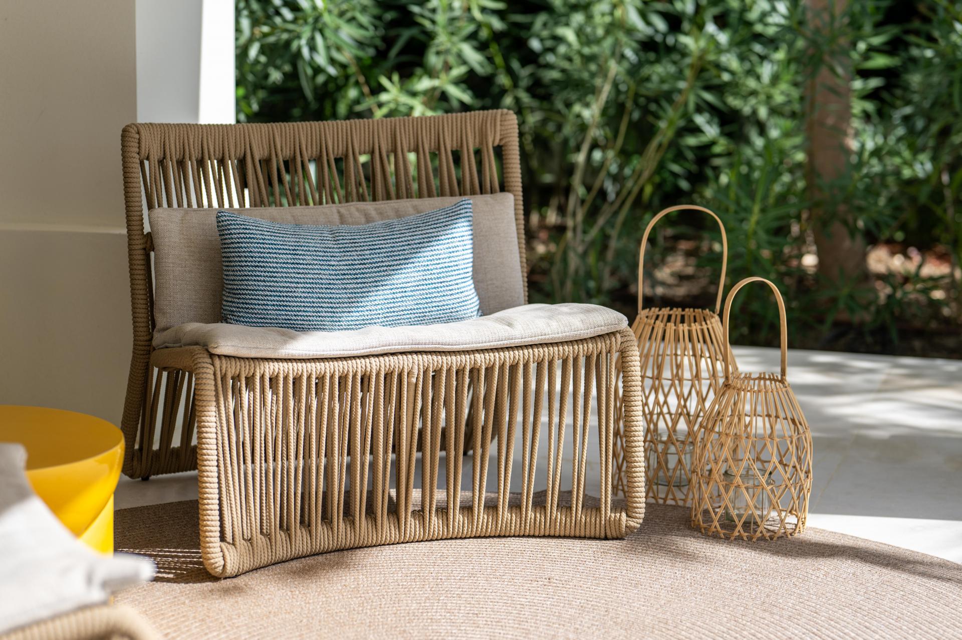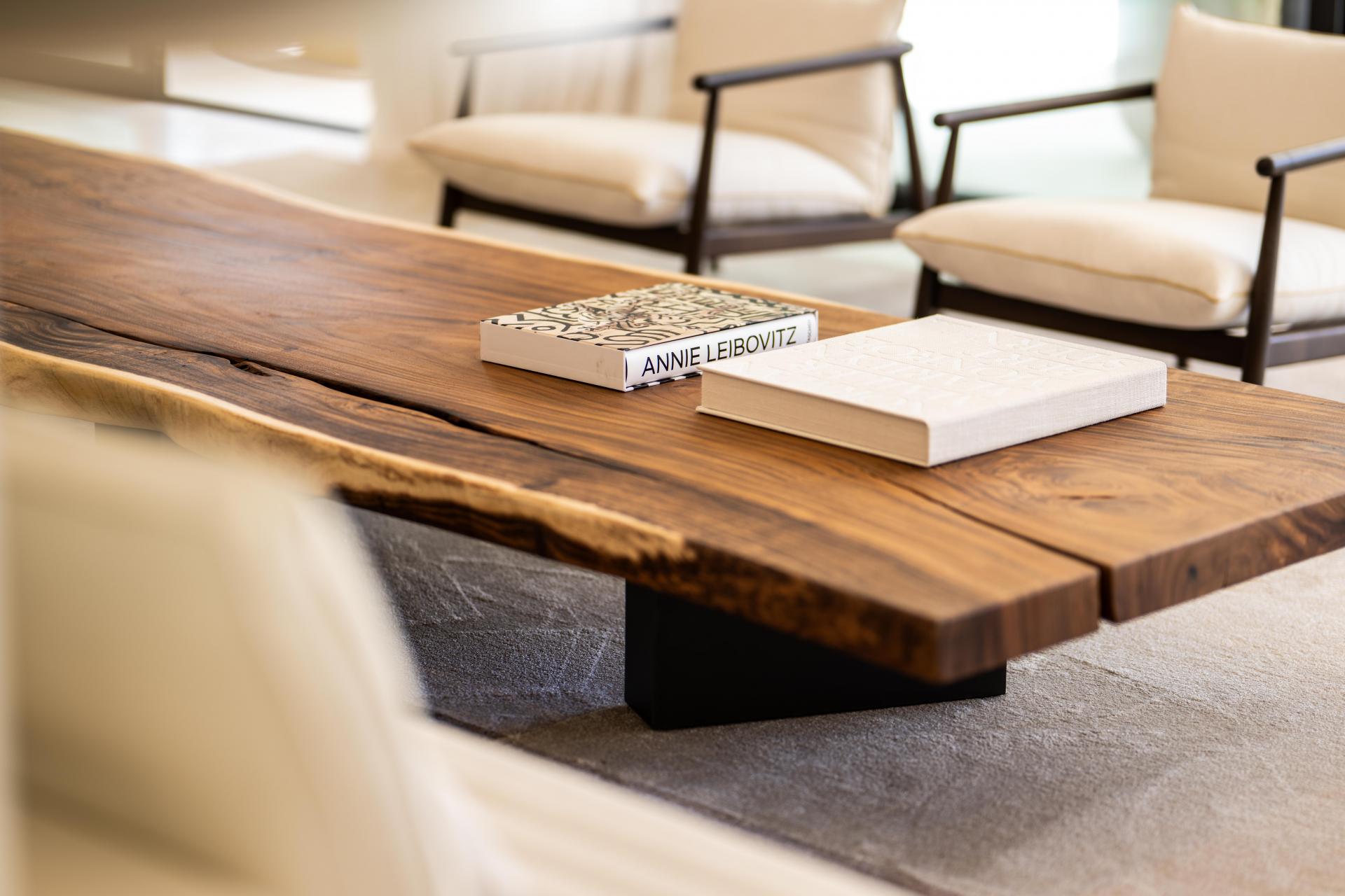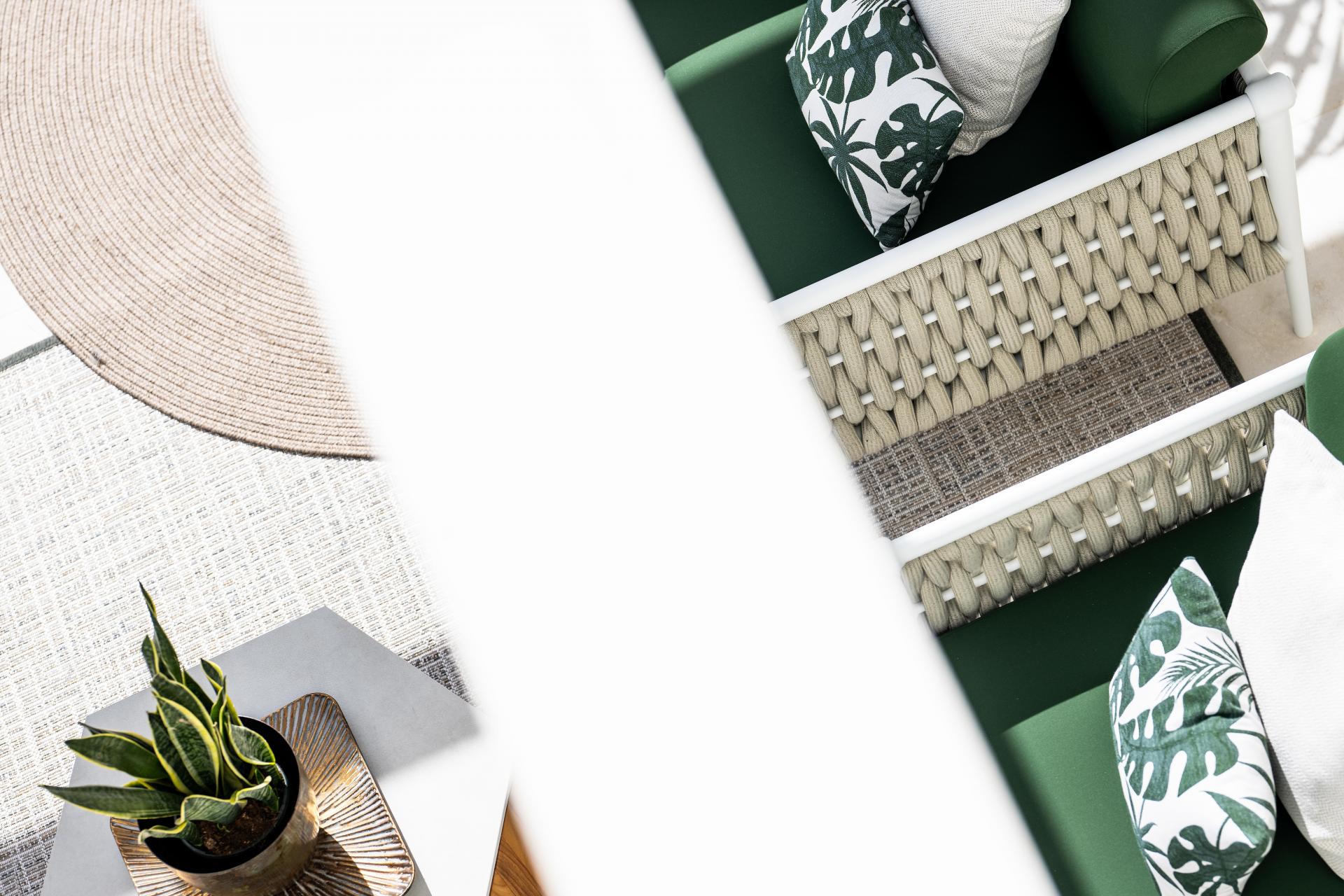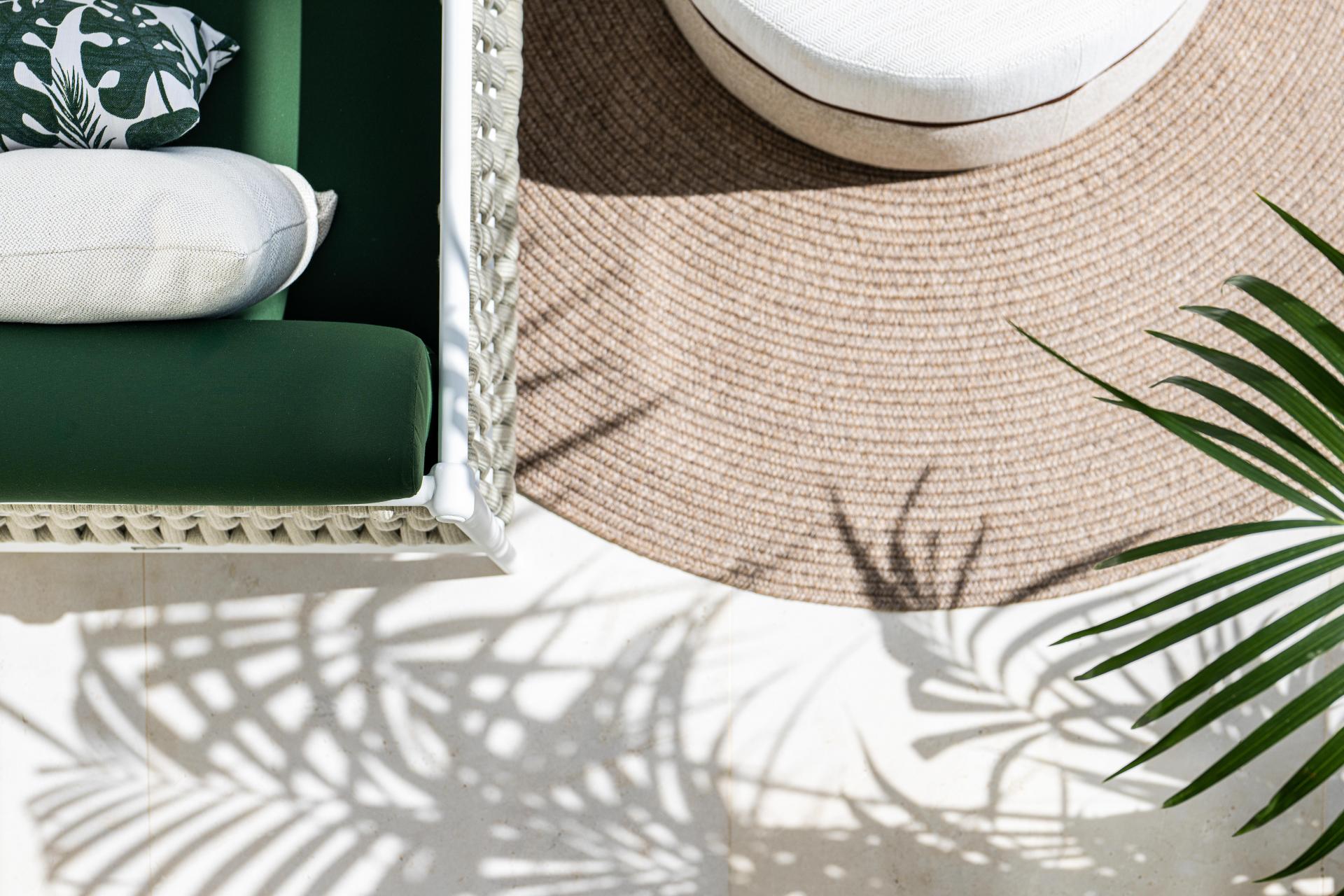 Inside, the atmosphere is equally inviting. Enter the spacious living area, where the neutral colour palette creates a calming ambience. Refined furniture selections by Pedro Peña combine aesthetics with comfort, while soft LED lighting integrated into the ceiling adds a modern touch. Here, every corner is designed to make you feel at peace, allowing you to relax after a long day or entertain guests in style. The open layout ensures a seamless flow from one room to the next, effortlessly connecting indoor and outdoor spaces.