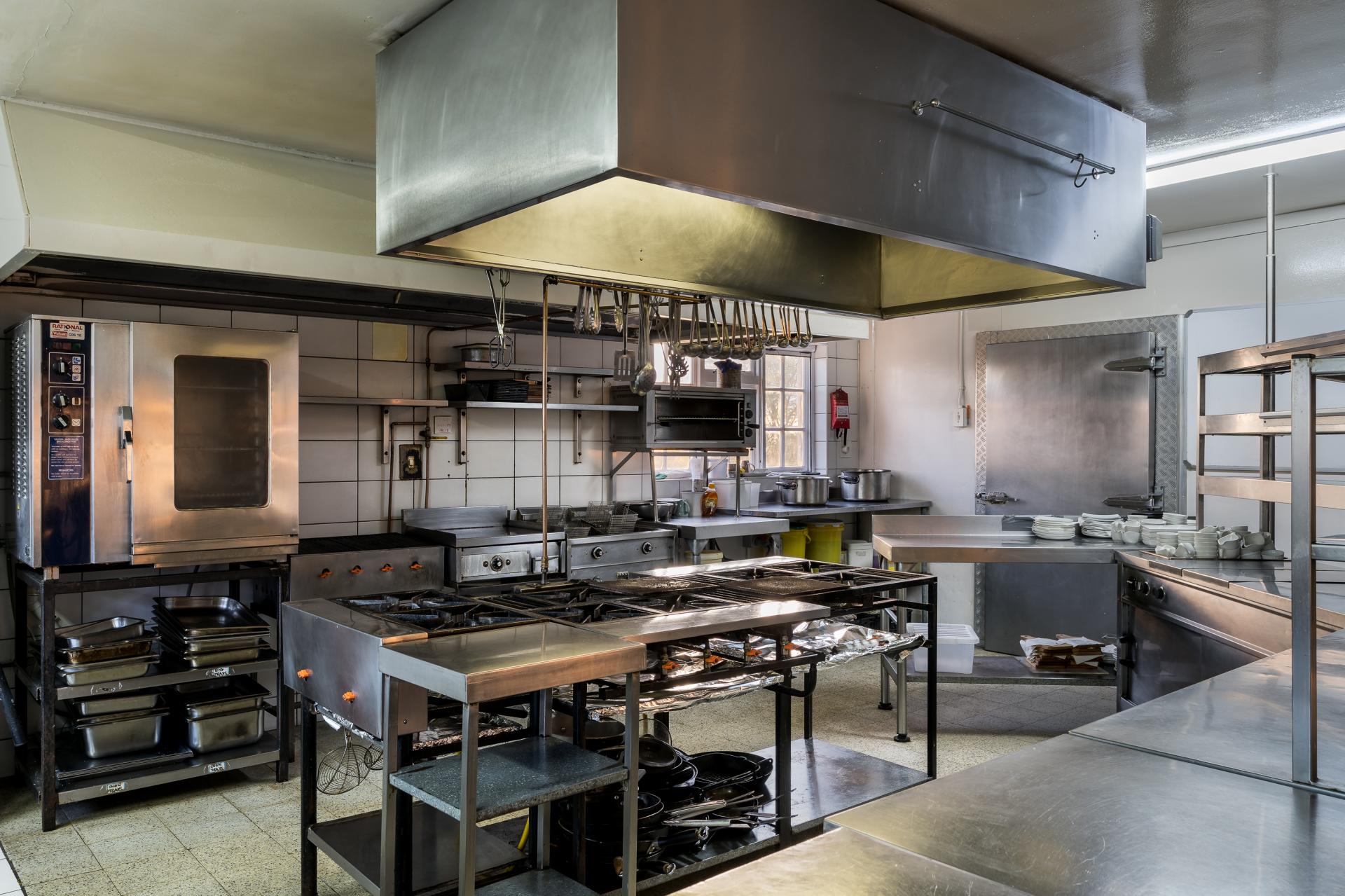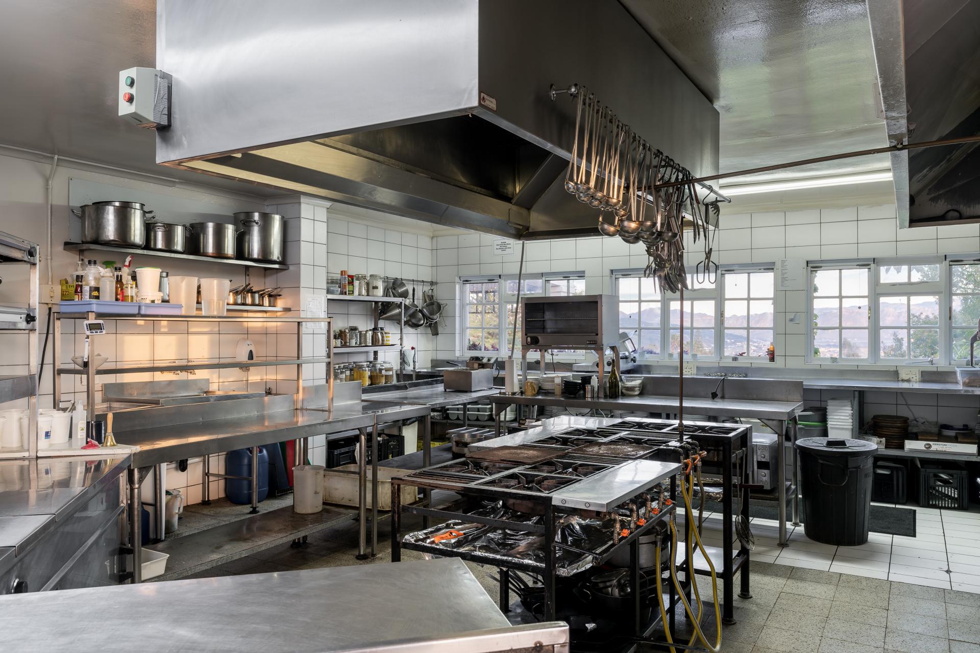 There’s also a sizable fully equipped professional kitchen that also enjoys windows with a view, a walk-in fridge, office area and dessert preparation area. A spiral staircase leads to the ‘basement’ which is equipped with a garage, storage rooms, refuse area, bathroom, and laundry.